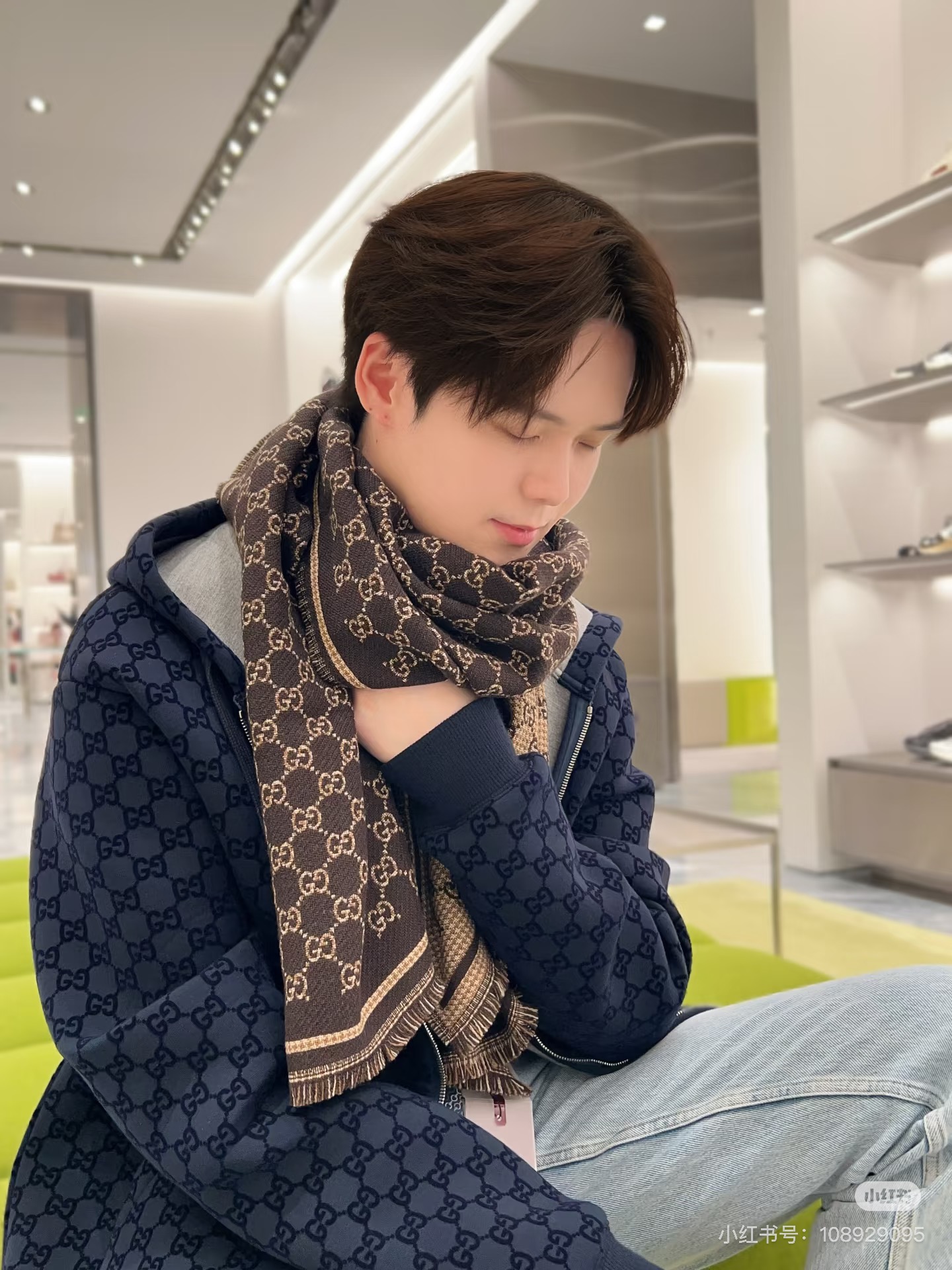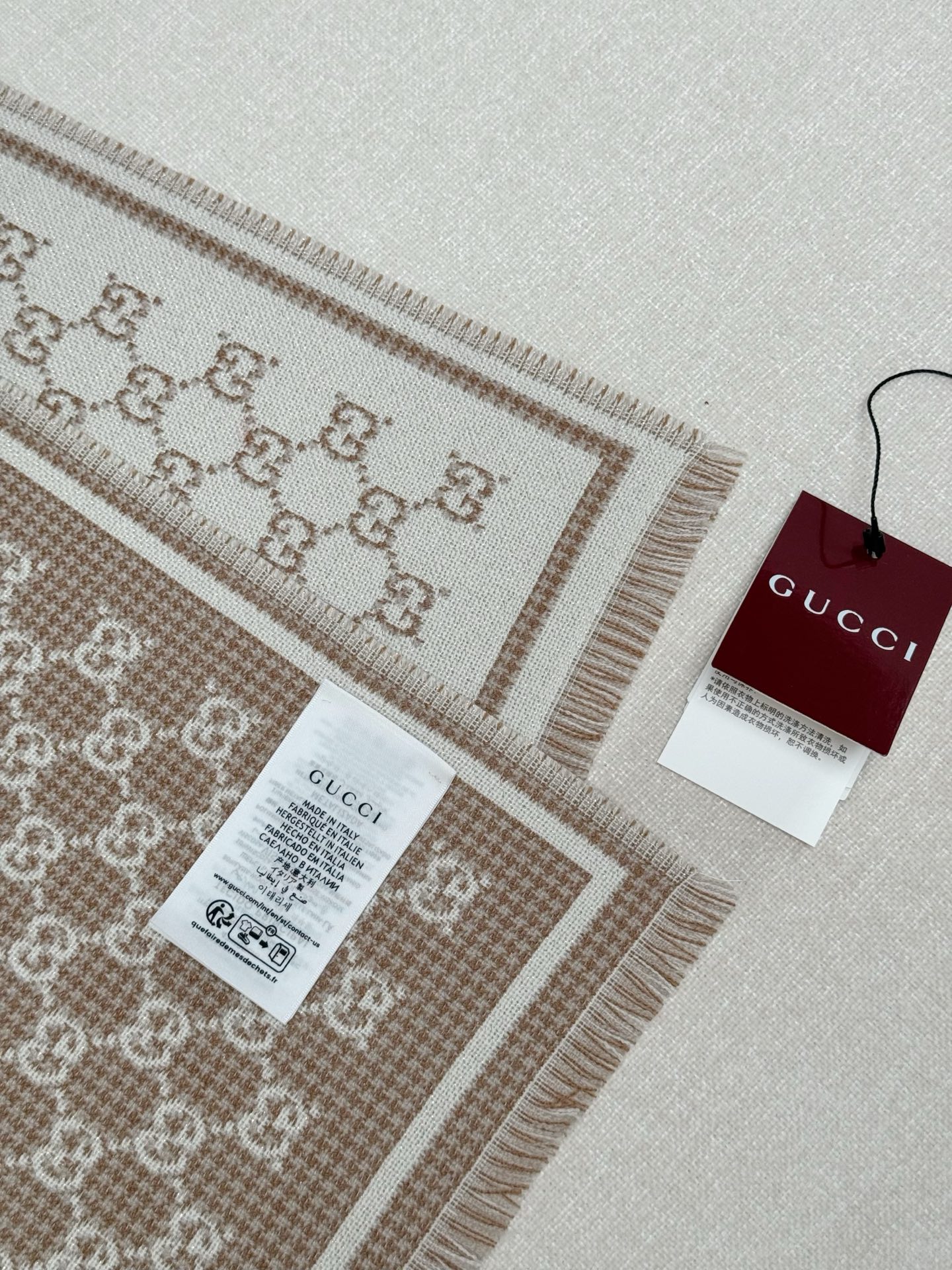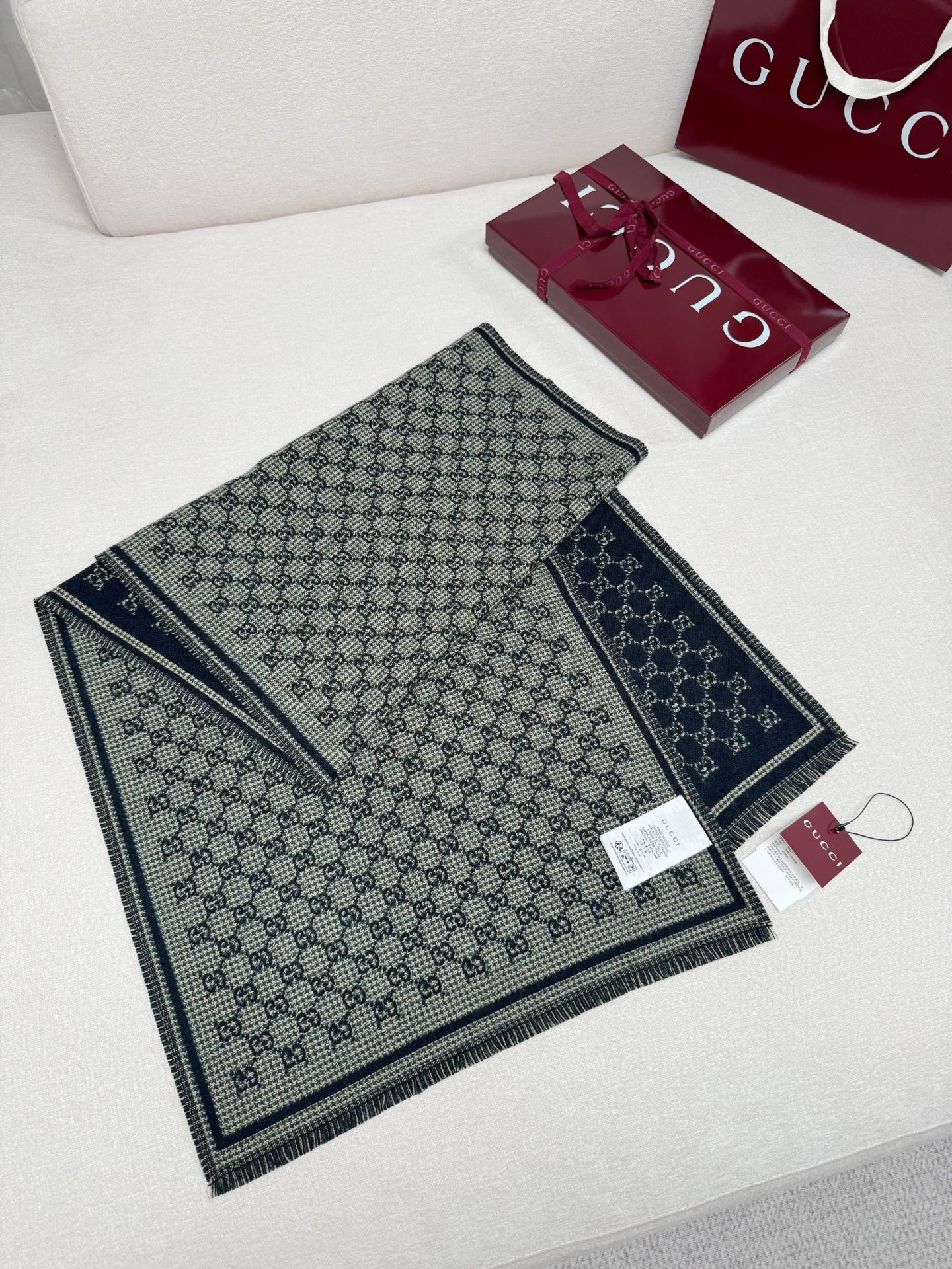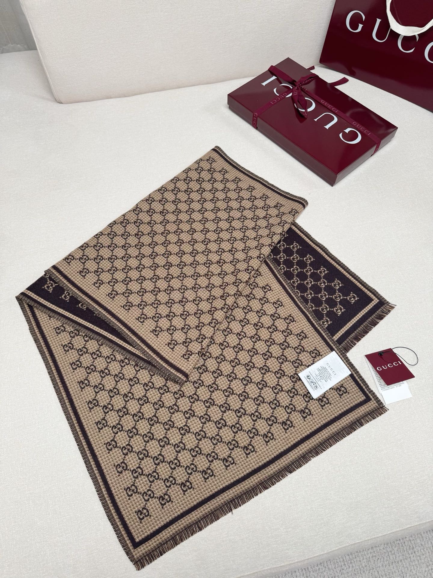 𝐆𝐔𝐂𝐂𝐈 新《GG羊毛围巾》 GG羊毛围巾2025早秋桑蚕丝软配饰系列以精致滚边、品牌标识贴饰和精美刺绣为品牌元素注入新鲜活力。这款围巾以GG羊毛面料匠心打造,巧妙缀饰流苏滚边。 商品细节 ·GG羊毛 ·流苏滚边 ·47厘米(宽)x180厘米(长)