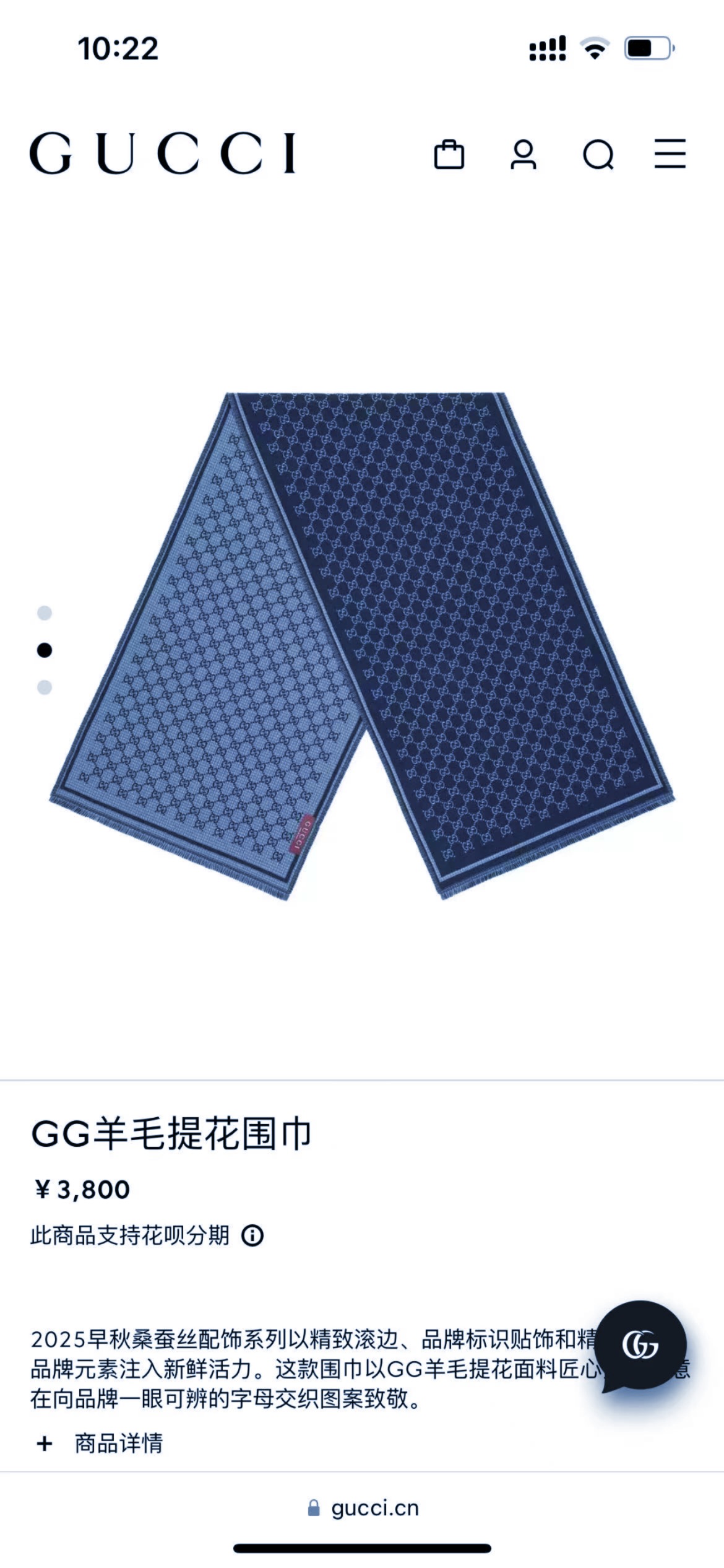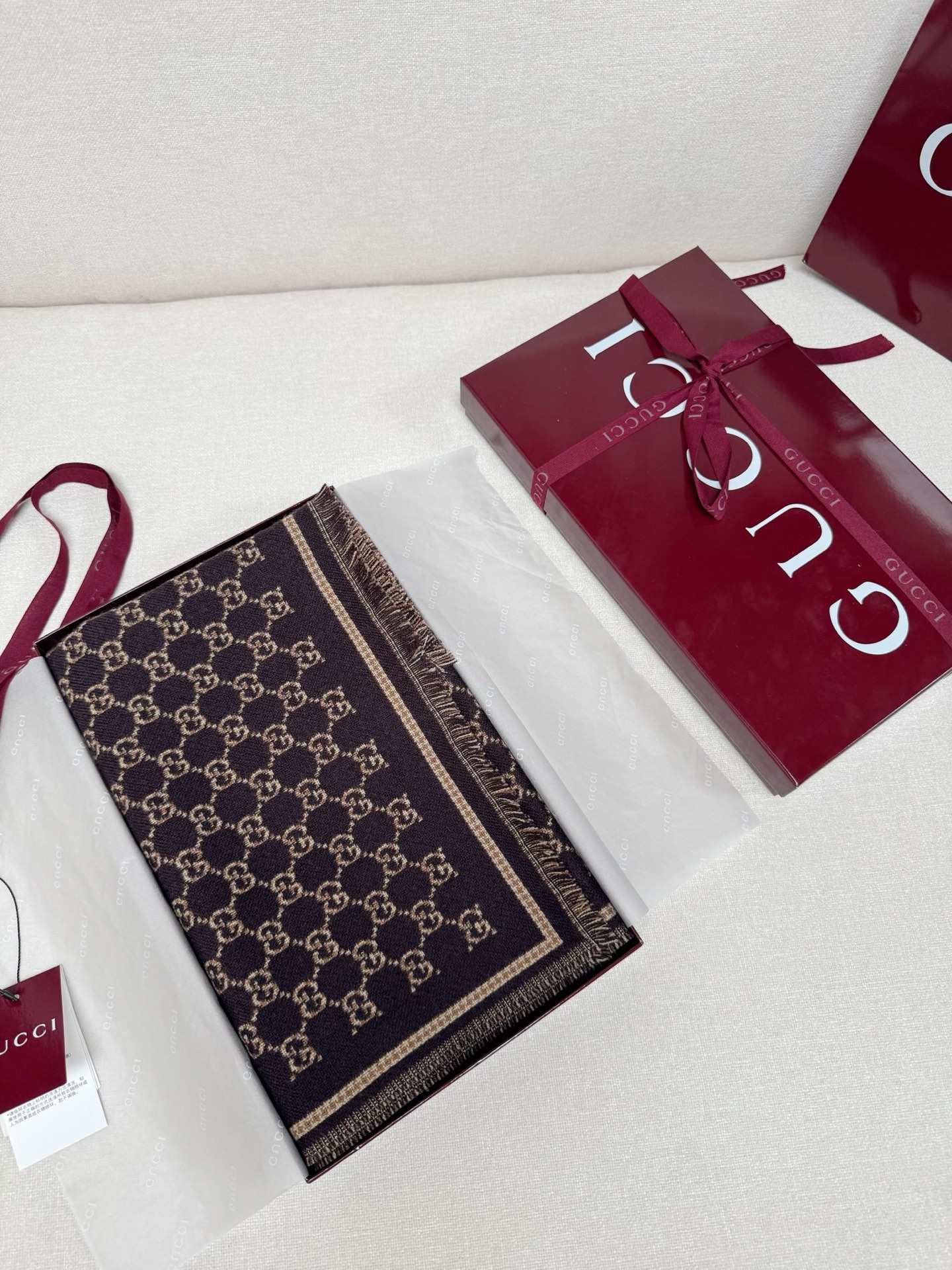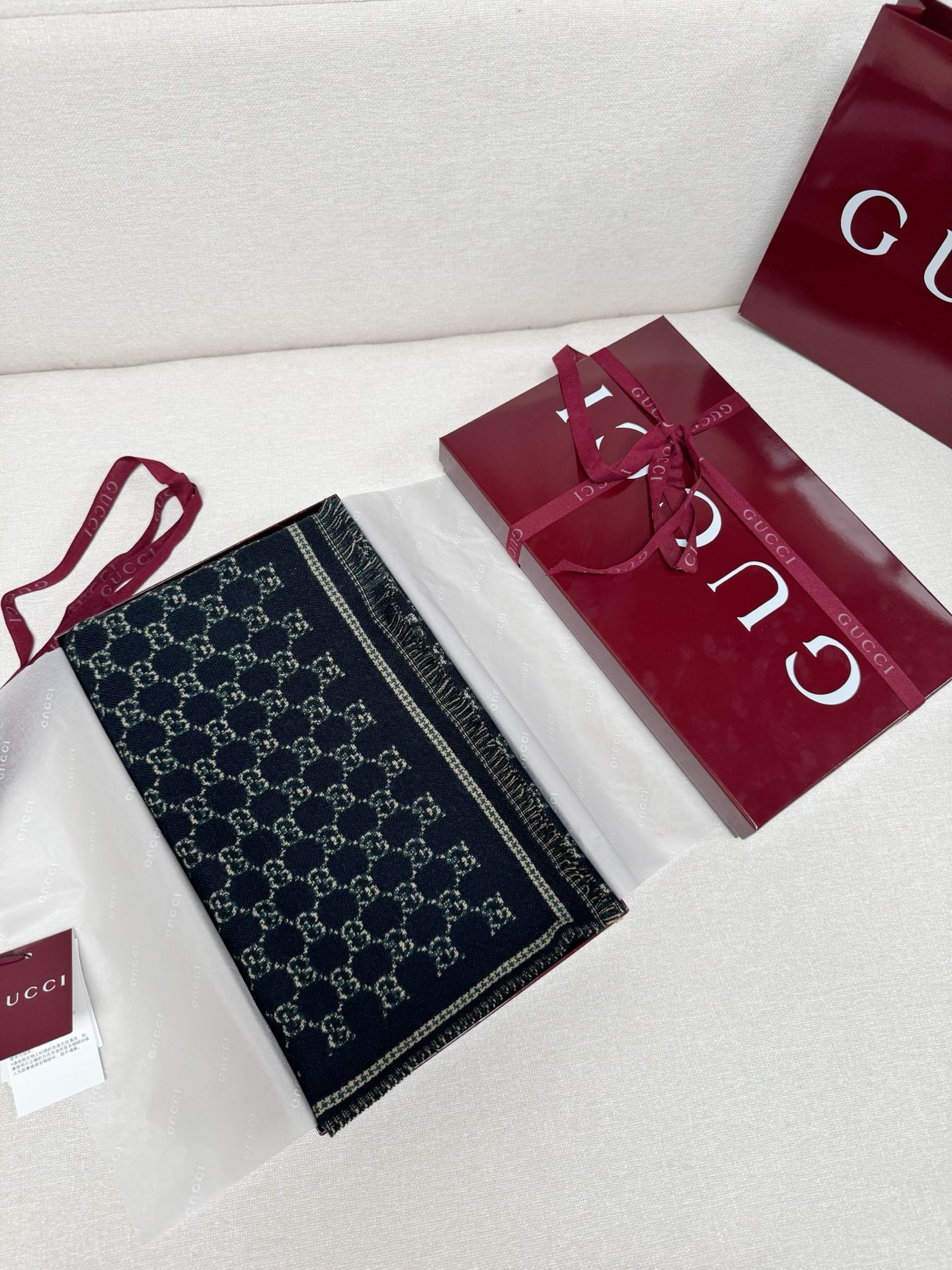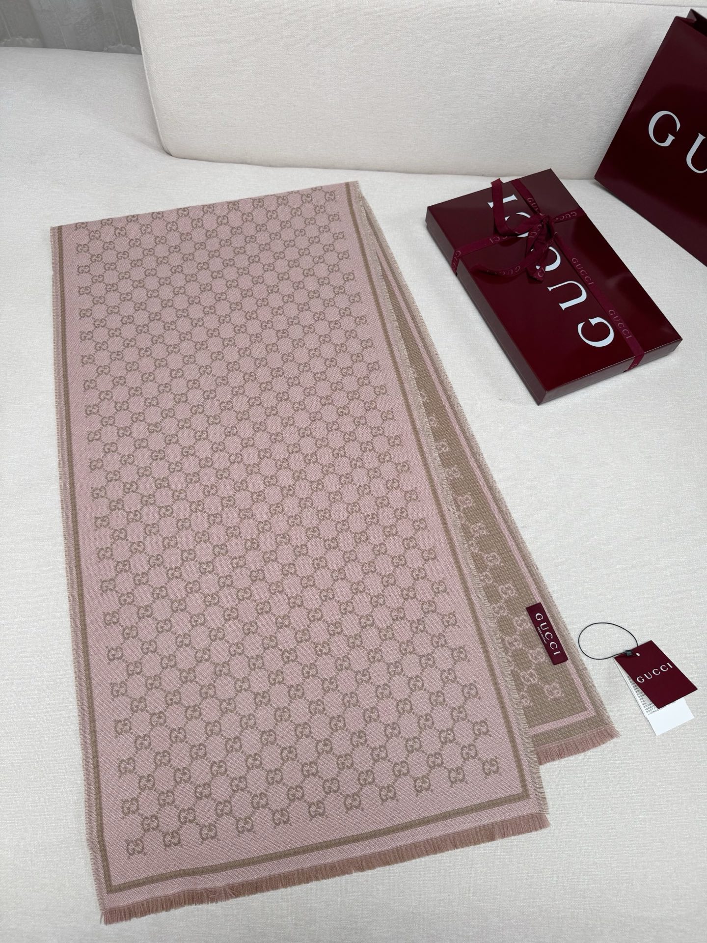 𝐆𝐔𝐂𝐂𝐈 新《GG羊毛围巾》 GG羊毛围巾2025早秋桑蚕丝软配饰系列以精致滚边、品牌标识贴饰和精美刺绣为品牌元素注入新鲜活力。这款围巾以GG羊毛面料匠心打造,巧妙缀饰流苏滚边。 商品细节 ·GG羊毛 ·流苏滚边 ·47厘米(宽)x180厘米(长)