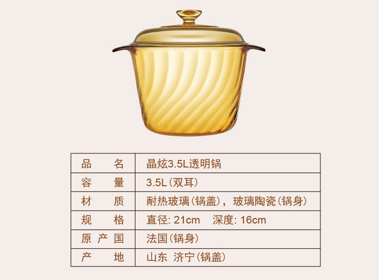 康宁(VISIONS) 晶炫玻璃锅汤锅炖锅煮锅 1.5L晶炫锅VS-15-TR-E/KZ