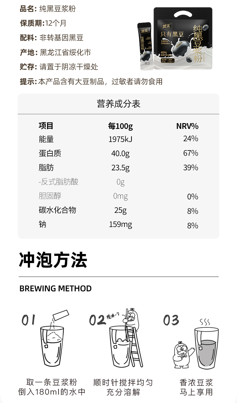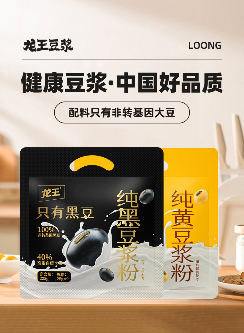龙王纯黑豆浆粉+纯黄豆浆粉组合