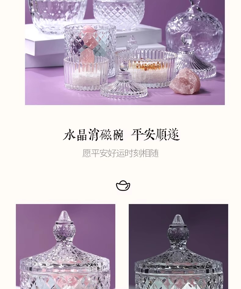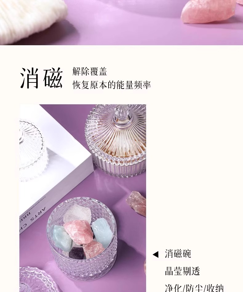 【普陀山】水晶净化消磁碗配天然白水晶 桌面摆件手链收纳盒