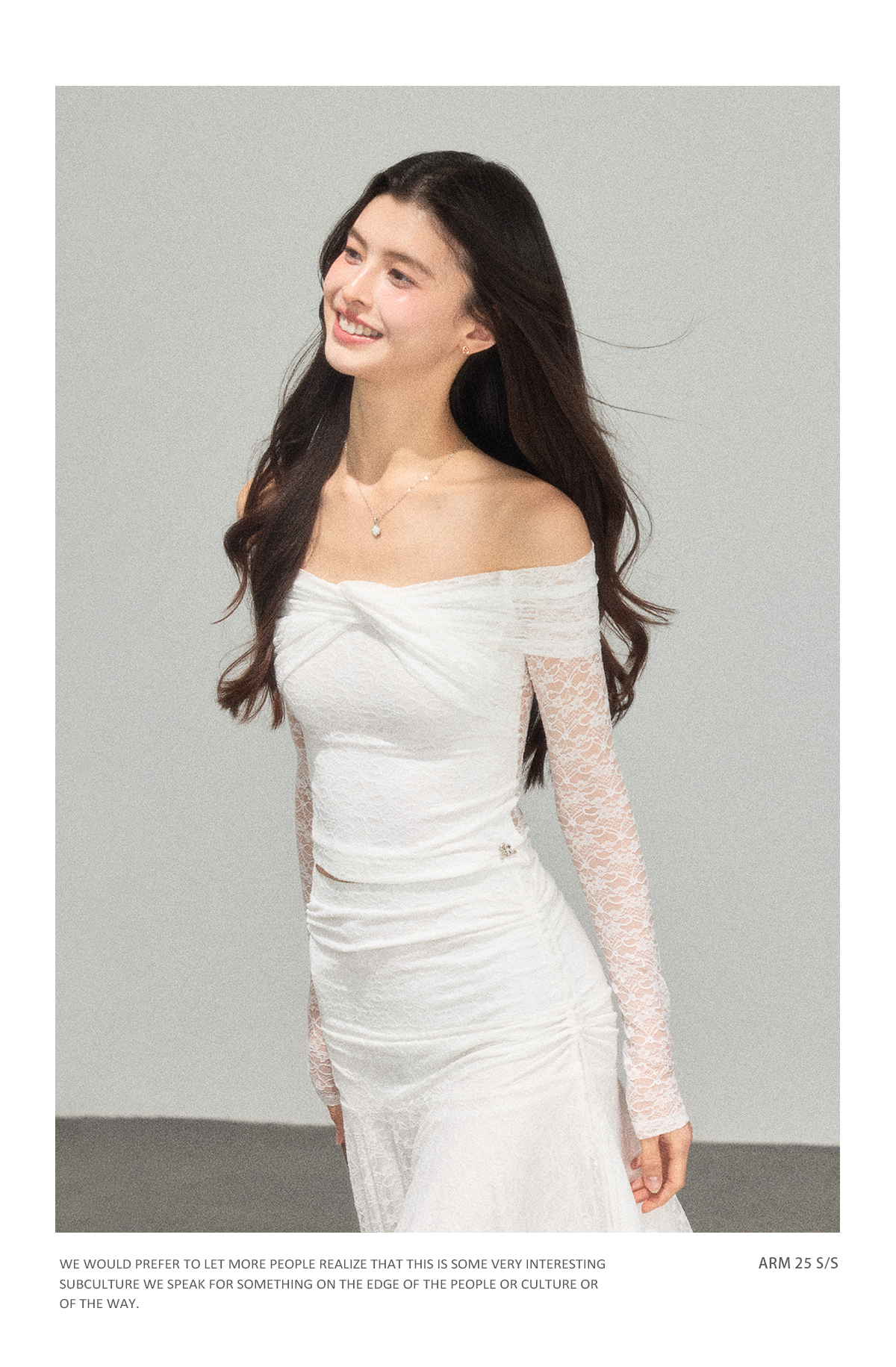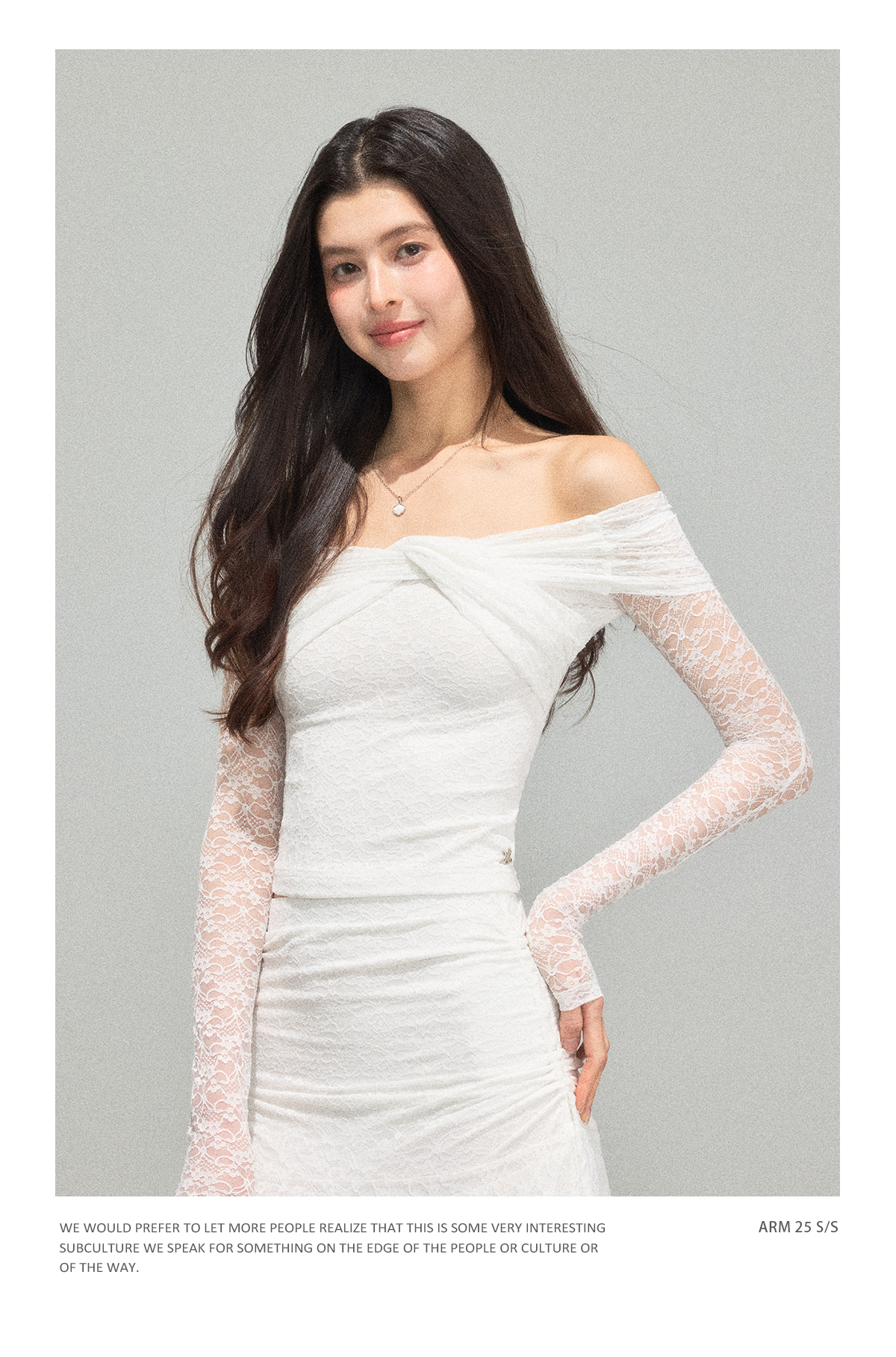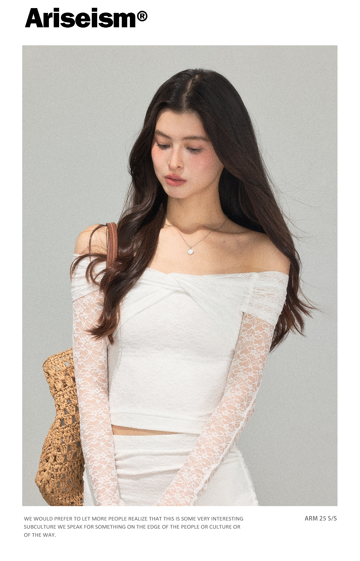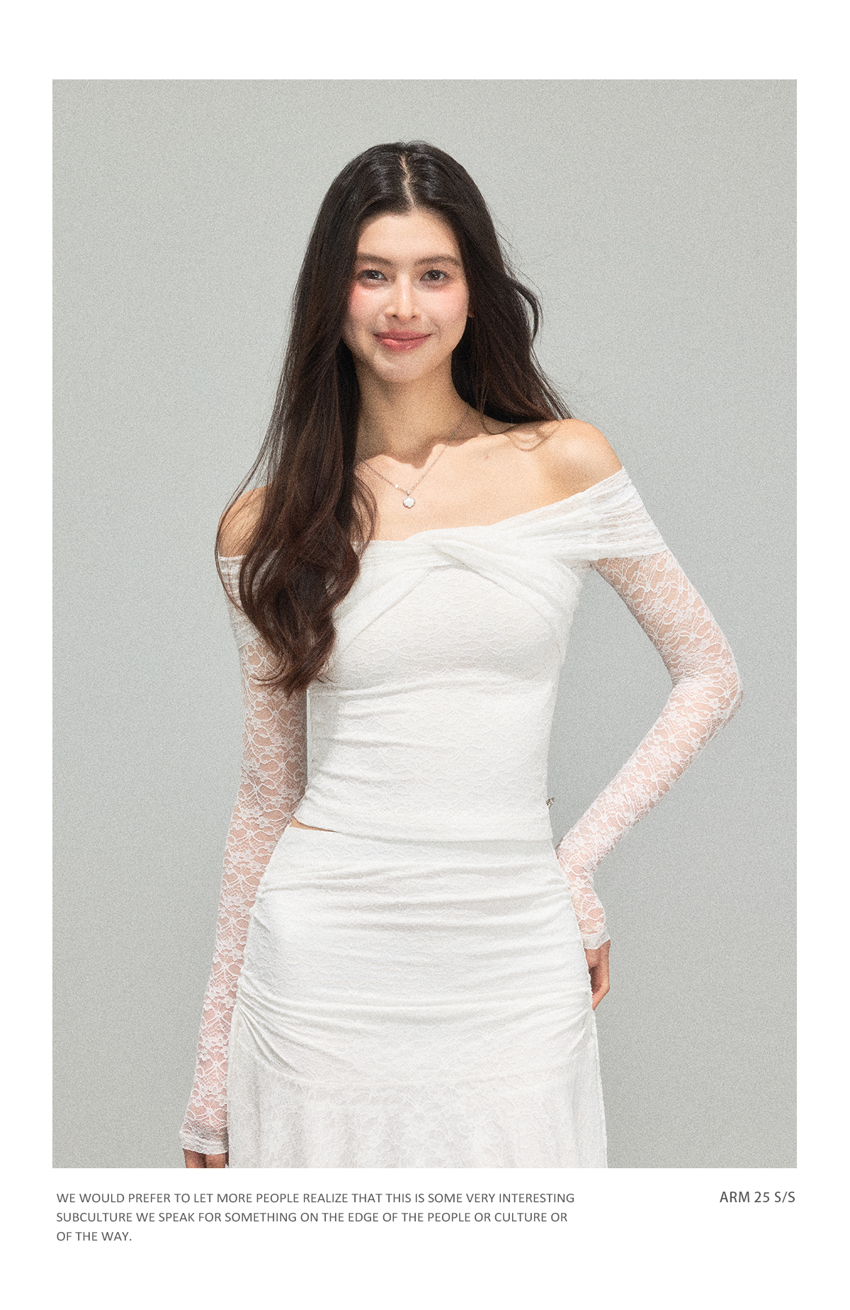 Ariseism 蕾丝长袖露肩上衣半身裙套装女秋新款两件套