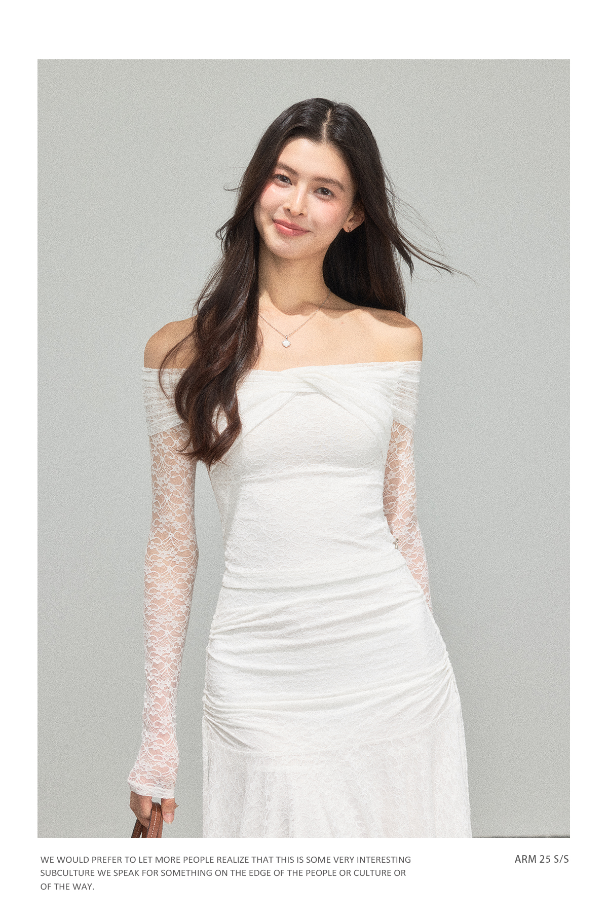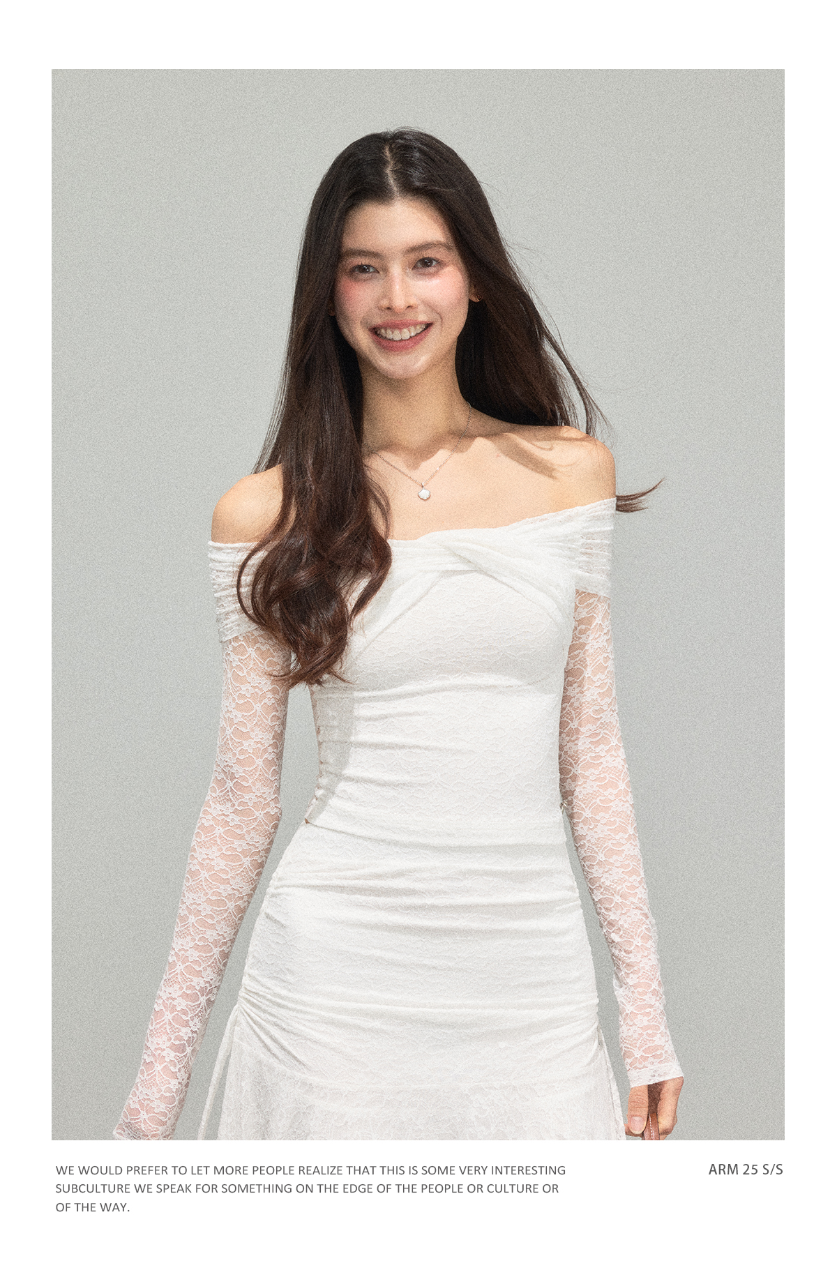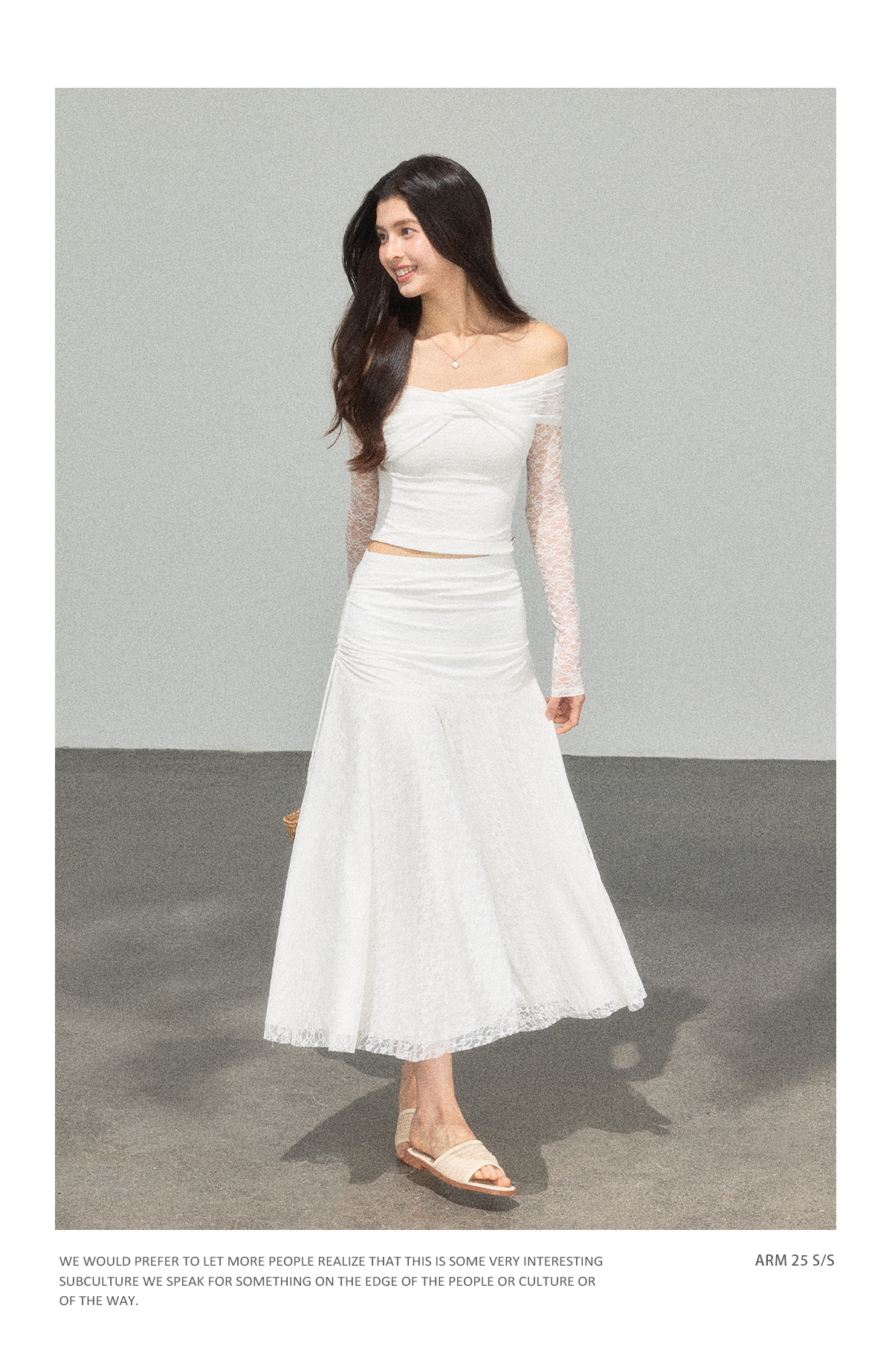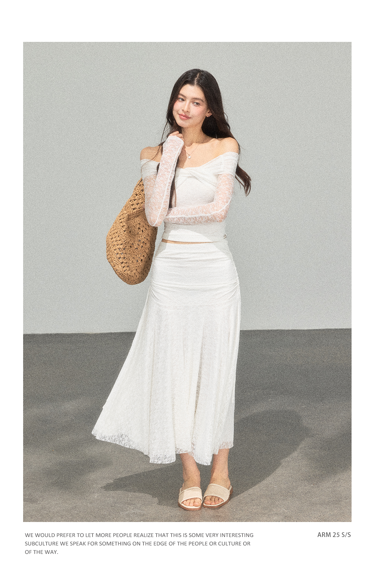 Ariseism 蕾丝长袖露肩上衣半身裙套装女秋新款两件套