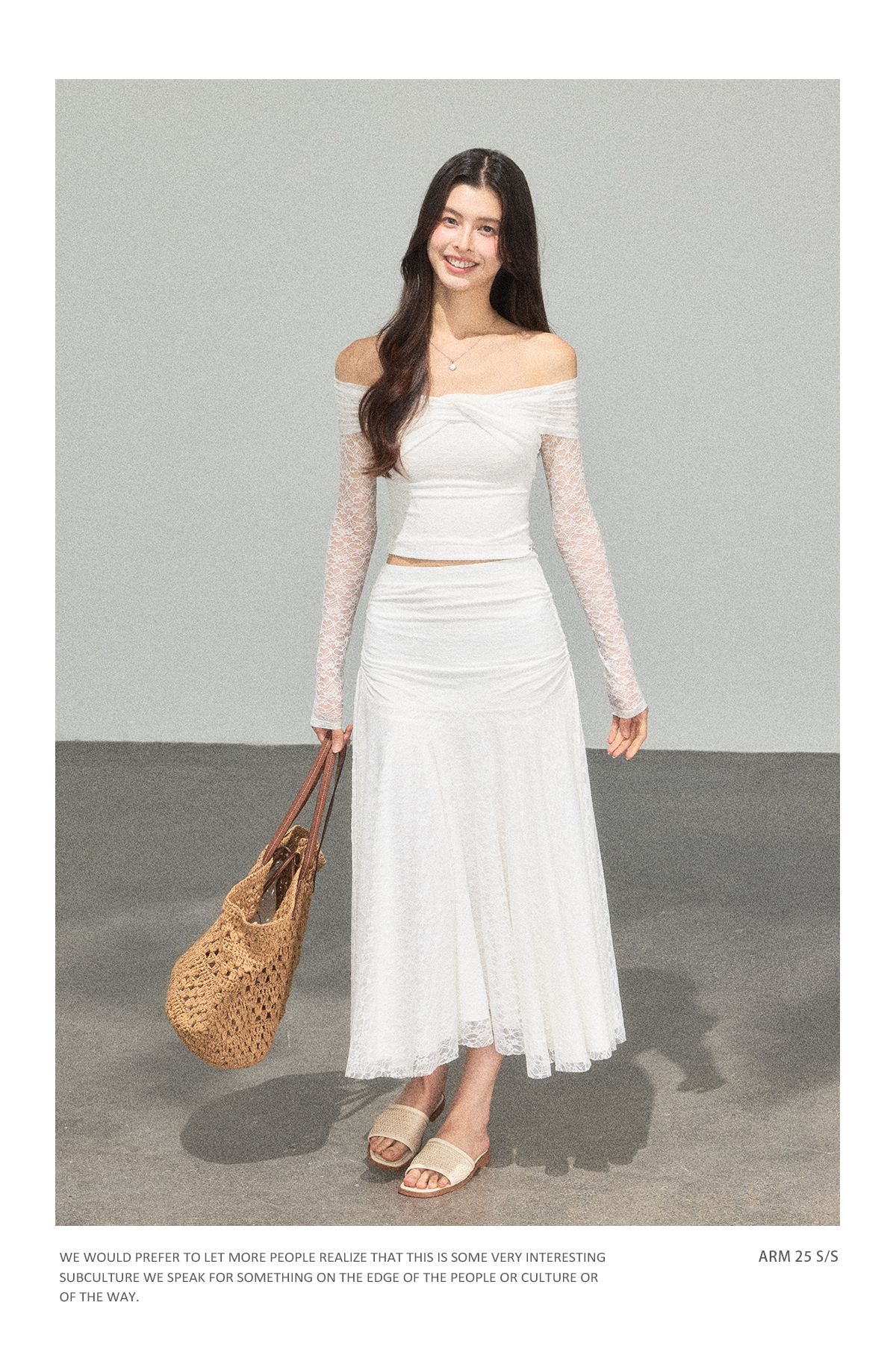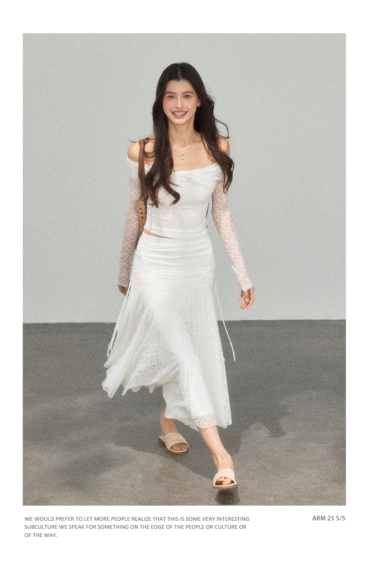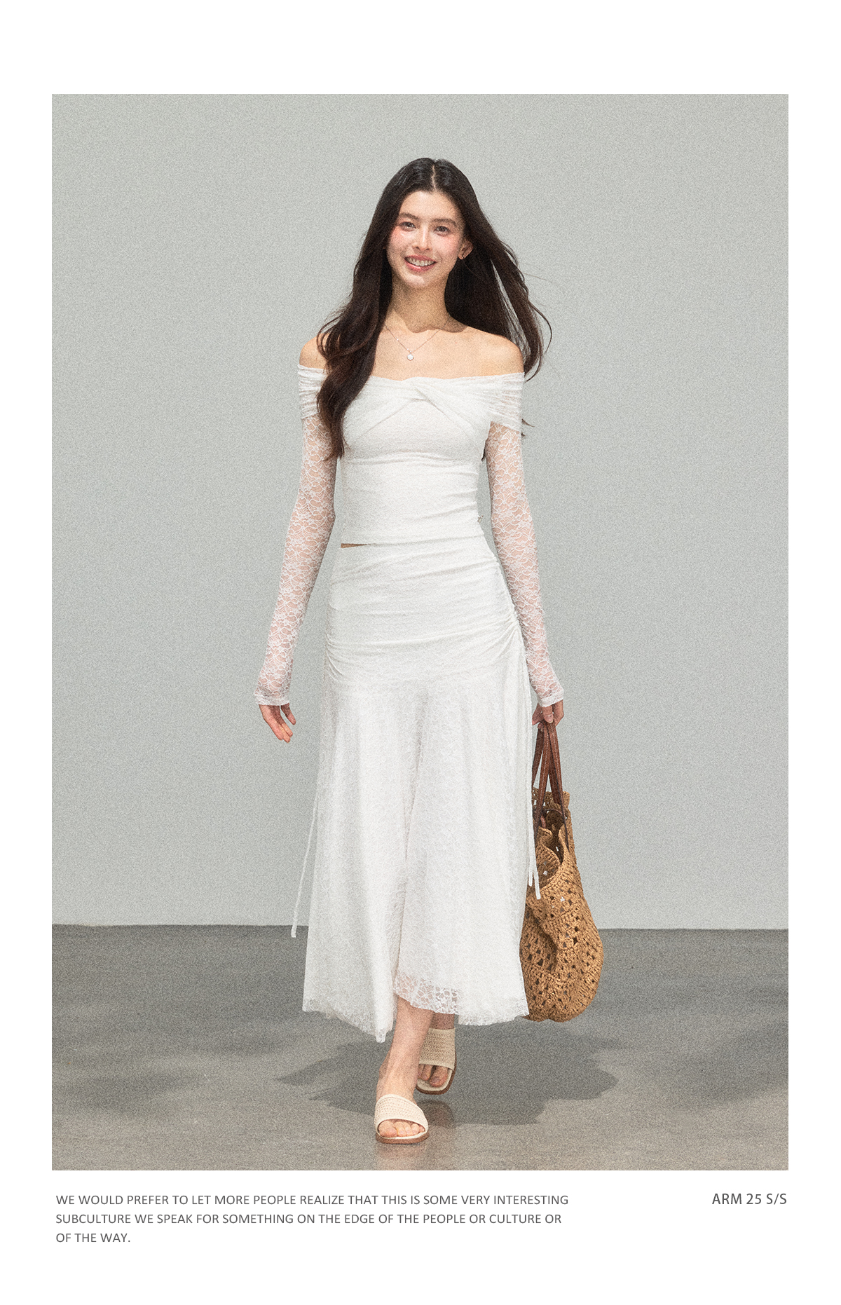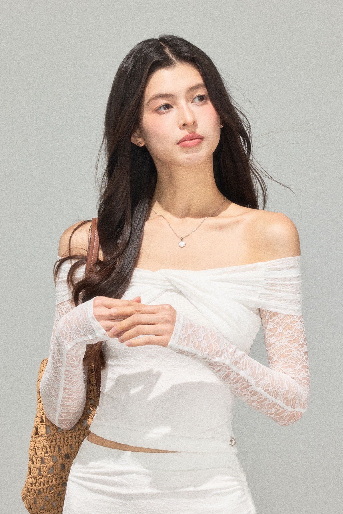 Ariseism 蕾丝长袖露肩上衣半身裙套装女秋新款两件套