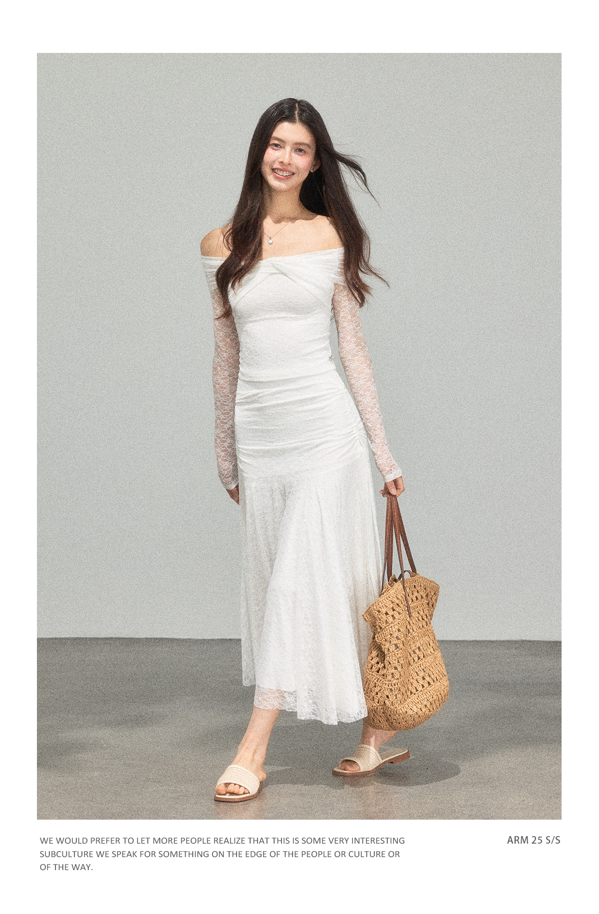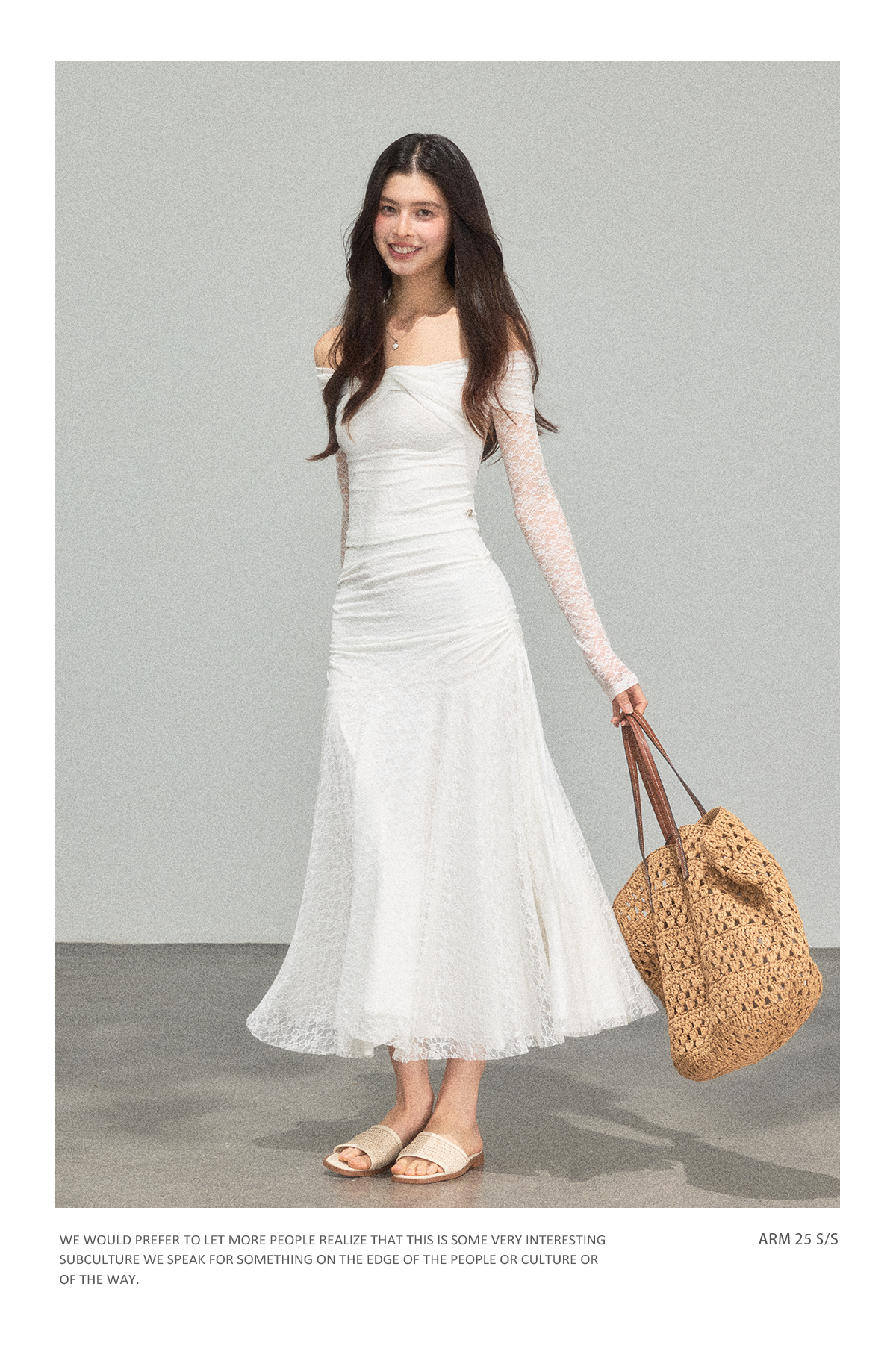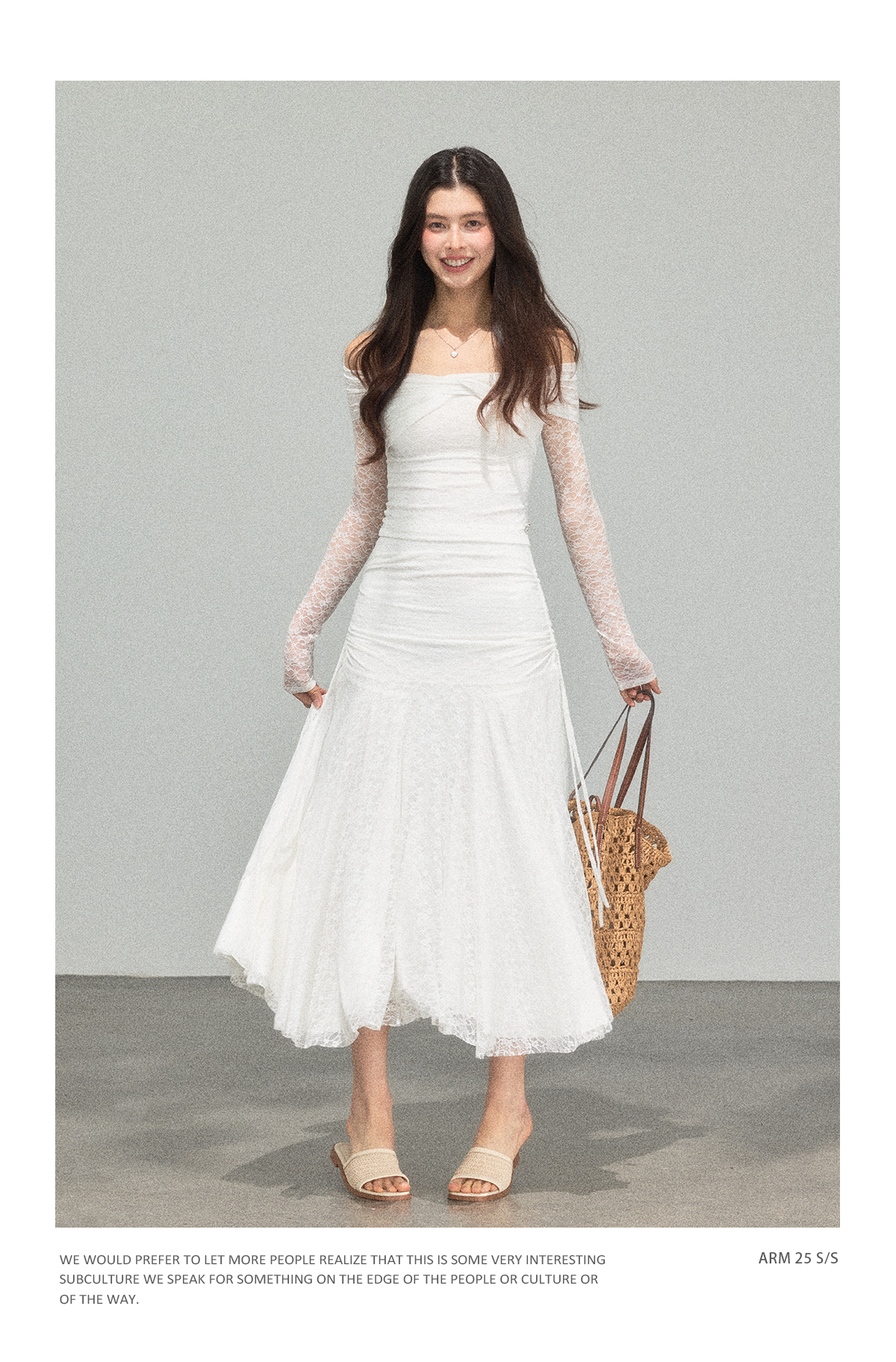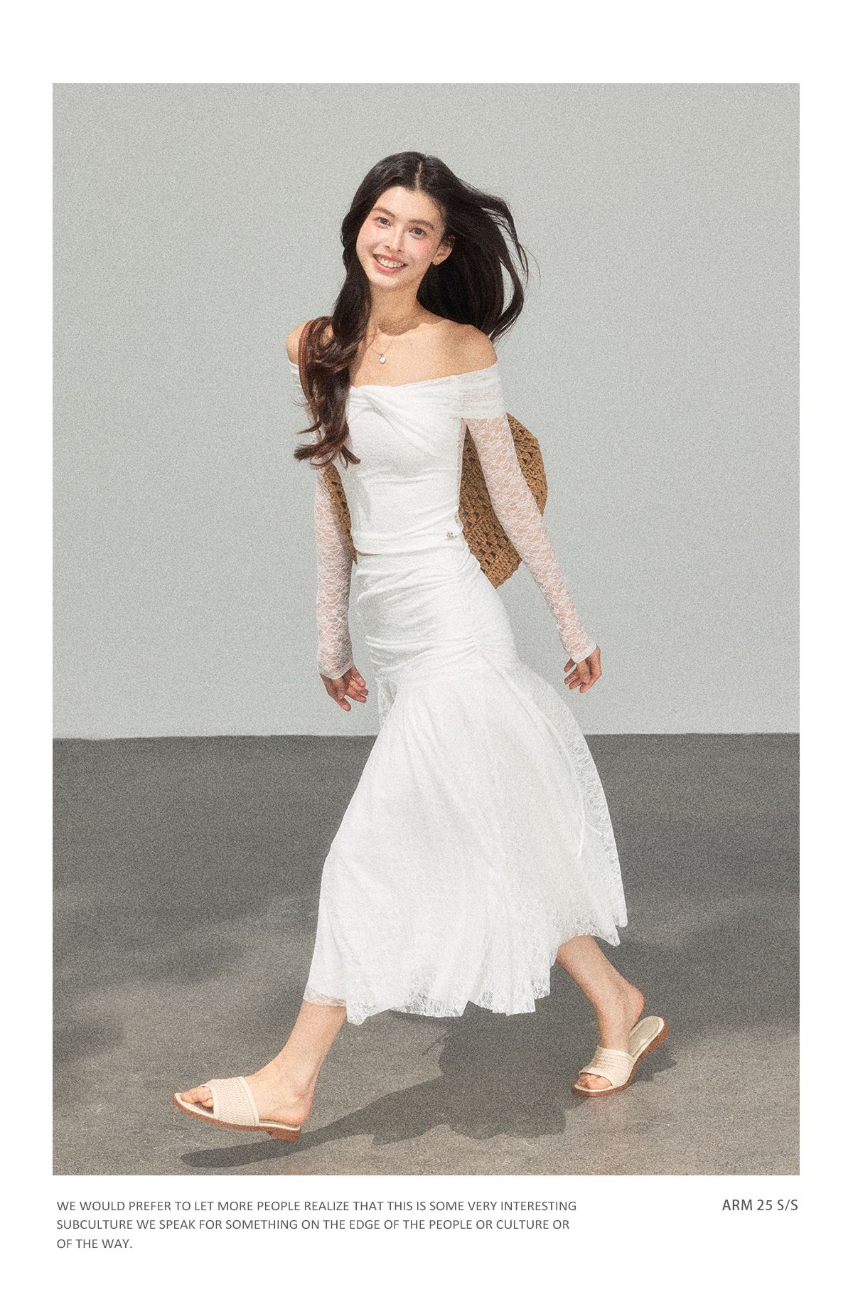 Ariseism 蕾丝长袖露肩上衣半身裙套装女秋新款两件套