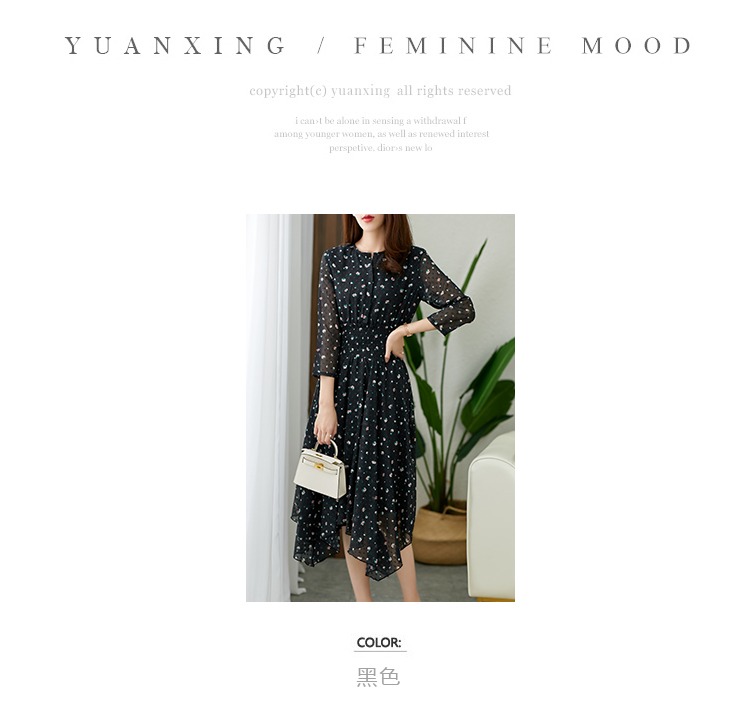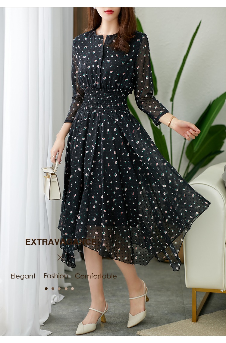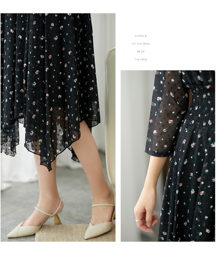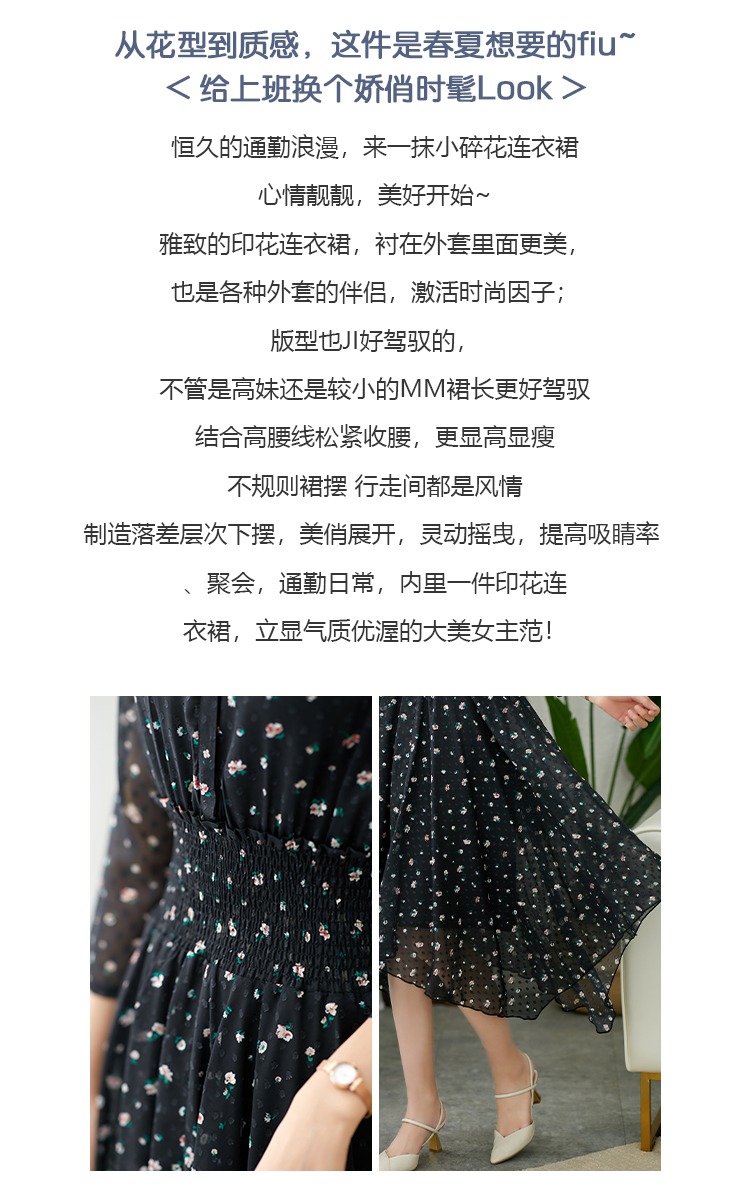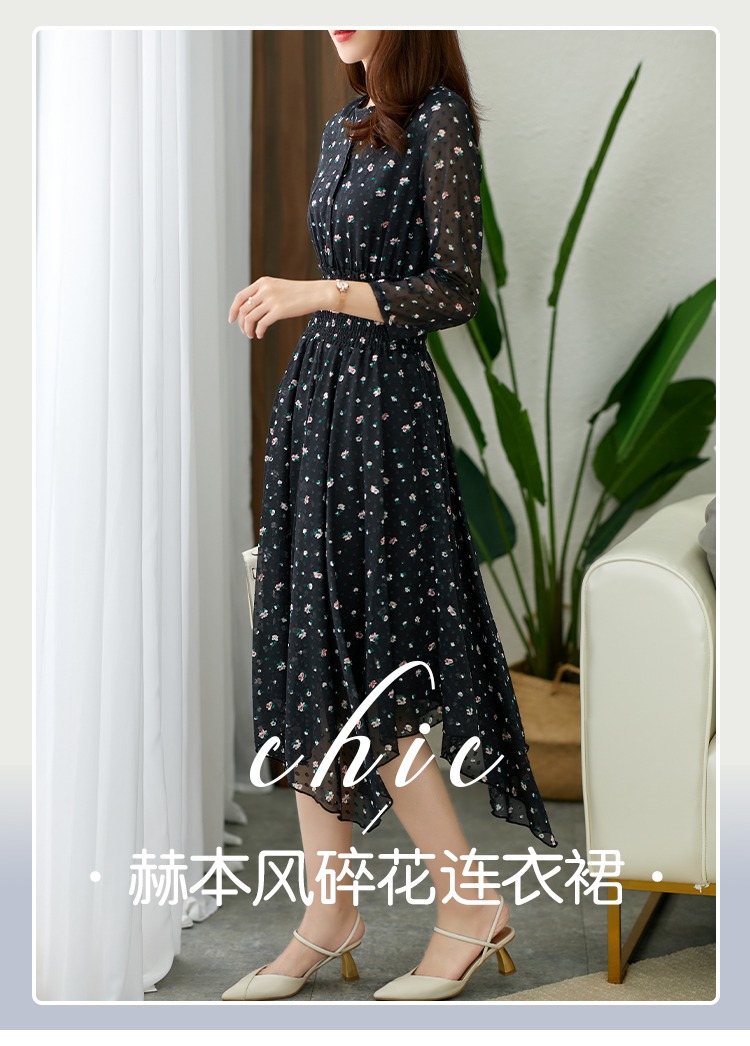 【现货款】赫本风碎花连衣裙女2023新款中长款法式收腰气质飘逸女士长裙