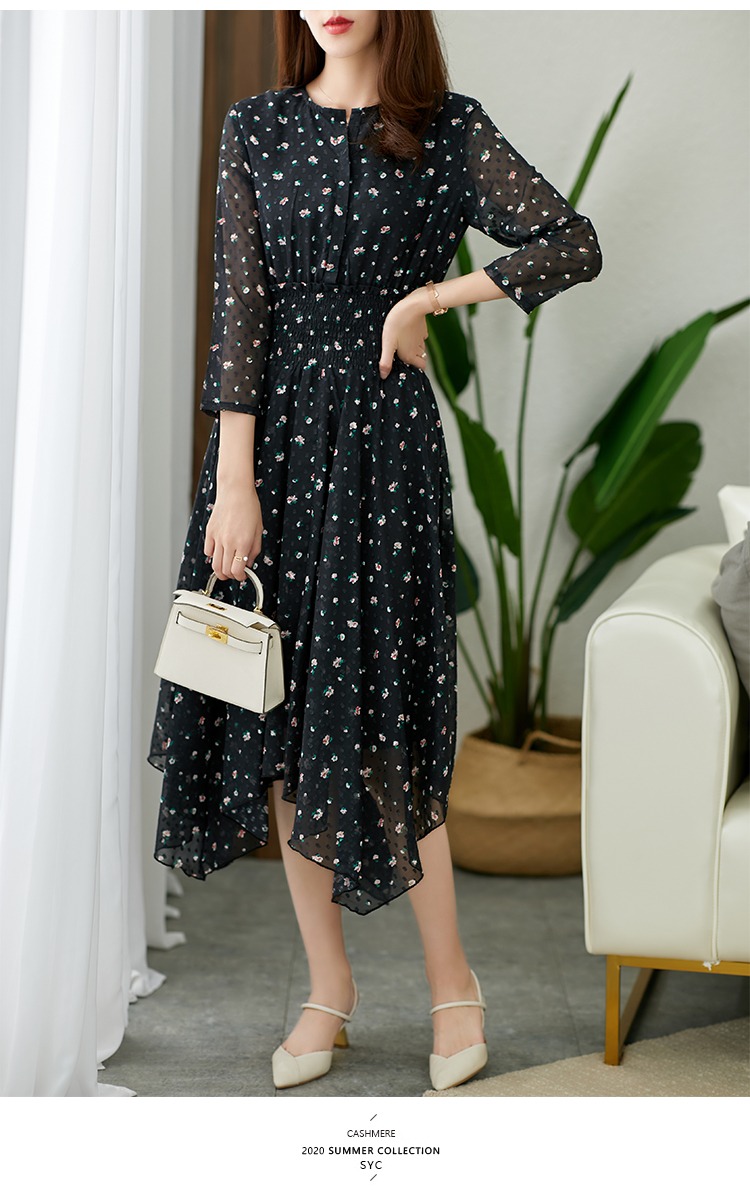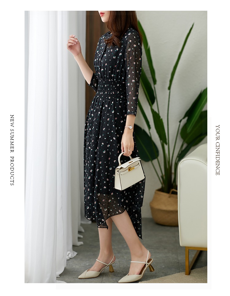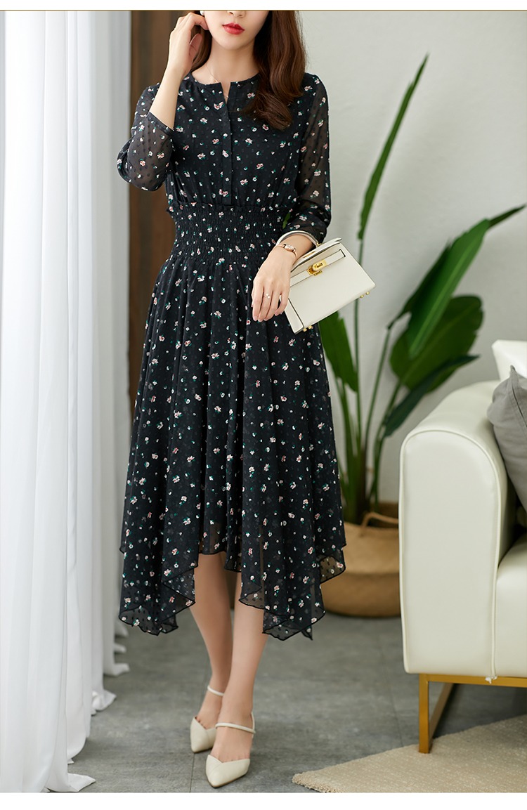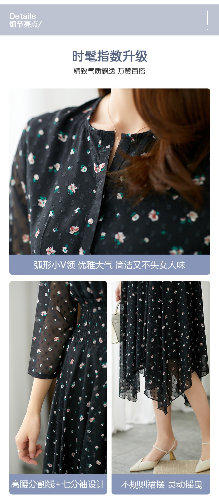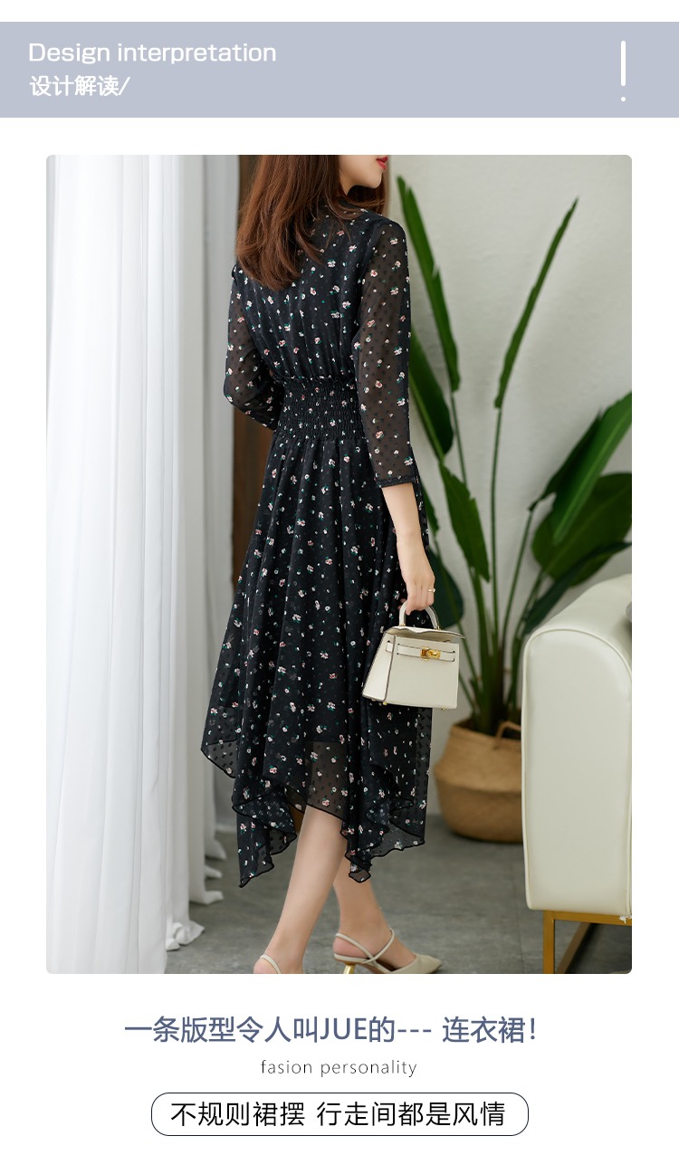 【现货款】赫本风碎花连衣裙女2023新款中长款法式收腰气质飘逸女士长裙