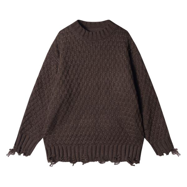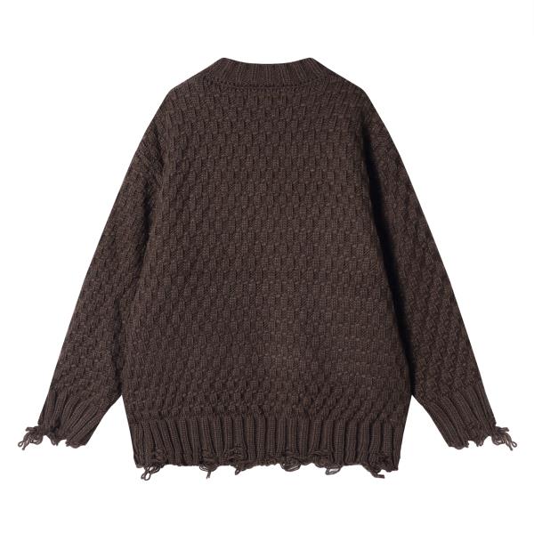 新款时尚个性小众设计感日系复古套头破坏毛衣宽松圆领痞帅针织衫