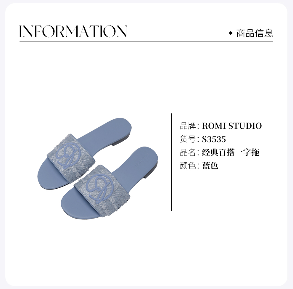 ROMI STUDIO“经典优雅” 百搭香香毛呢拼皮字母一字平底拖鞋S3535