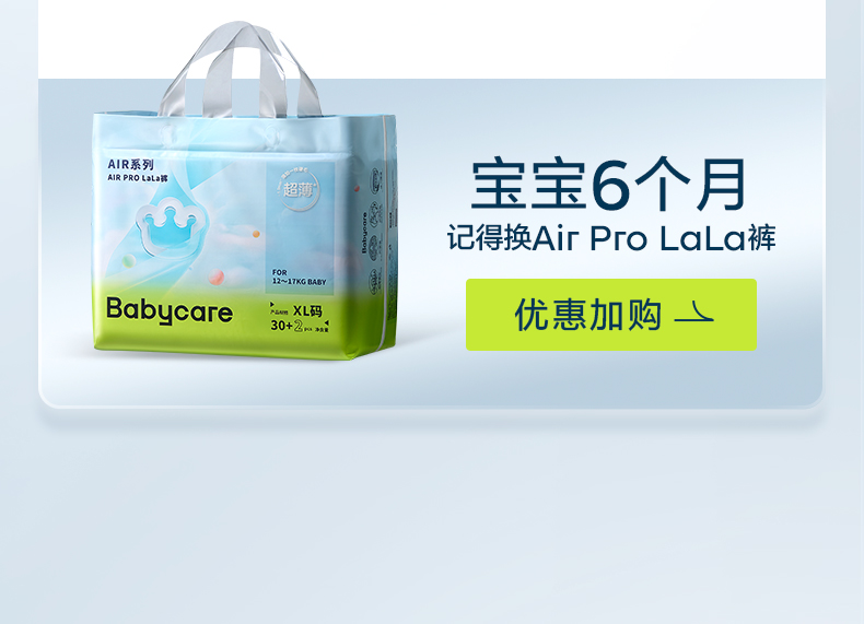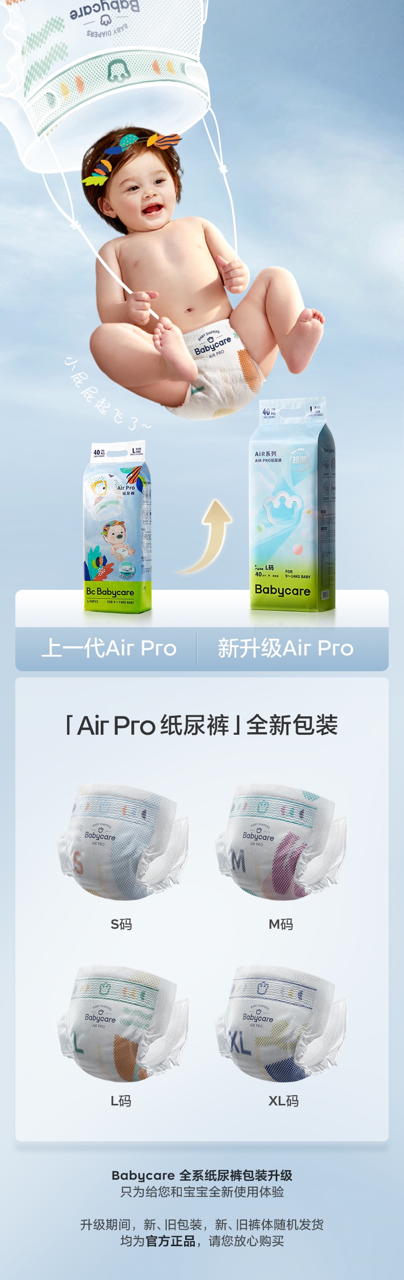 【日用】【S/M/L/XL尺码任选】babycare纸尿裤Air pro超薄透气婴儿弱酸干爽宝宝尿不湿