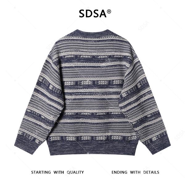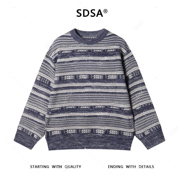 257132SDSA男士秋冬新款痞帅男装韩版撞色条纹圆领针织衫时尚慵懒风毛衣