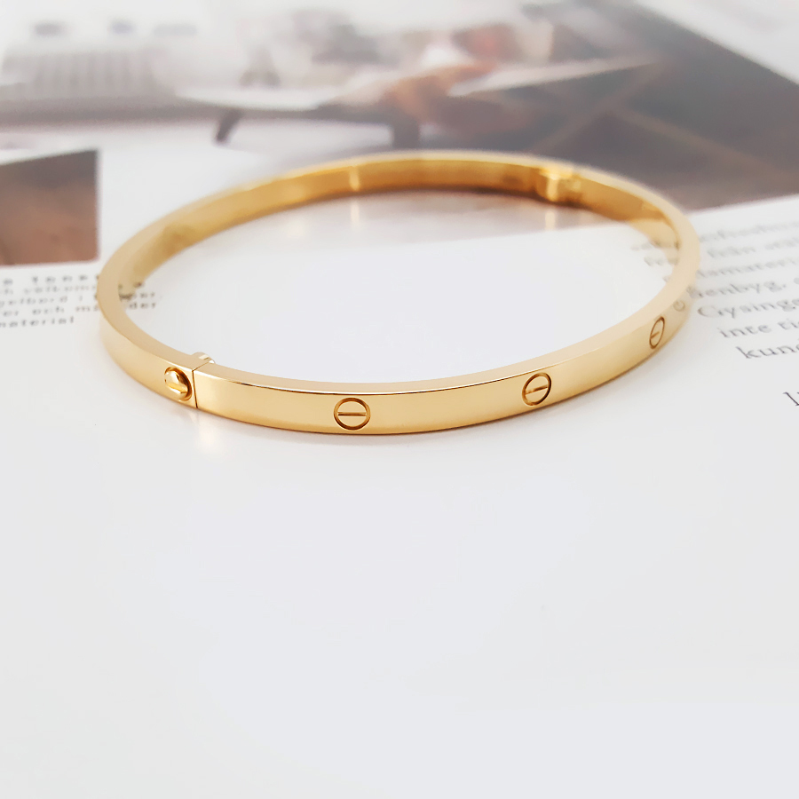 款式 | 18K黄金窄版无钻LOVE手镯 |