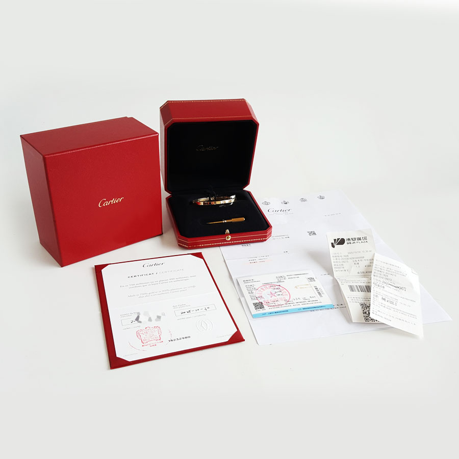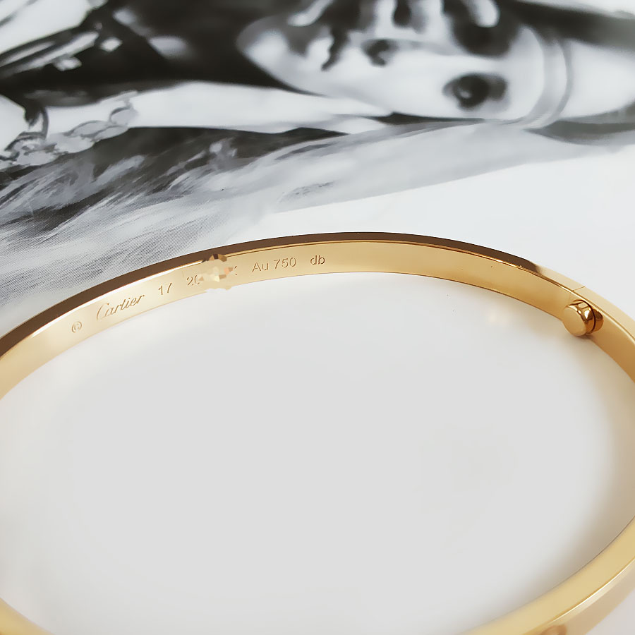 【95新】Cartier卡地亚LOVE系列B607911718K黄金窄版无钻LOVE手镯17号中性款310326HS07