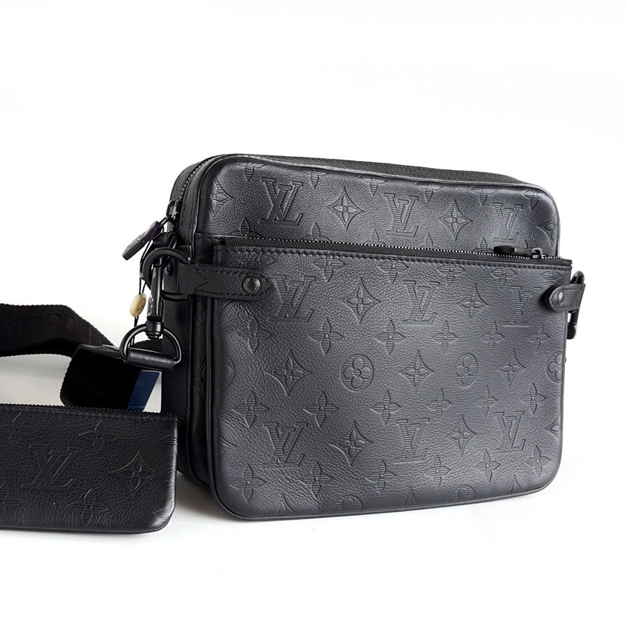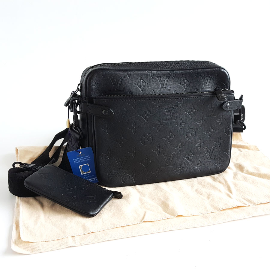 【98新闲置】LV路易威登TRIO邮差包M46602黑色全皮压花三合一TRIO邮差包斜挎包男士260326NJT37