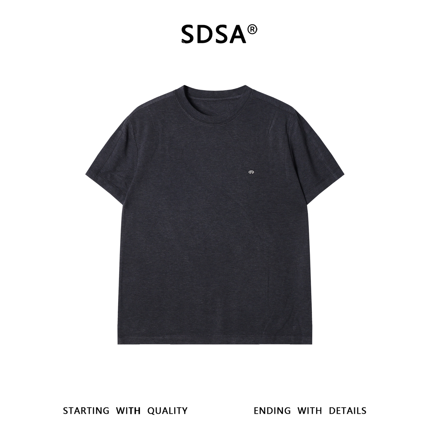SDSA男装2026新款高贵轻奢美式简约金属装饰圆领短袖T恤百搭舒适