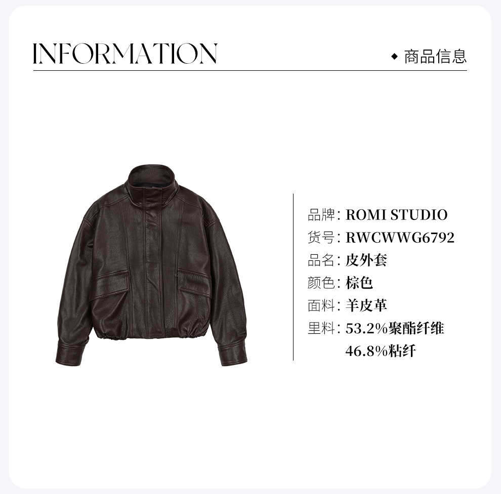 ROMI STUDIO新西兰进口绵羊皮发随性立领皮夹克外套 RWCWWG6792