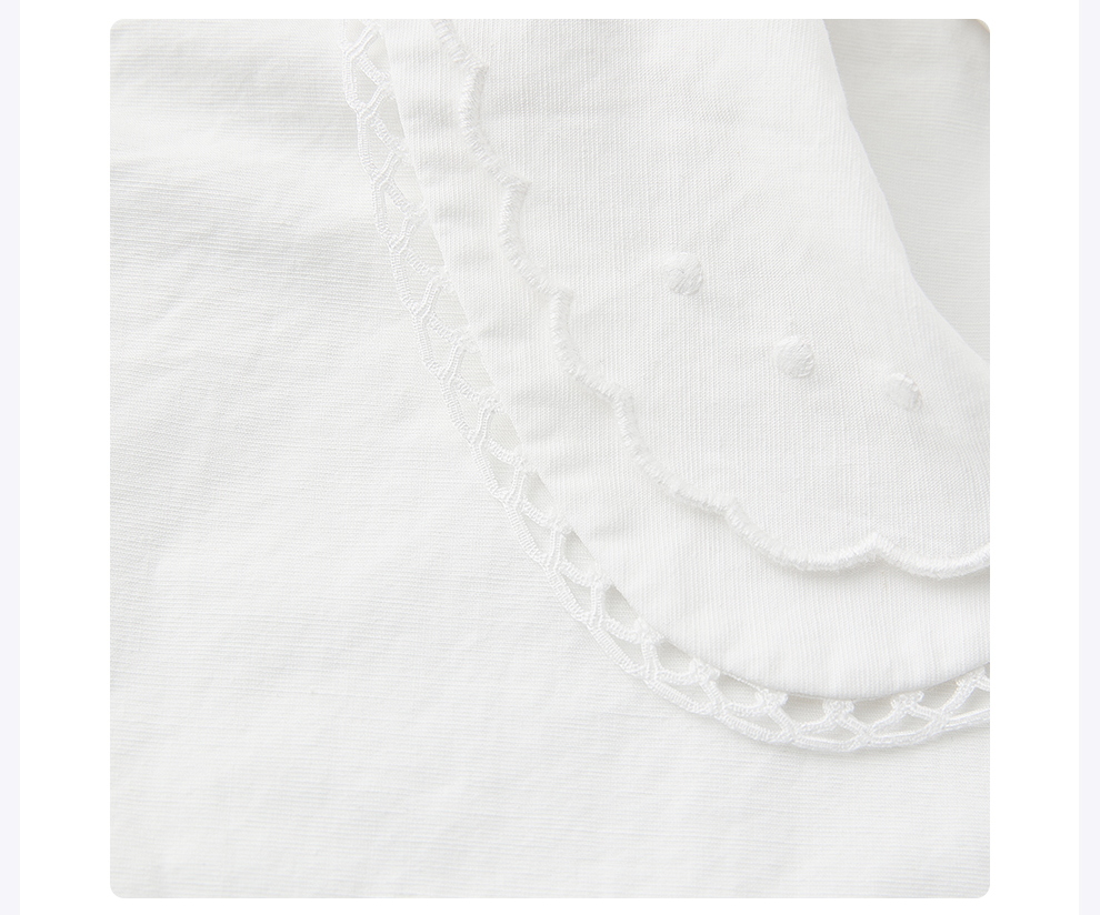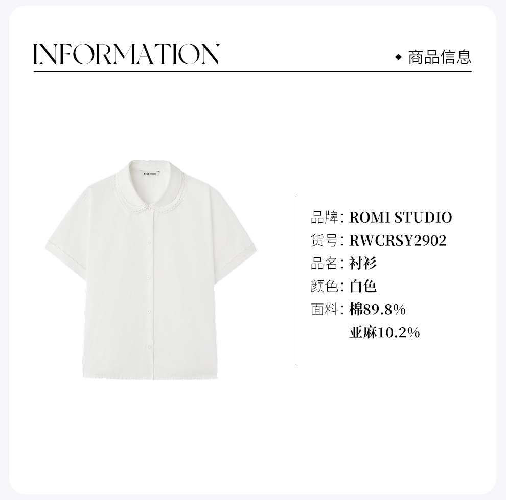 ROMI STUDIO 亚麻棉混纺白色双层花边领轻薄短袖衬衣 RWCRSY2902