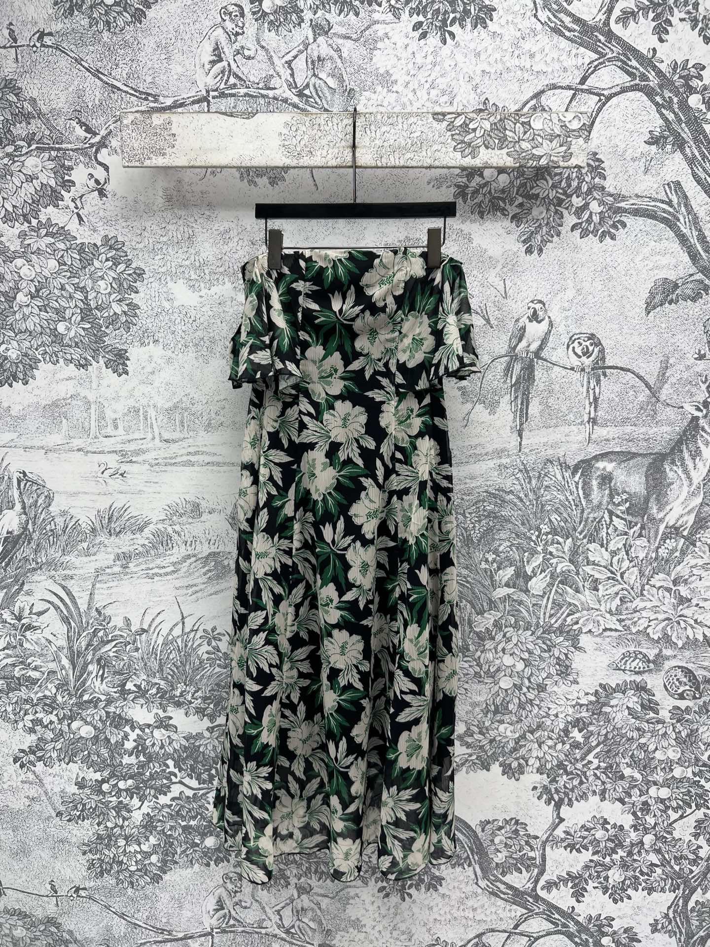 L家 25春夏新款 芙蓉花印花抹胸露肩连衣裙