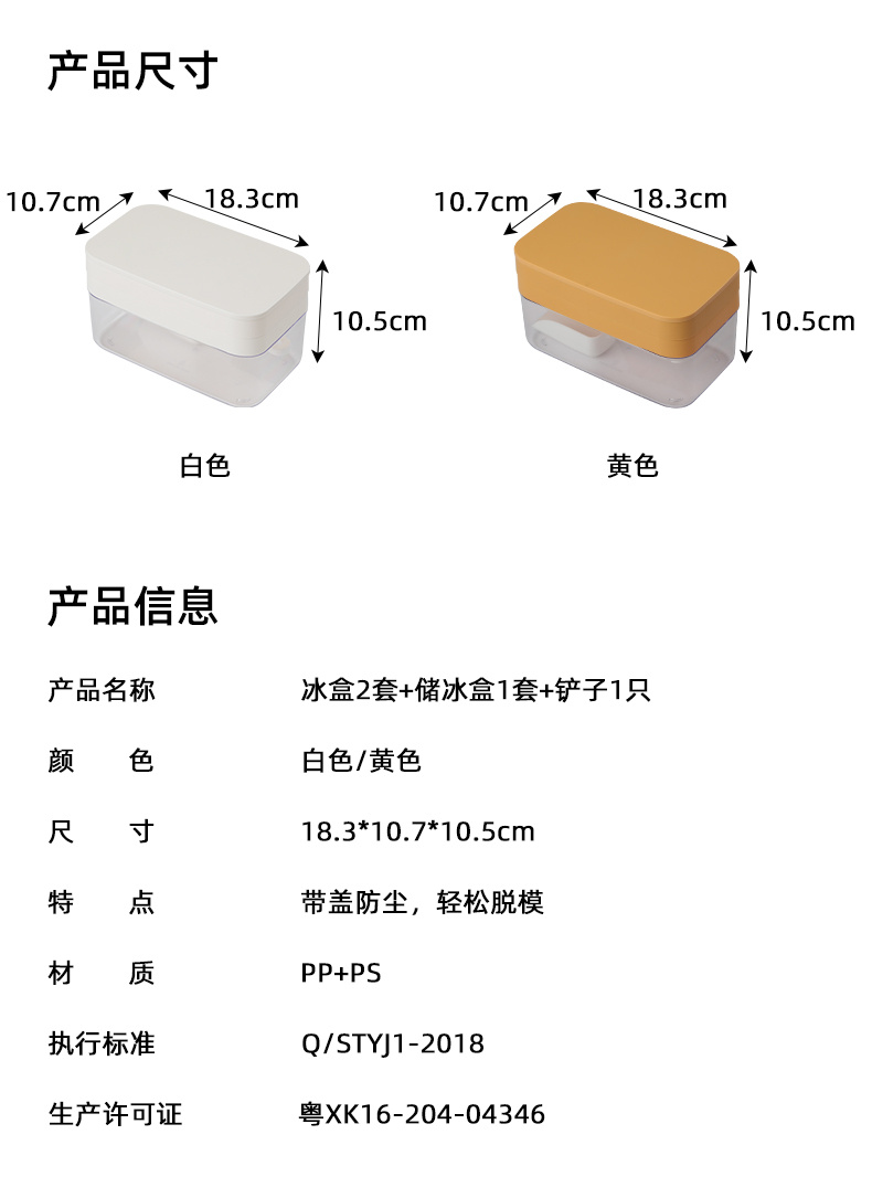 ⑤56格冰块套装(冰盒2个+收纳盒1个+铲子1只);颜色:白色、黄色
