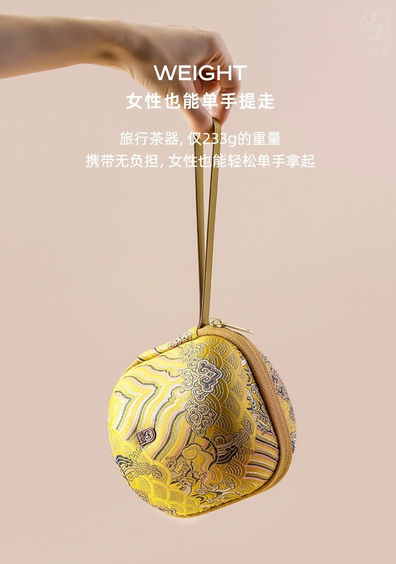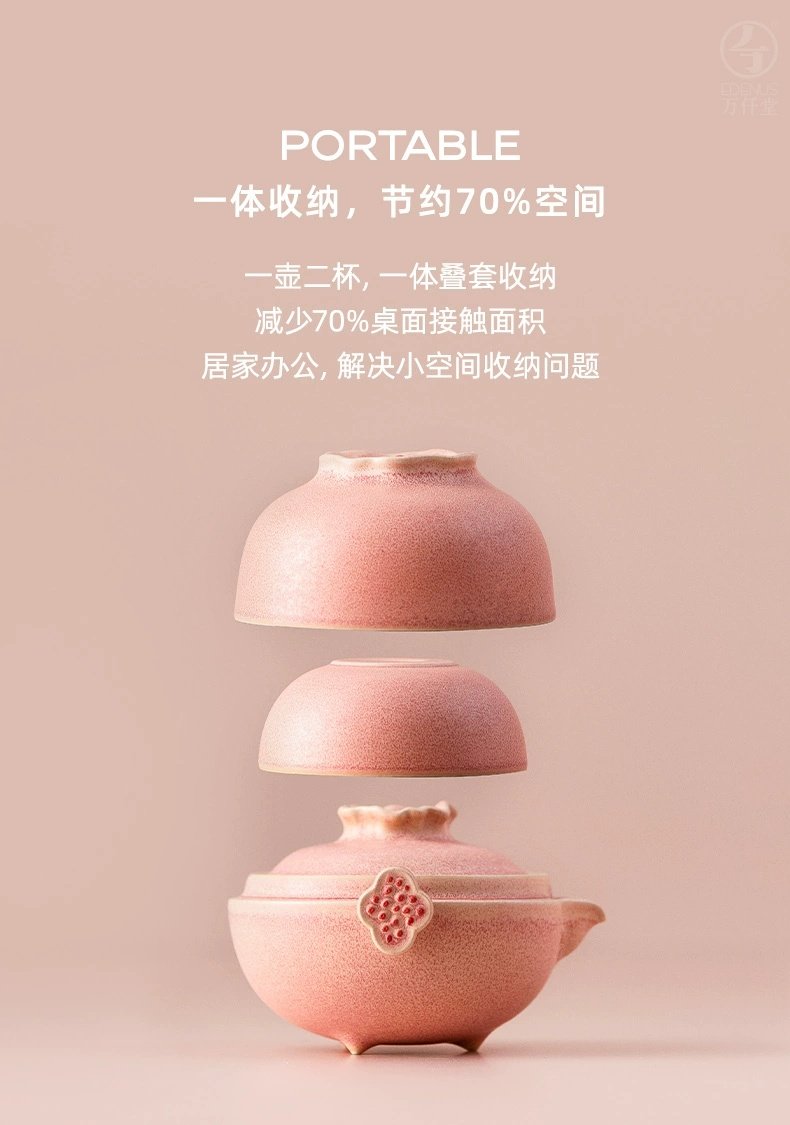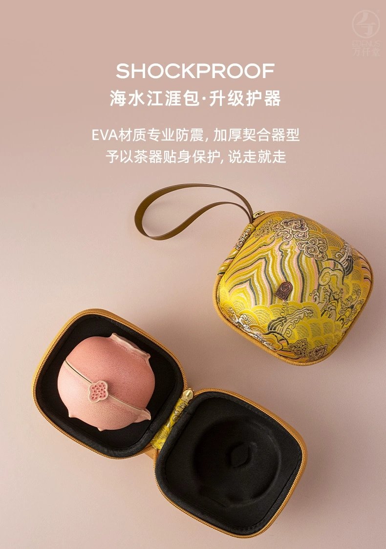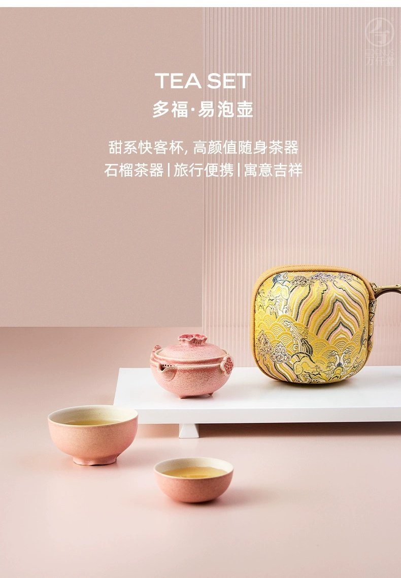 【预售7天】万仟堂便携式旅行茶具陶瓷快客杯一壶二杯茶具套装家用办公室多福 瓷器商品不支持七天无理由