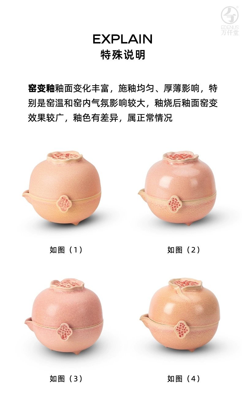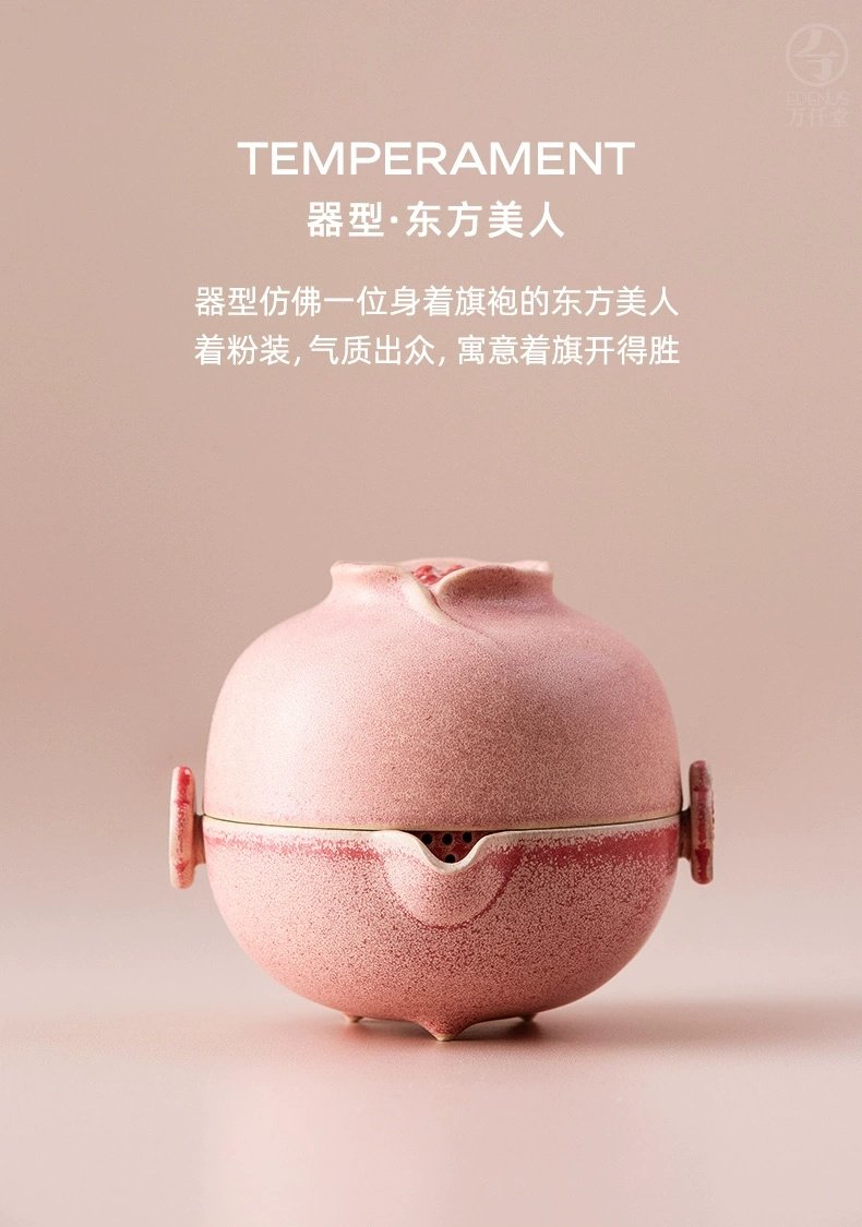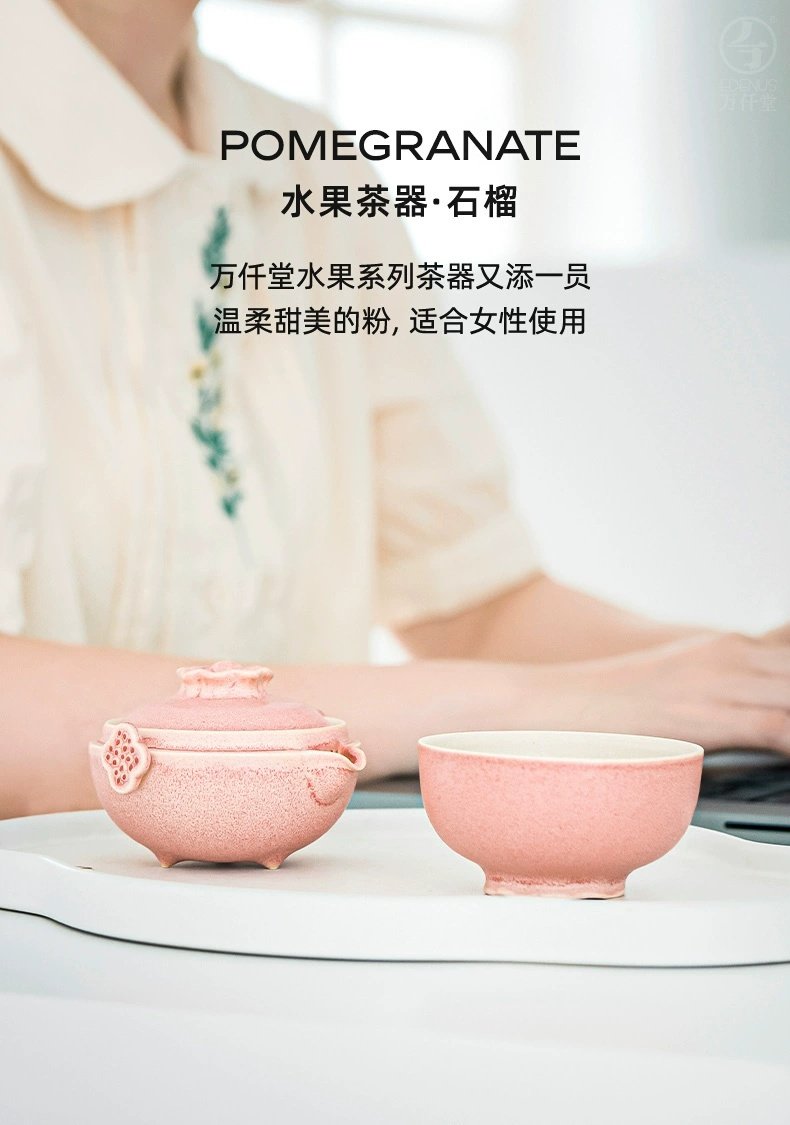 【预售7天】万仟堂便携式旅行茶具陶瓷快客杯一壶二杯茶具套装家用办公室多福 瓷器商品不支持七天无理由
