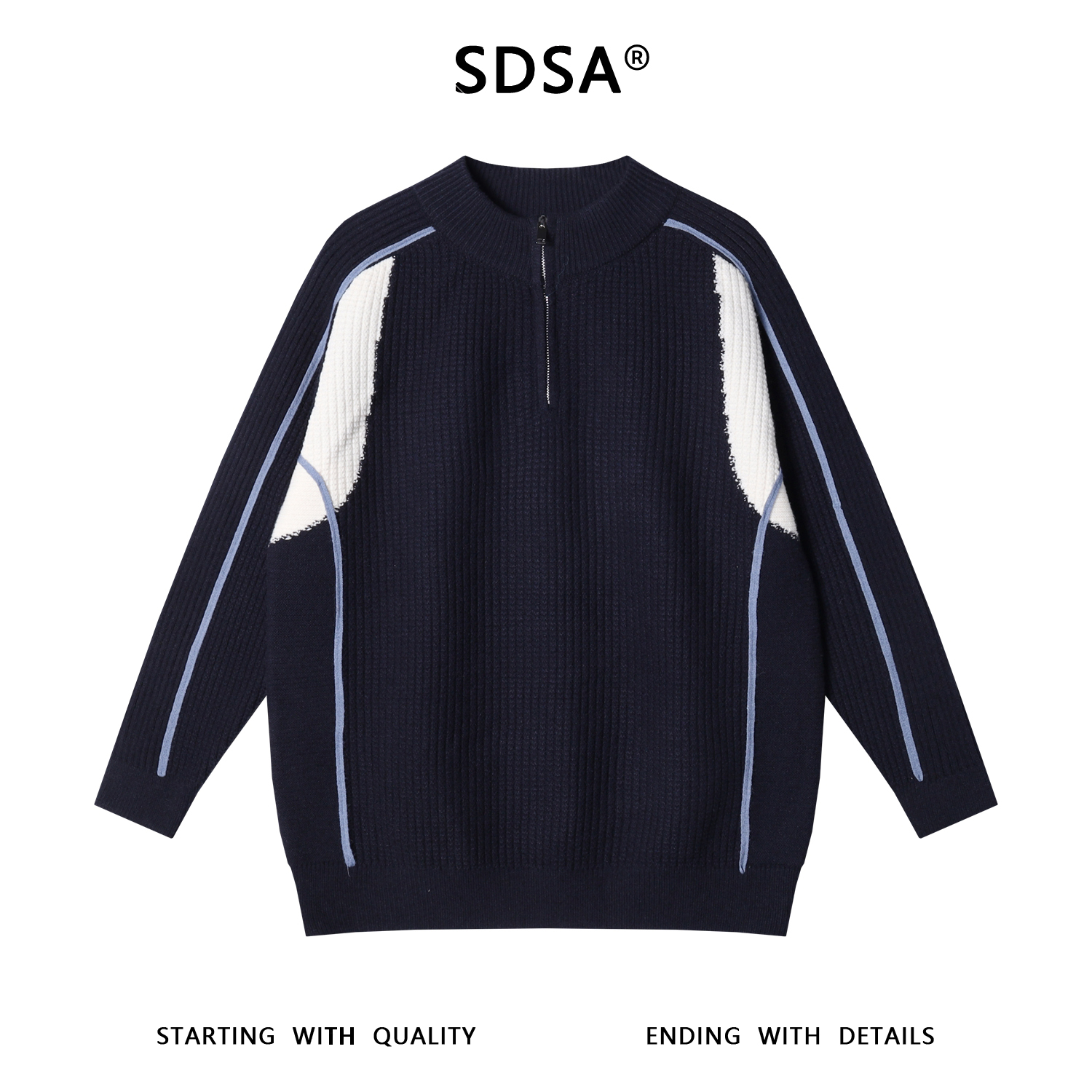 25166SDSA秋冬新款痞帅男装韩版撞色半拉链立领毛衣慵懒风休闲针织衫