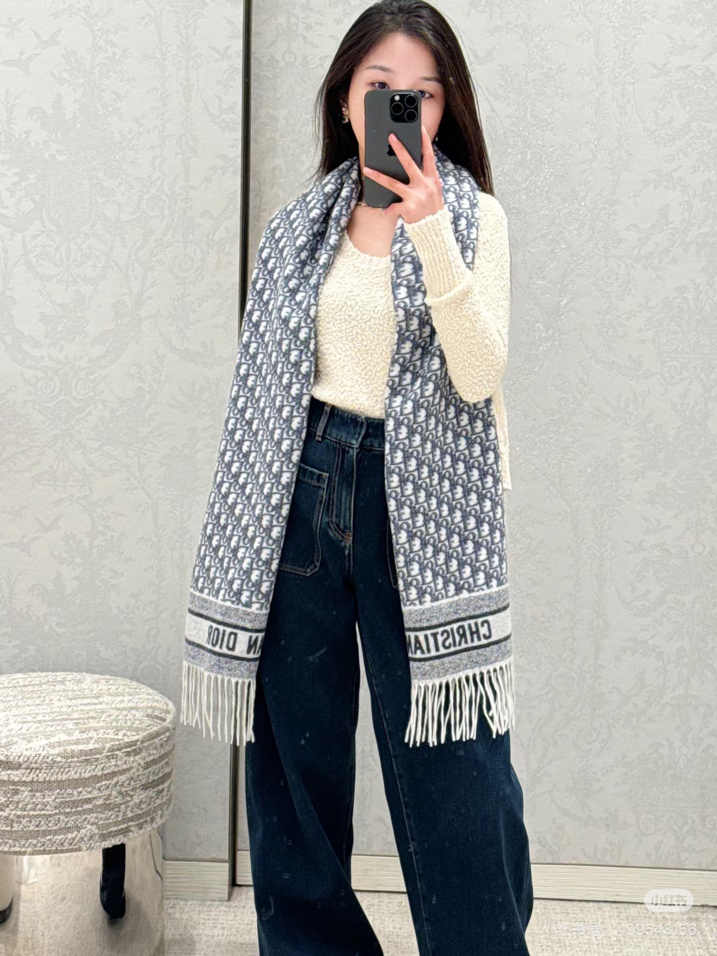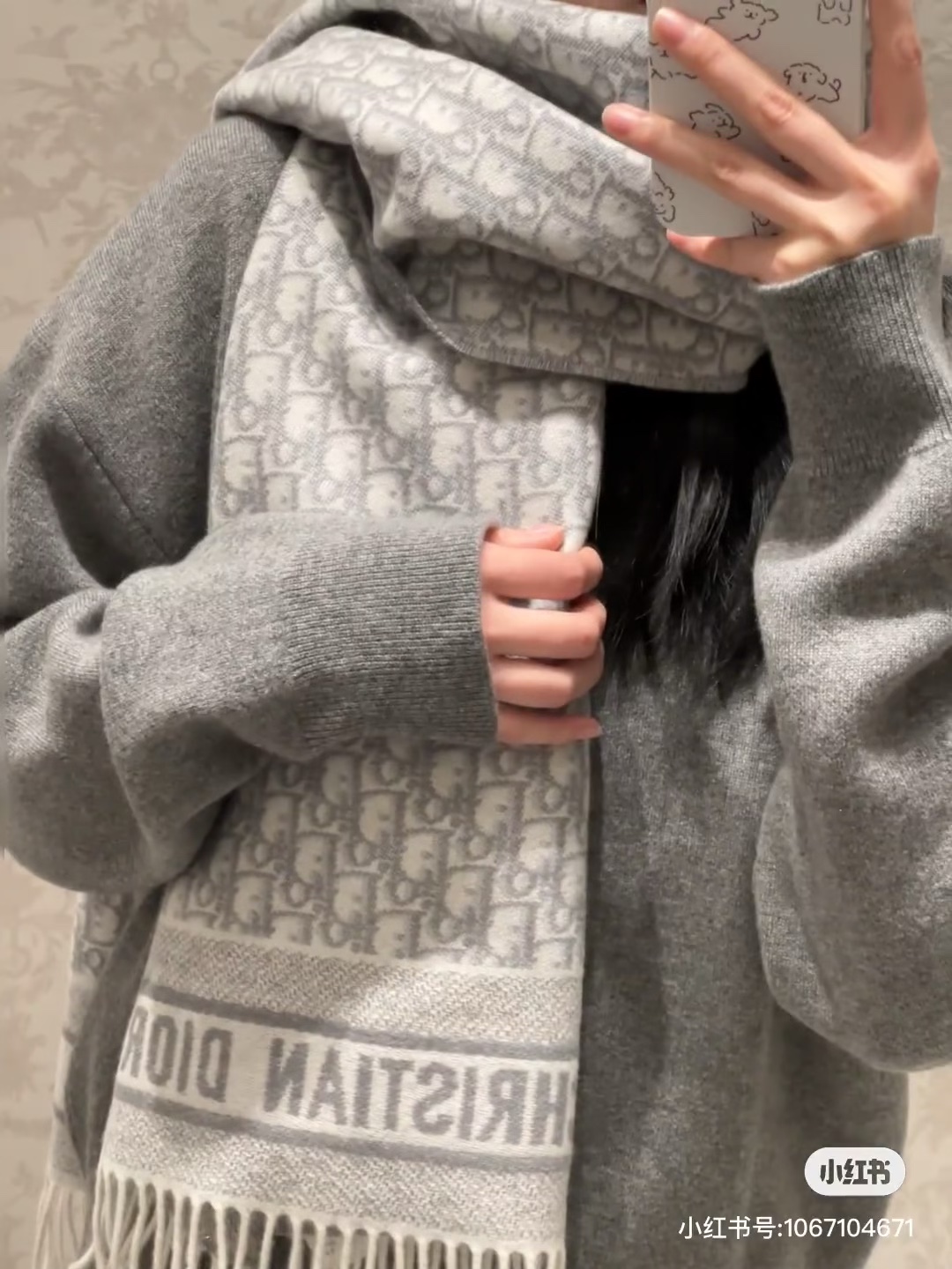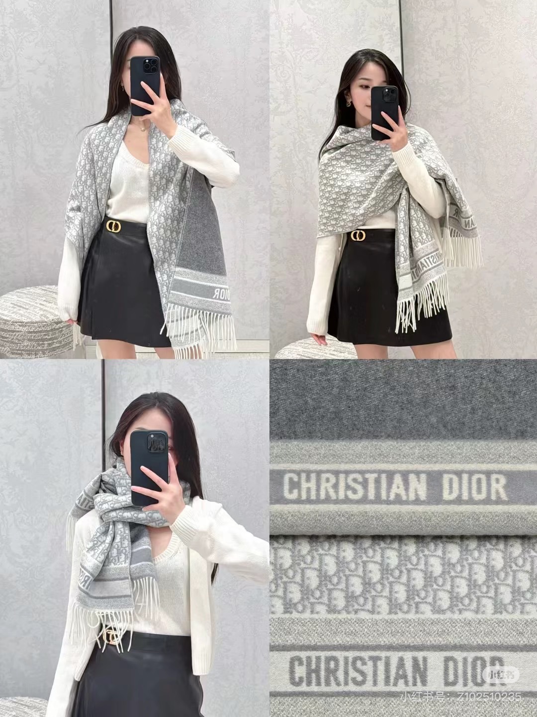 这款 Obli*ue 印花围巾重新诠释 D*or 经典标识,彰显现代精神。采用灰色山羊绒精心制作,双面设计,一面采用纯色,另一面饰以 D**r 经典的 Ob**que 印花。长款设计,饰以对比鲜明的同色调“CHRIS**AN D**R”标志提花条形图案和流苏饰边,可围在颈部或披在肩部。3色