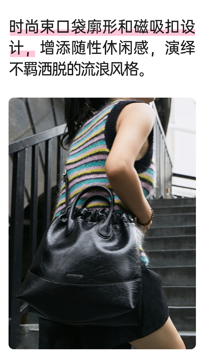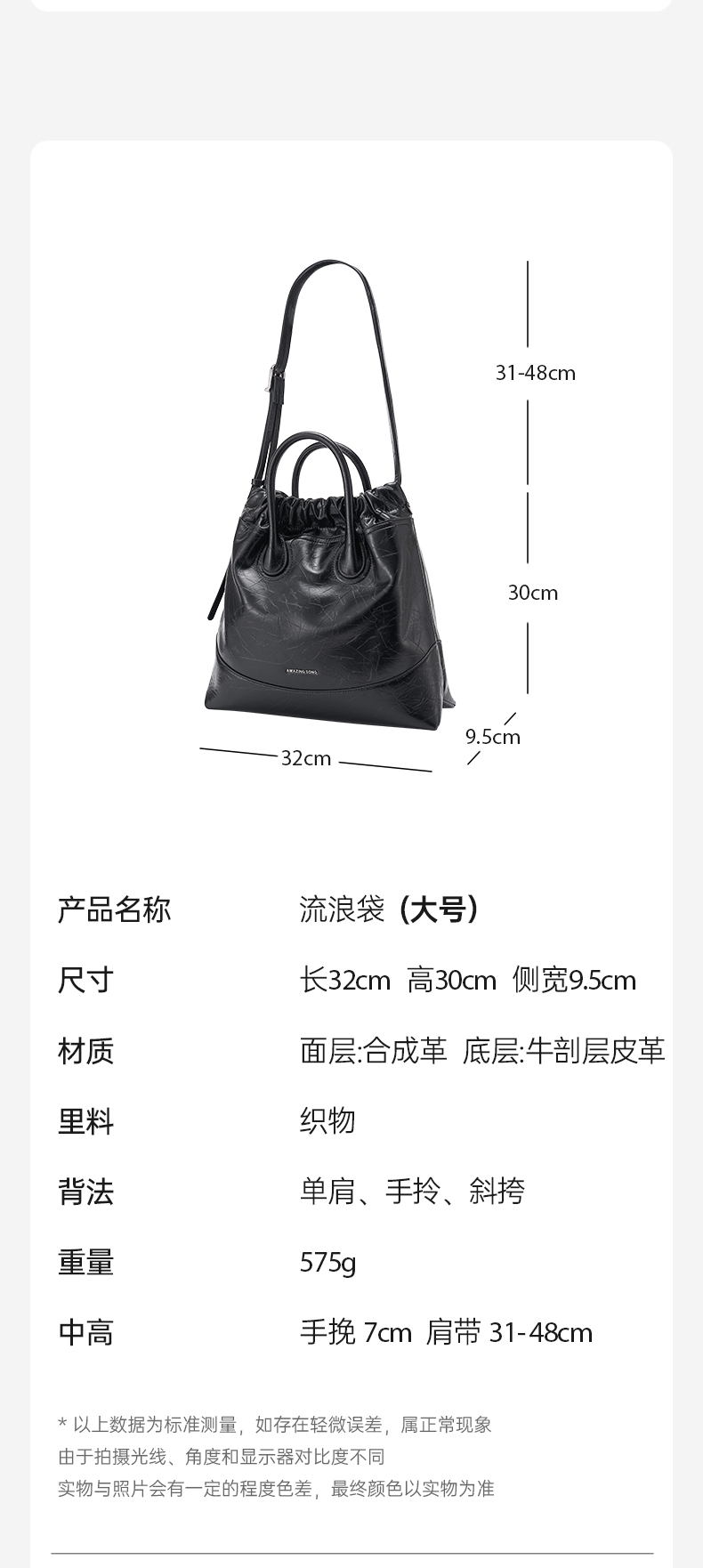 Amazing Song乙颂 流浪袋大号单肩牛皮大容量斜挎小众托特包包女