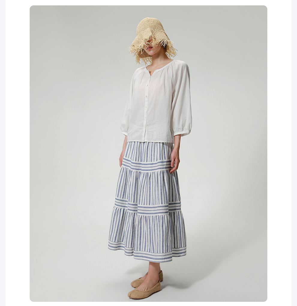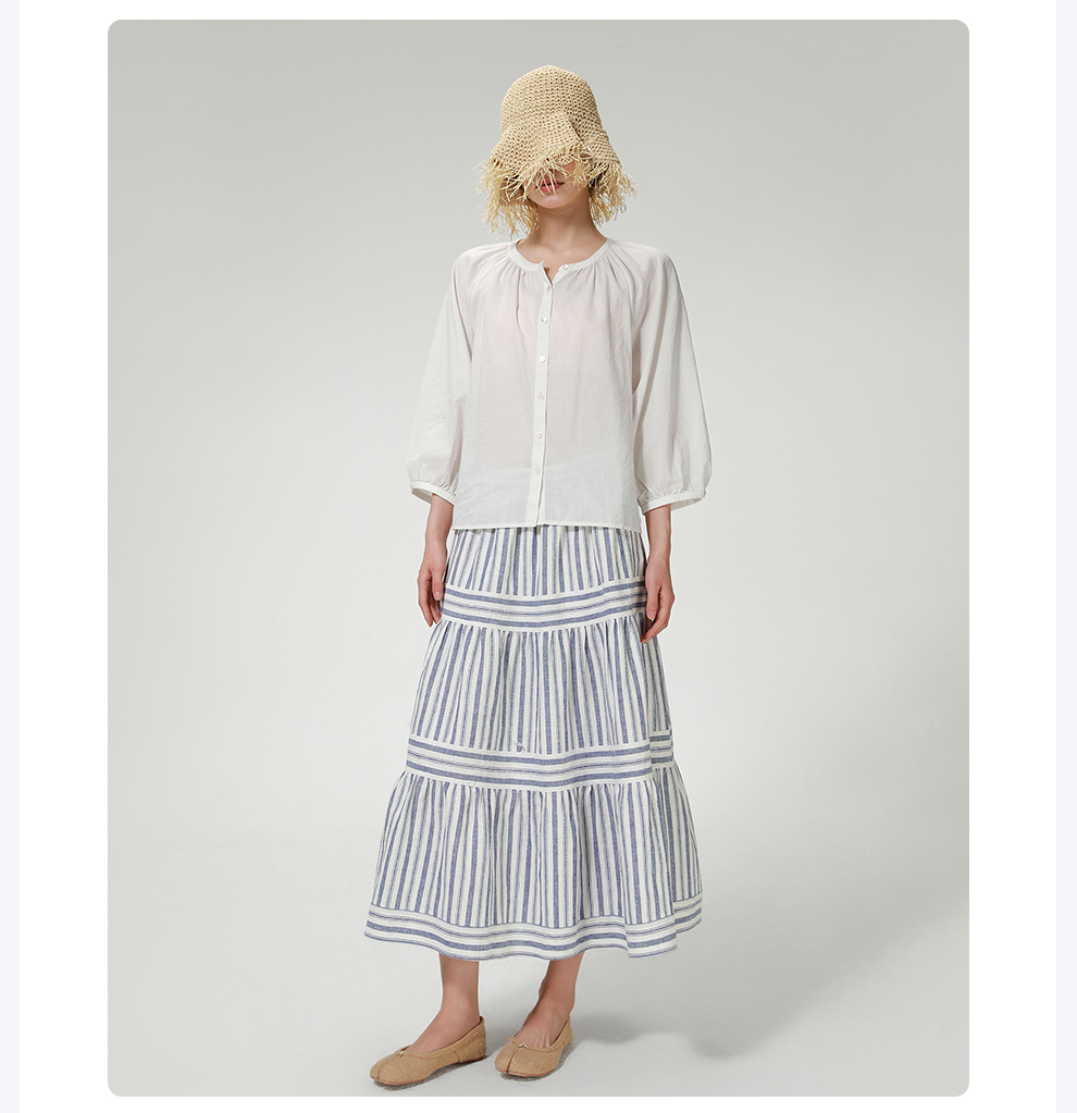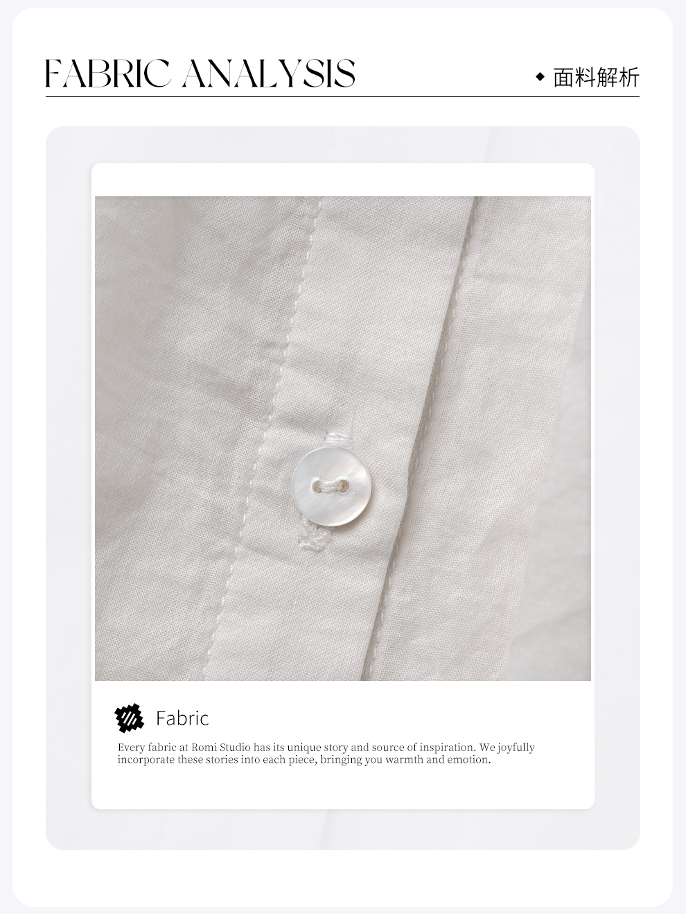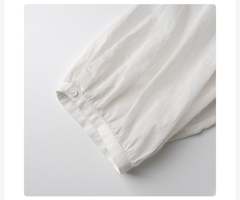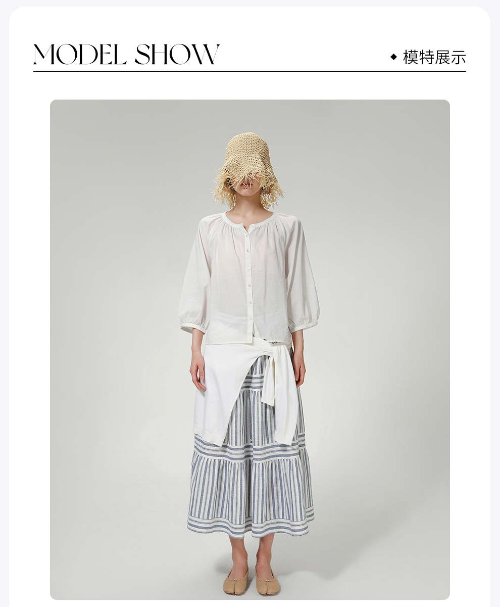 ROMI STUDIO“棉的印迹”100超纤棉洗水肤感圆领泡泡袖衬衣421C6034