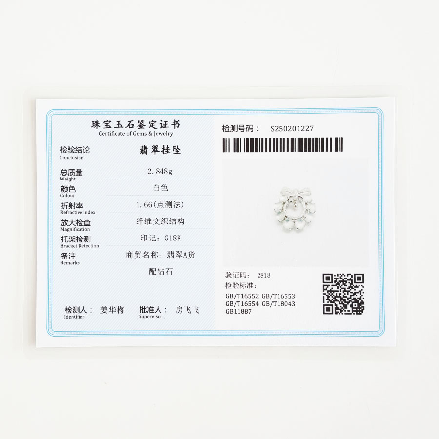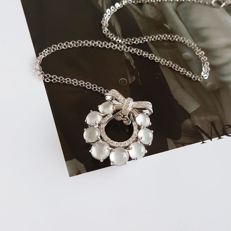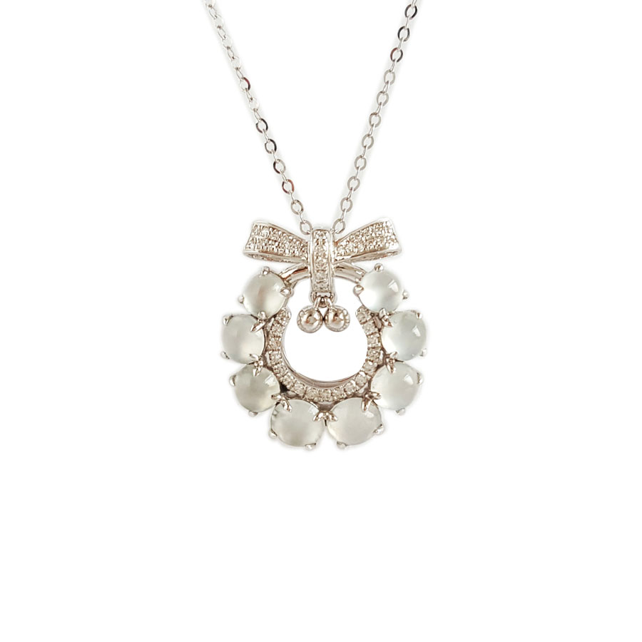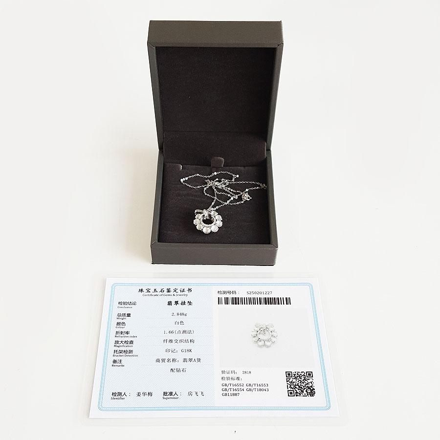 名称 | AU750白金镶钻镶天然冰种蛋面翡翠吊坠项链 |