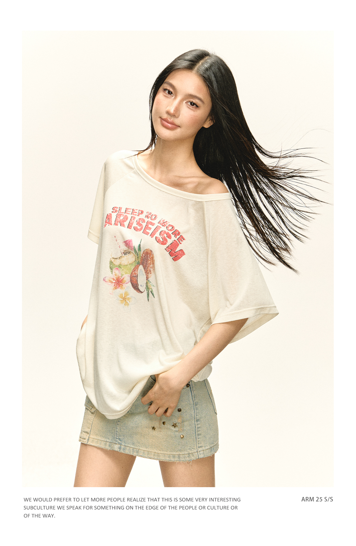 Ariseism 美式复古辣妹修身设计感露肩短袖T恤女夏季新款显瘦上衣