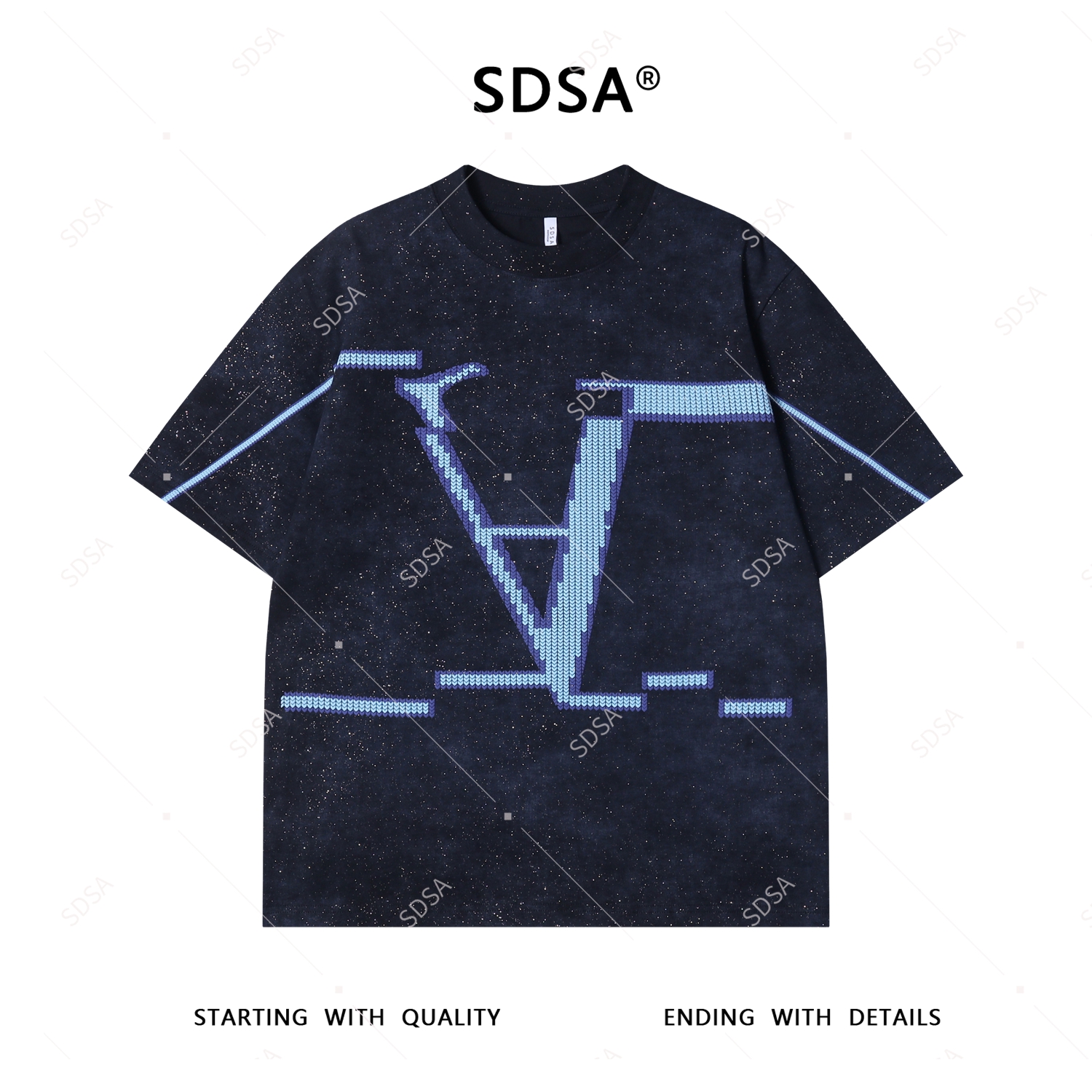 T3874夏季高级感新款男士美式撞色印花字母设计短袖T恤满天星百搭上衣