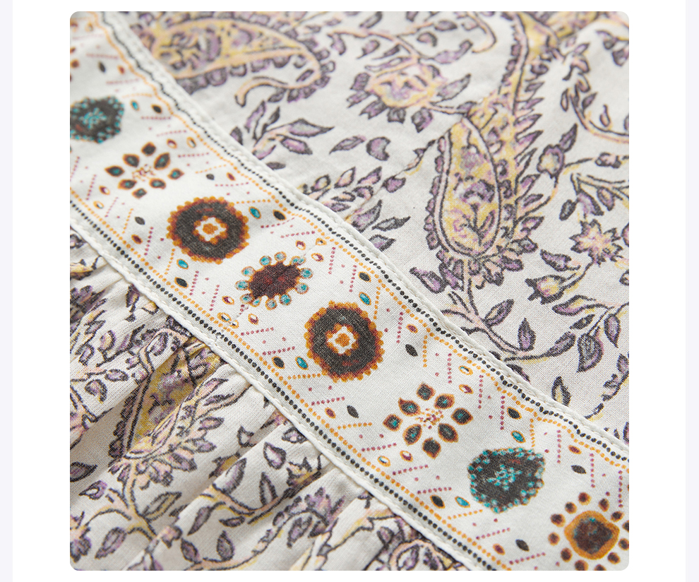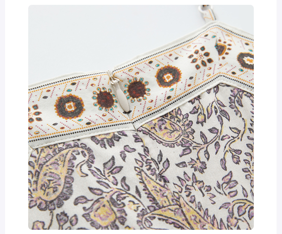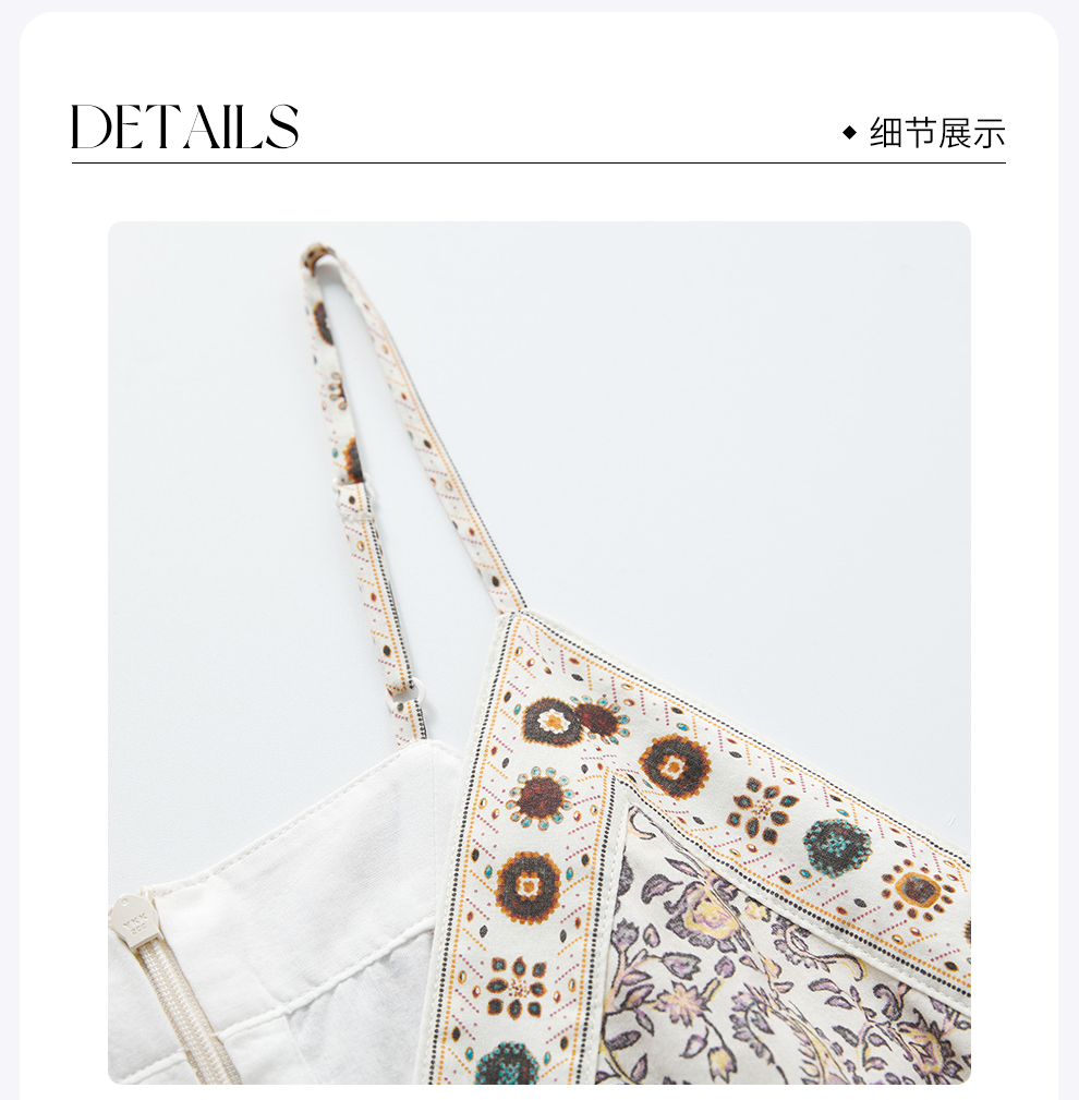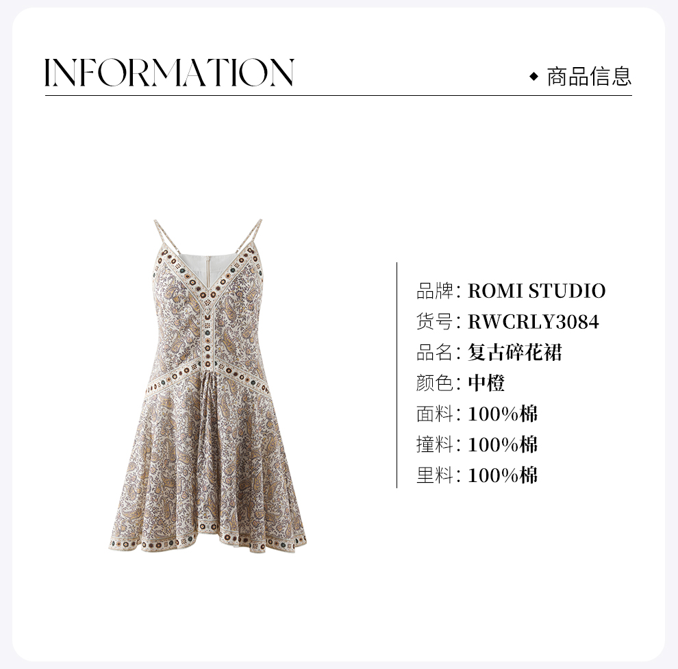 ROMI STUDIO“复古优雅”度假风手绘印花V领吊带连衣裙 RWCRLY3084 【发货时间:25-30天】