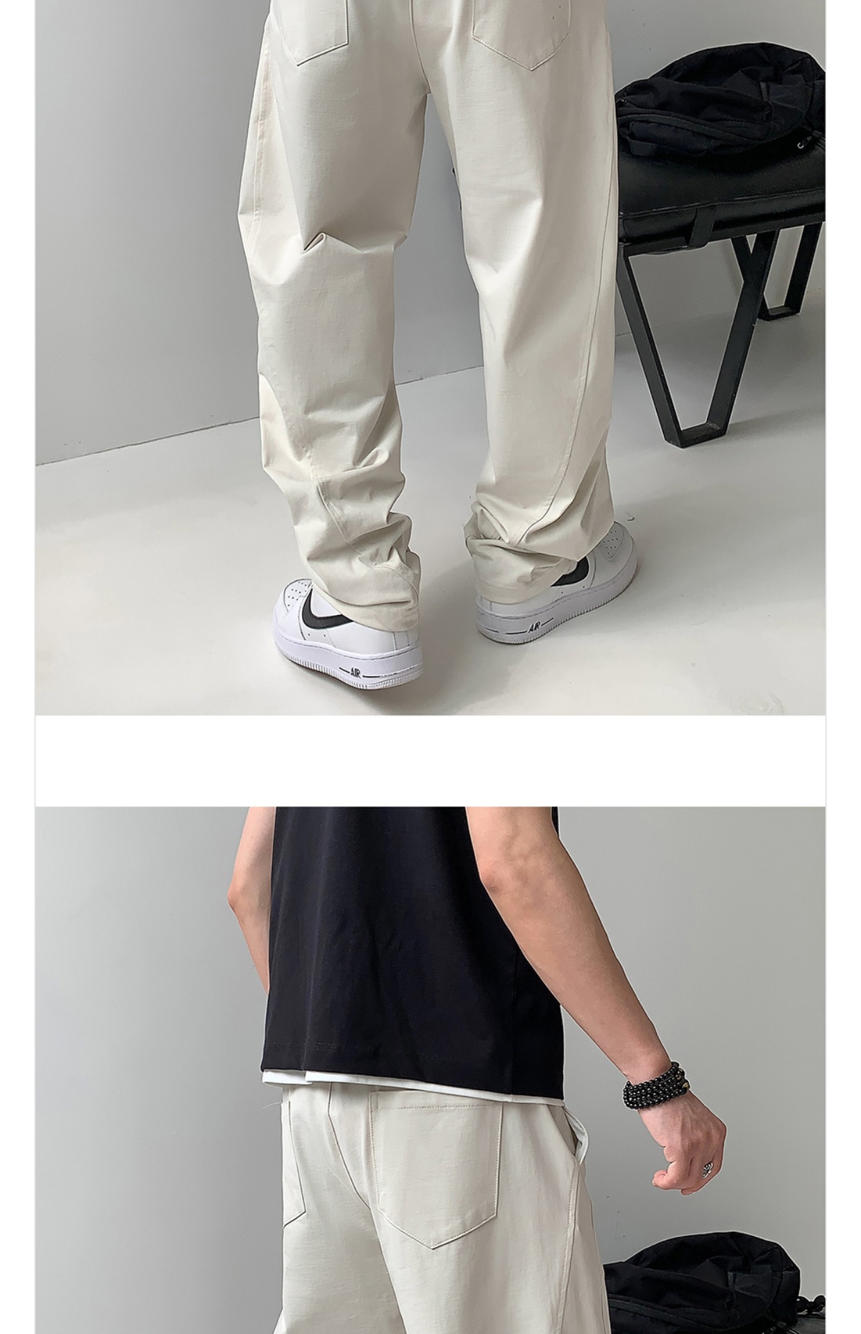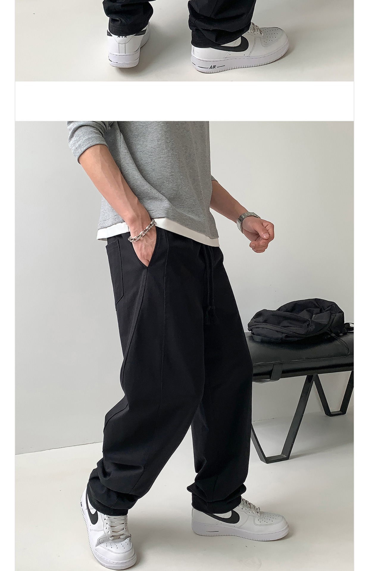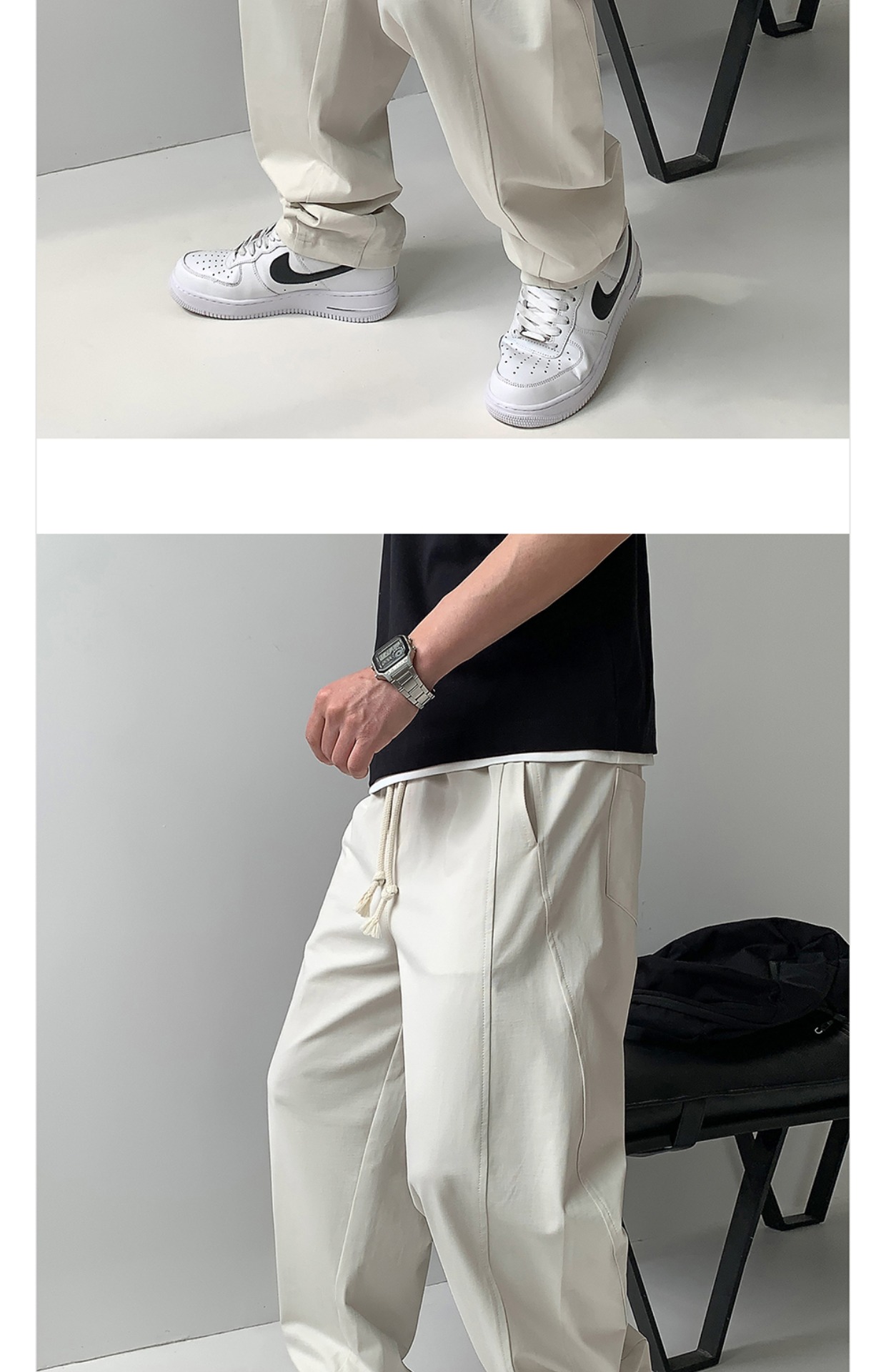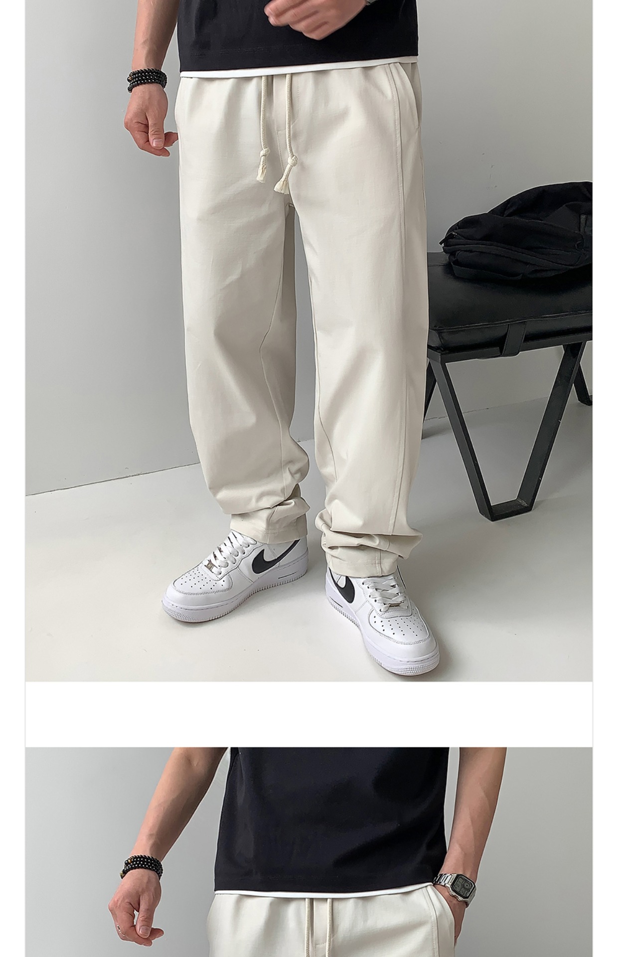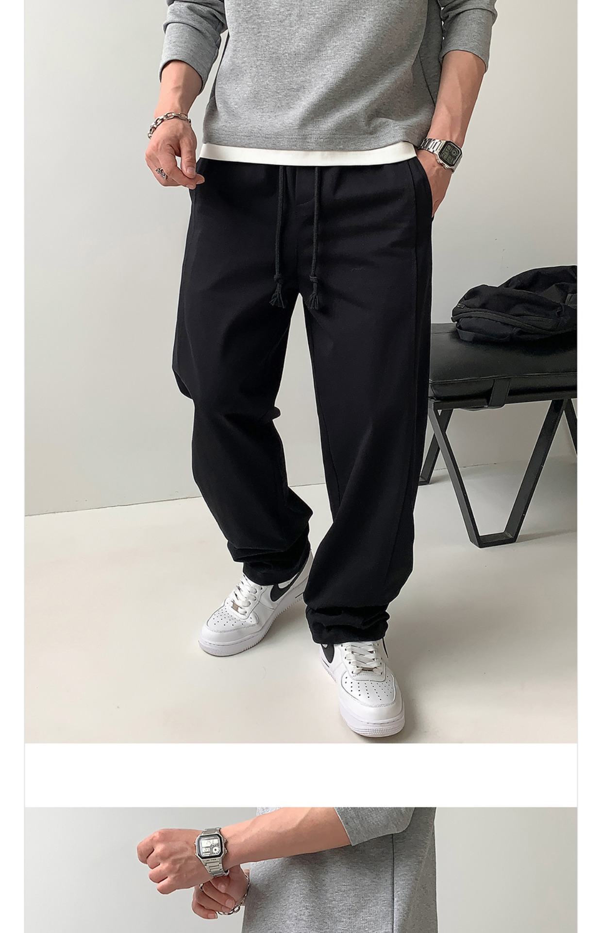 徐太浪缉明线纯色系绳休闲裤男2025新款春秋宽松直筒裤子大码长裤
