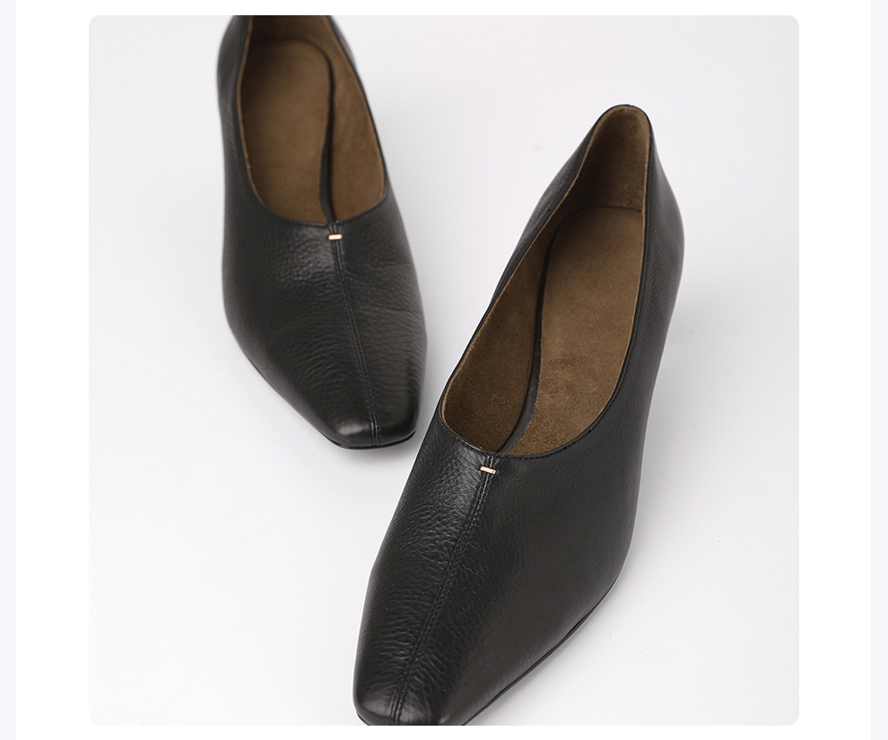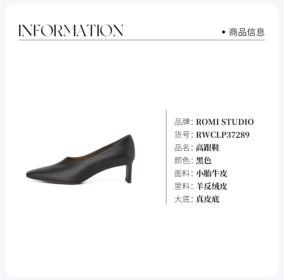 ROMI STUDIO“法式气质”胎牛皮尖头小方跟舒适高跟鞋 RWCLP37289