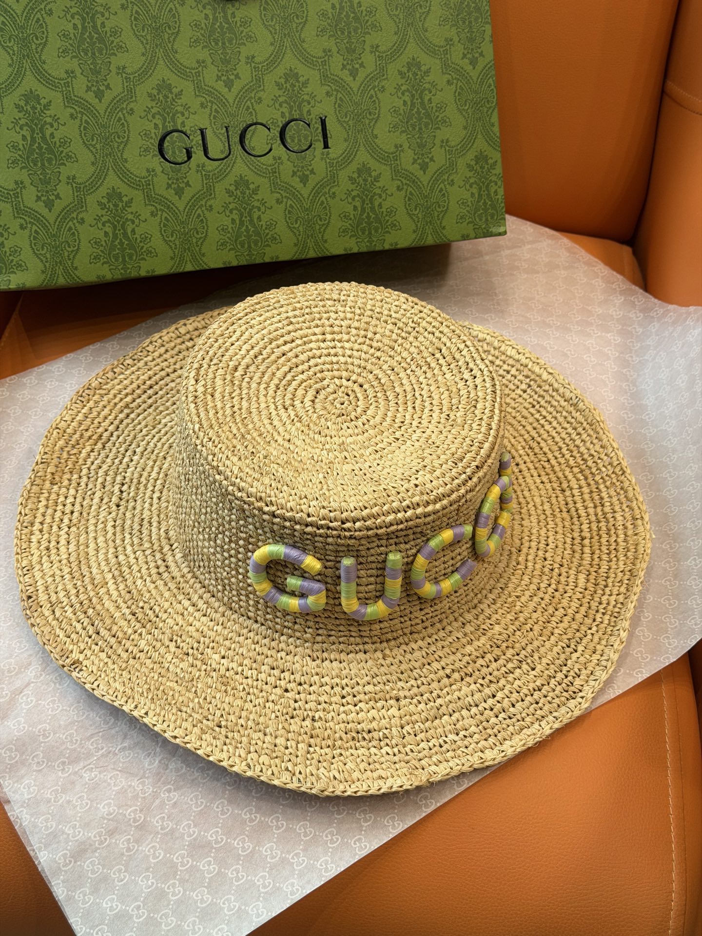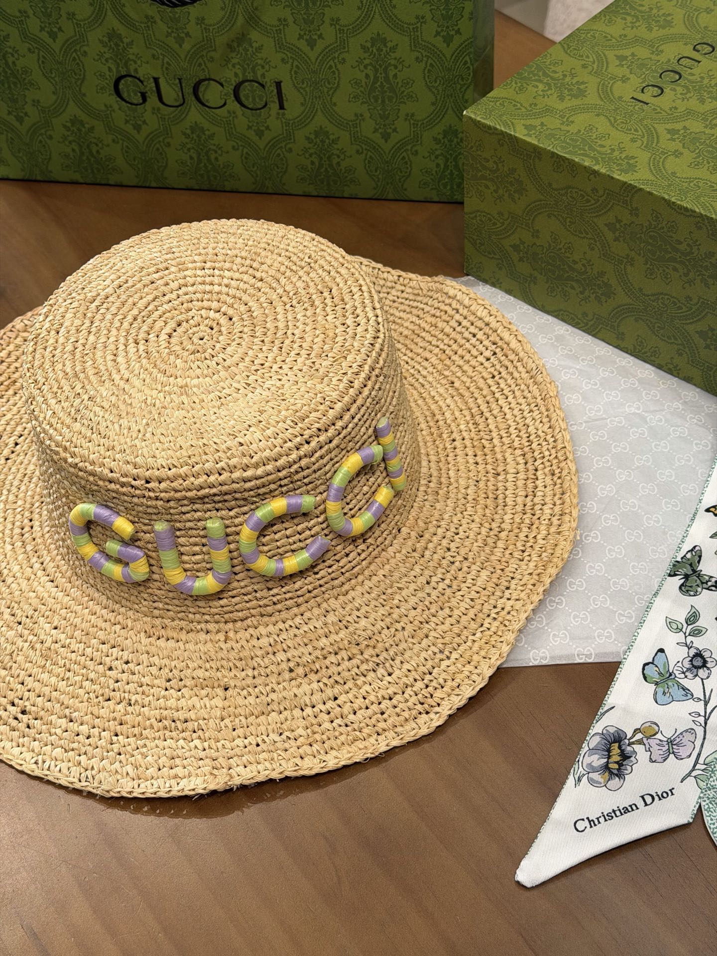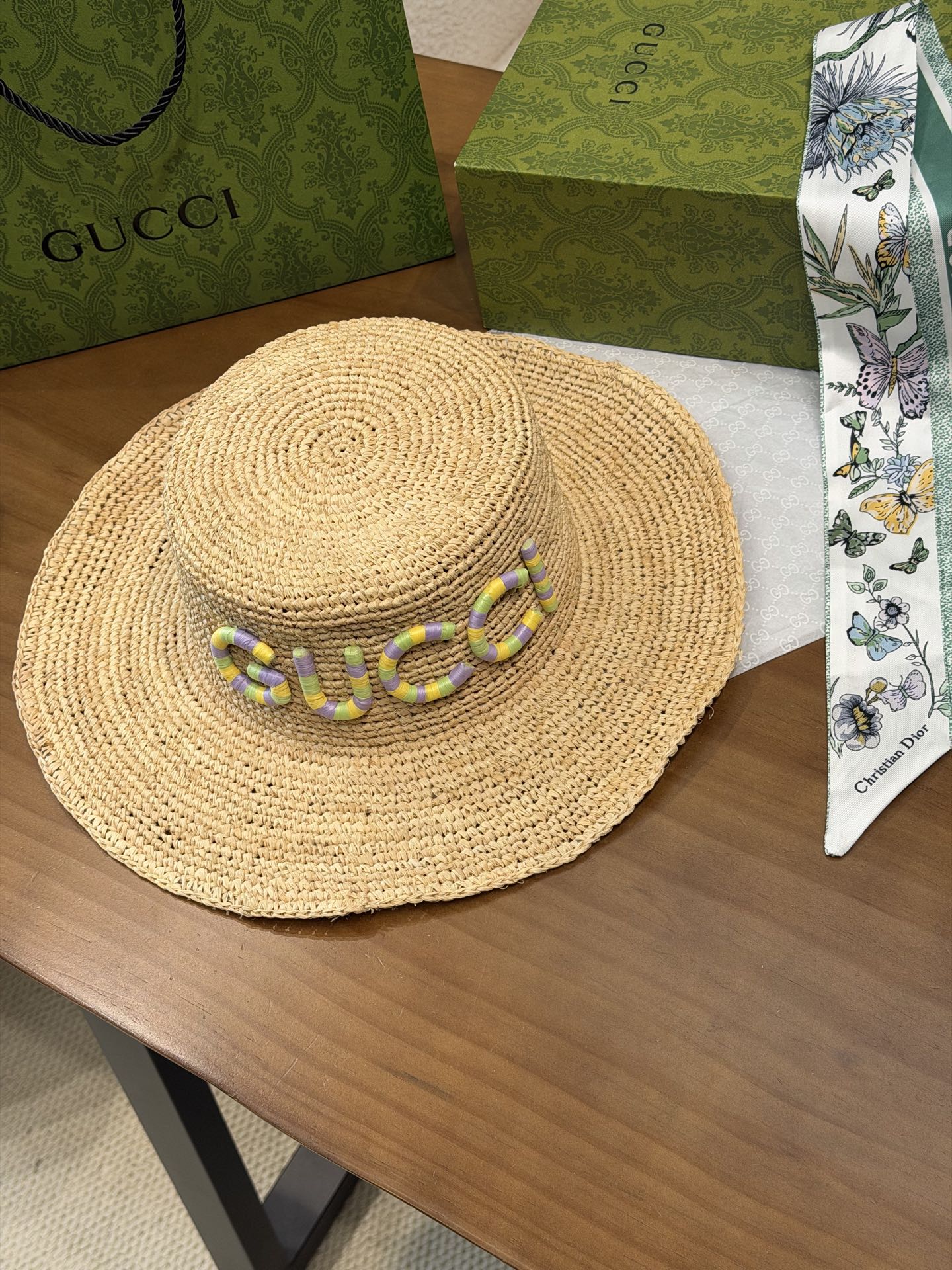 Gucci这顶草帽必须安利呀!草编材质超有质感,满满的夏日气息。标志性的品牌字母装饰,色彩明快又独特,直接把时尚感拉满。 大帽檐设计,遮阳效果一流,还能轻松修饰脸型。无论是去海边度假、户外野餐,还是漫步在城市街头,戴上它,瞬间成为焦点。搭配连衣裙是浪漫优雅风,配上短裤T恤又是休闲随性风。