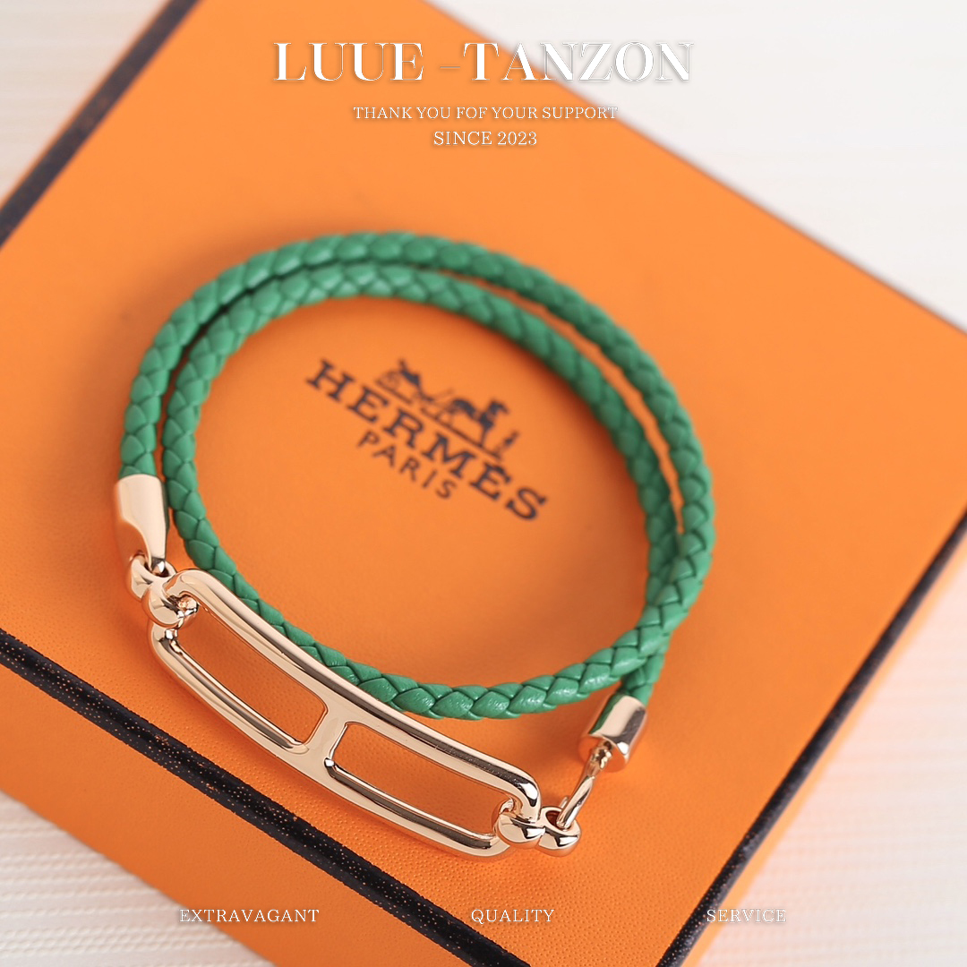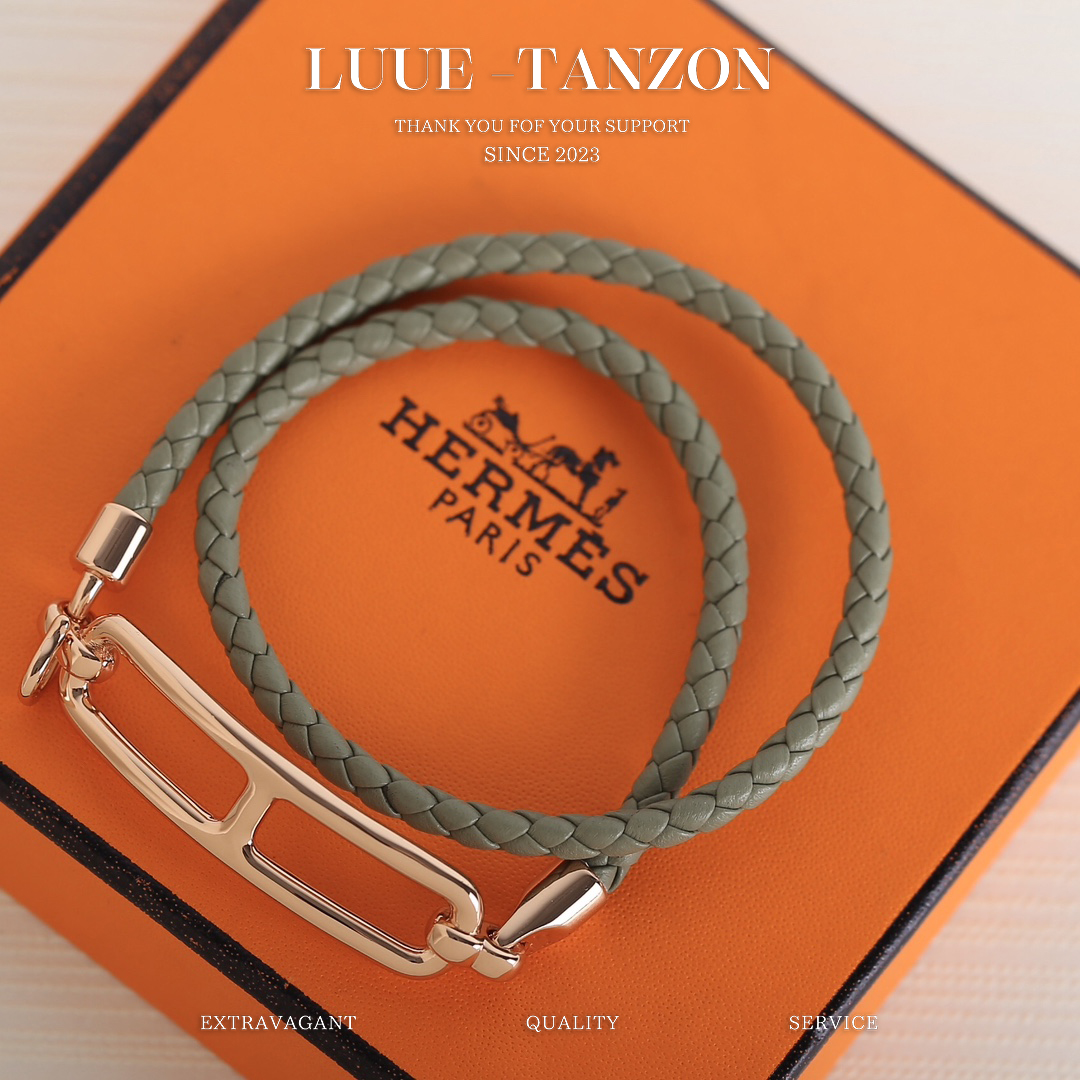 Swift小牛皮编织链条,银镀18k金Roulis锁扣。设计有一种不羁的俏皮感,只是简洁的设计风格就能让人一眼入手。单戴叠戴都会碰撞出新的火花,双圈手链也可当颈链佩戴,时尚又百搭!Choker 手带,两用,H真皮双层手绳!单层可当choker,非常简约的金属线条设计,搭配真皮,给人大方利落的内涵感,一款越看越耐看,越搭配越强大,编织纹路的皮绳,多个颜色可选,男女皆可!太赞太绝太高级啦??高级感无敌了里边的线条感,金属造型粗细都非常考究,纯手工真皮,非常符合H历来的设计风格可以说super Great,分分钟帮你节省几千大洋配送包装