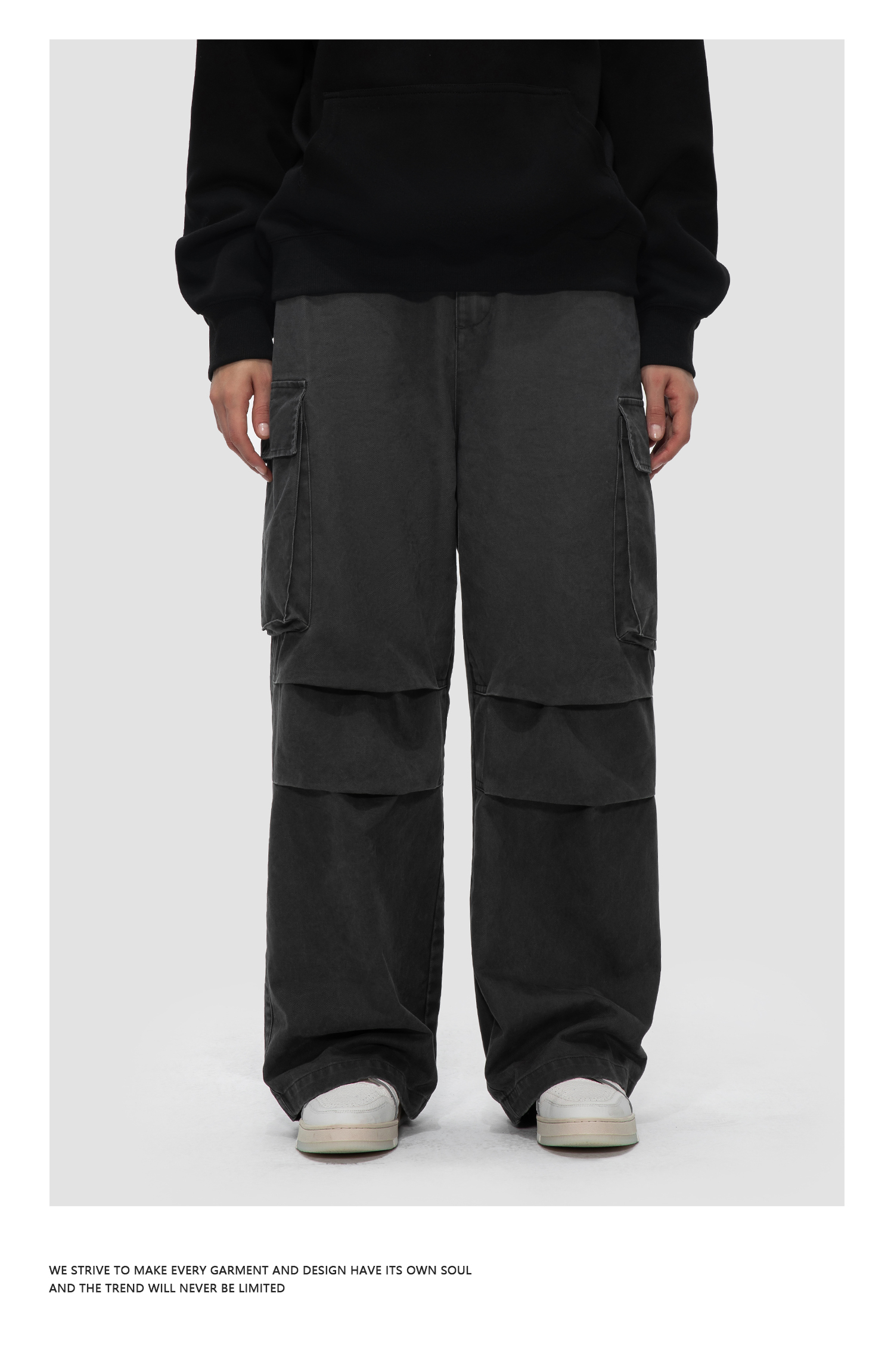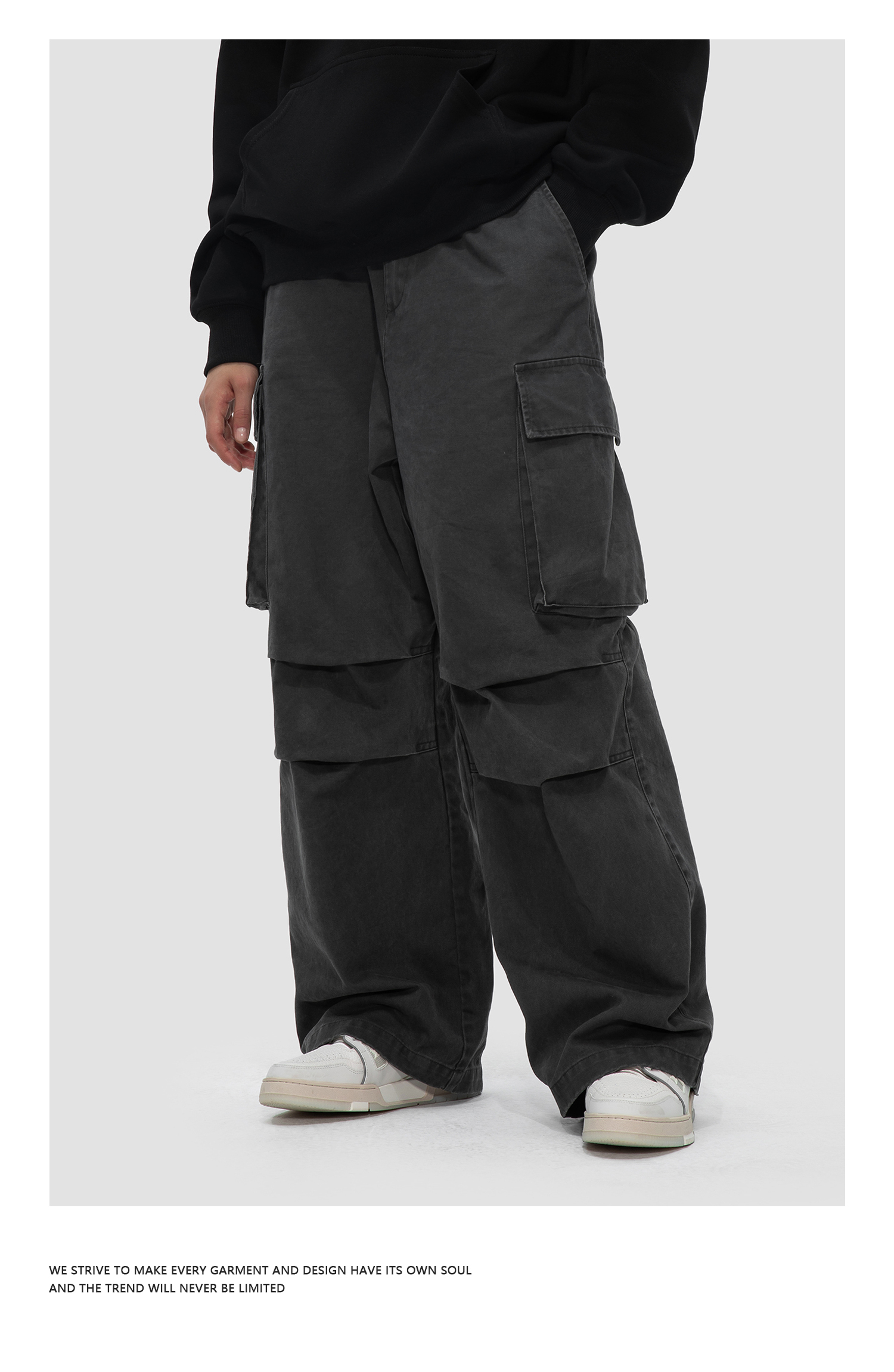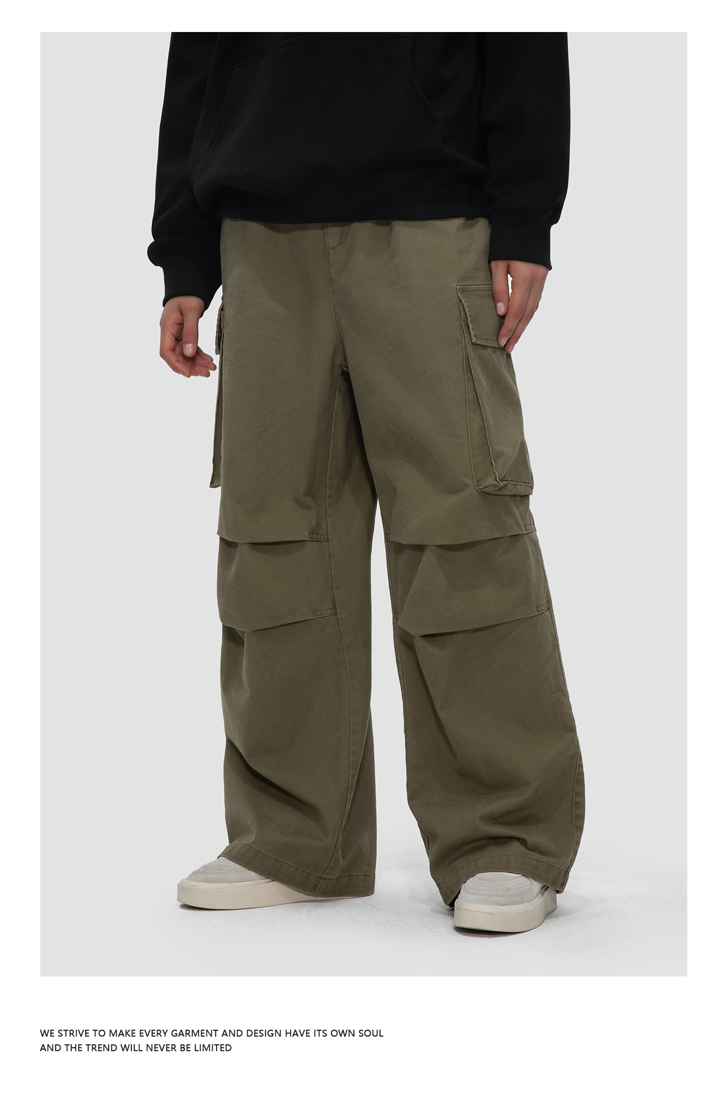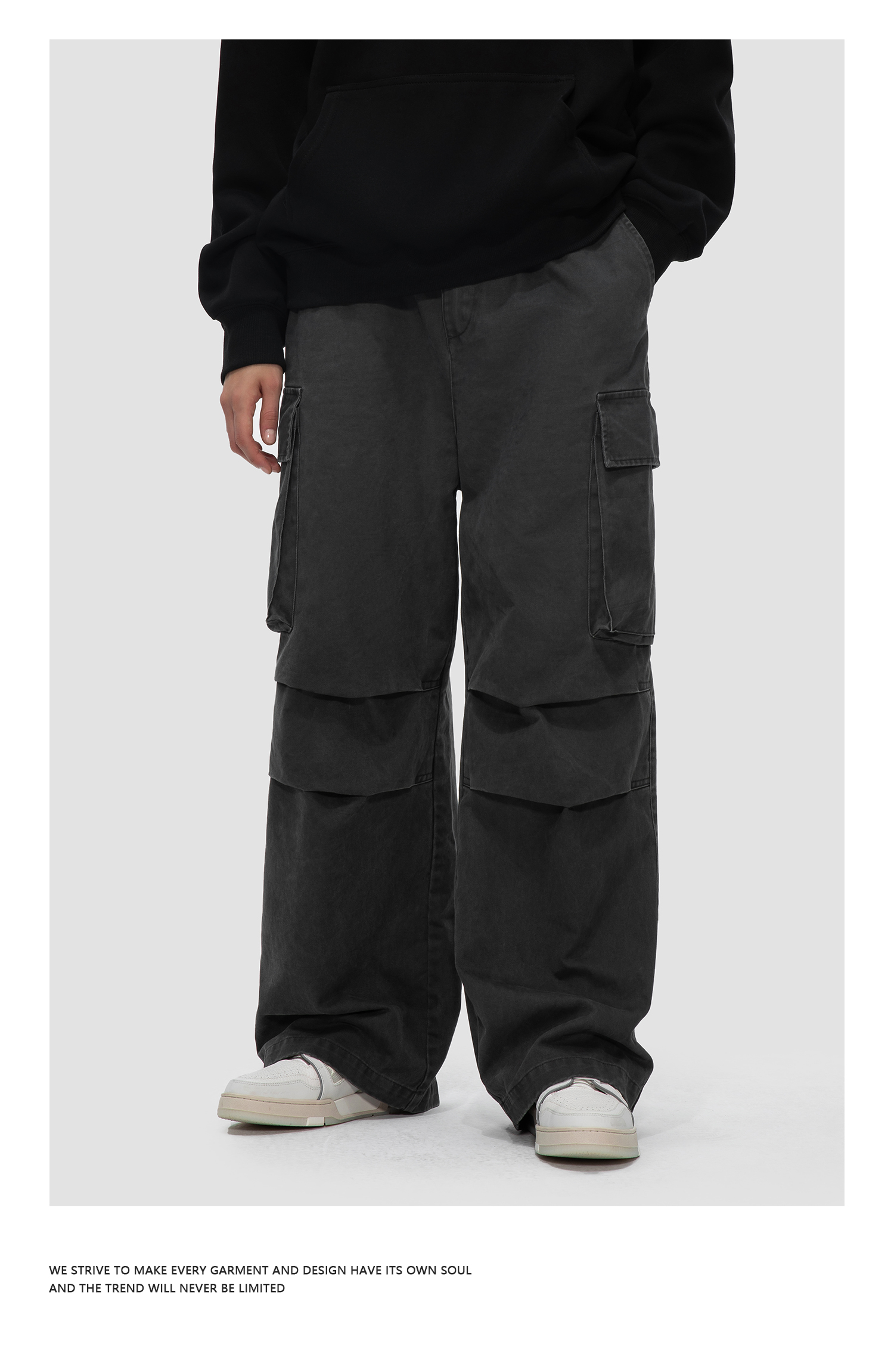 FDR 国潮高街褶皱伞兵工装裤男女潮牌宽松直筒裤运动休闲裤长裤子