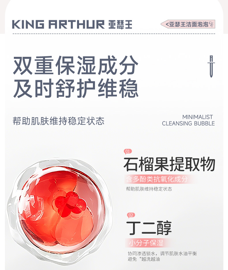亚瑟王【红石榴】洁面慕斯极简净爽泡泡氨基酸清洁净肤洗面奶