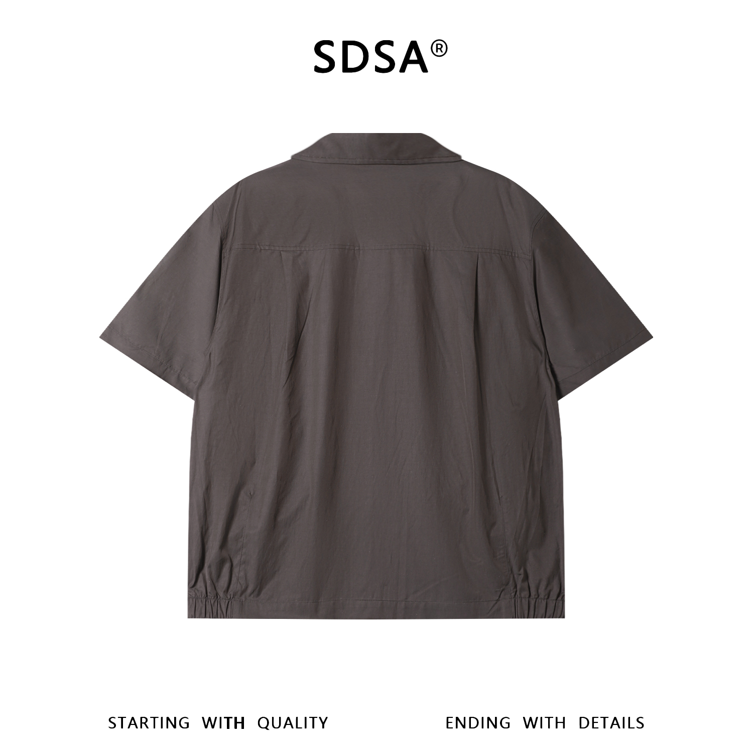 SDSA男装2026新款高贵轻奢潮牌时尚纯色拉链翻领短袖衬衫宽松上衣