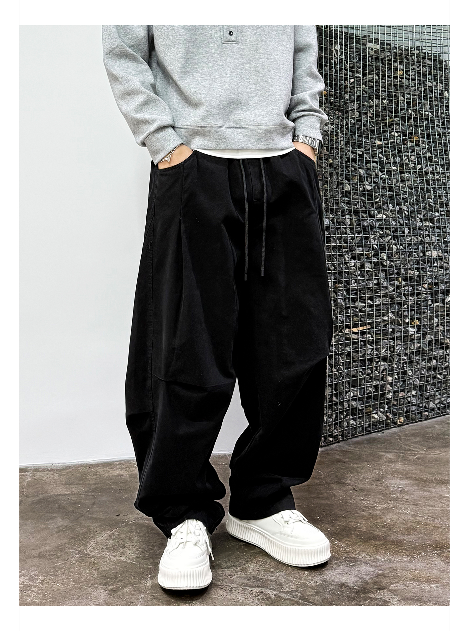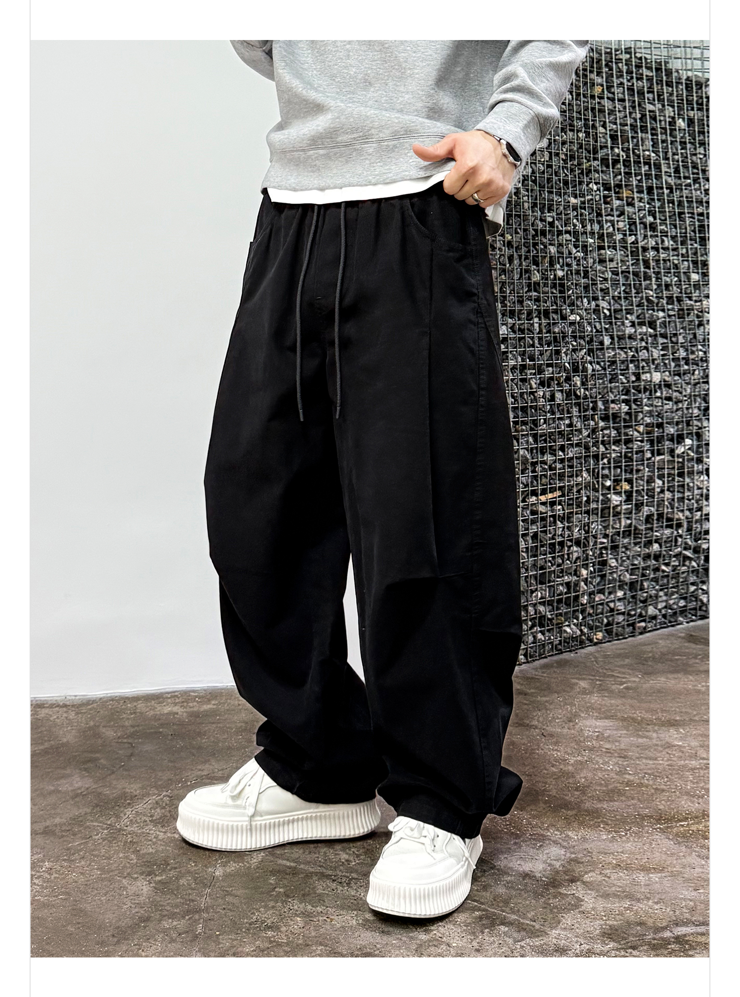 徐太浪【褶皱感 立体裁剪】大码哈伦裤男春秋宽松百搭纯色休闲裤