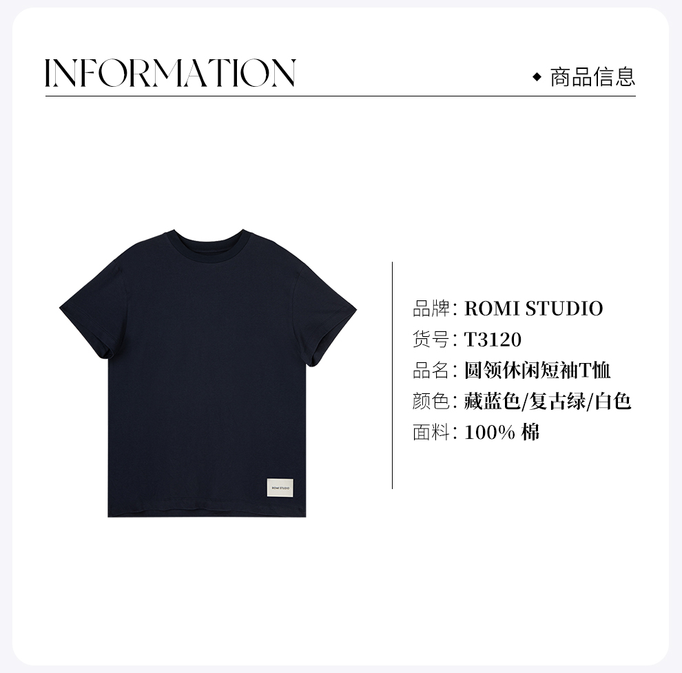 ROMI STUDIO【口碑款】春夏B备 简约风圆领休闲纯色短袖t恤 T3120
