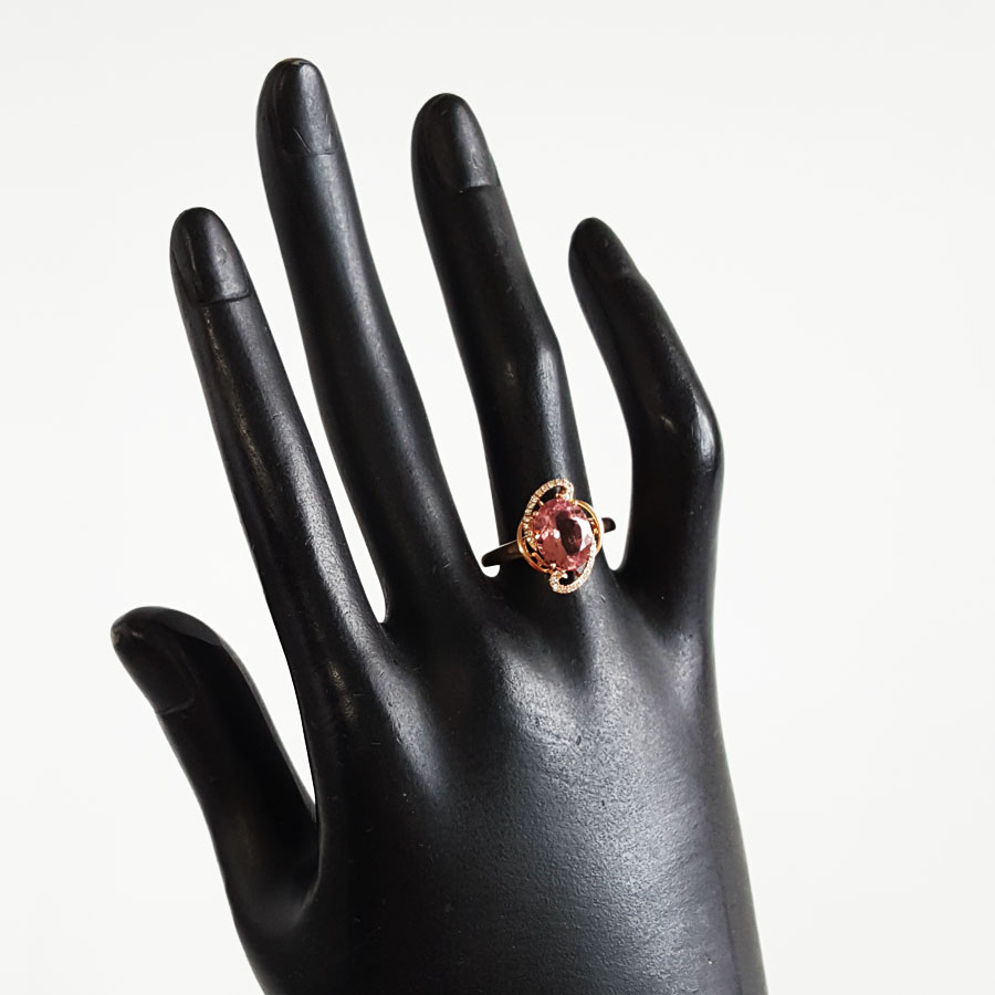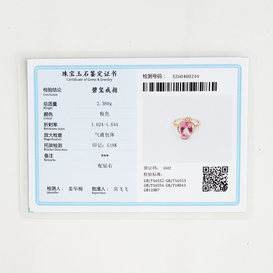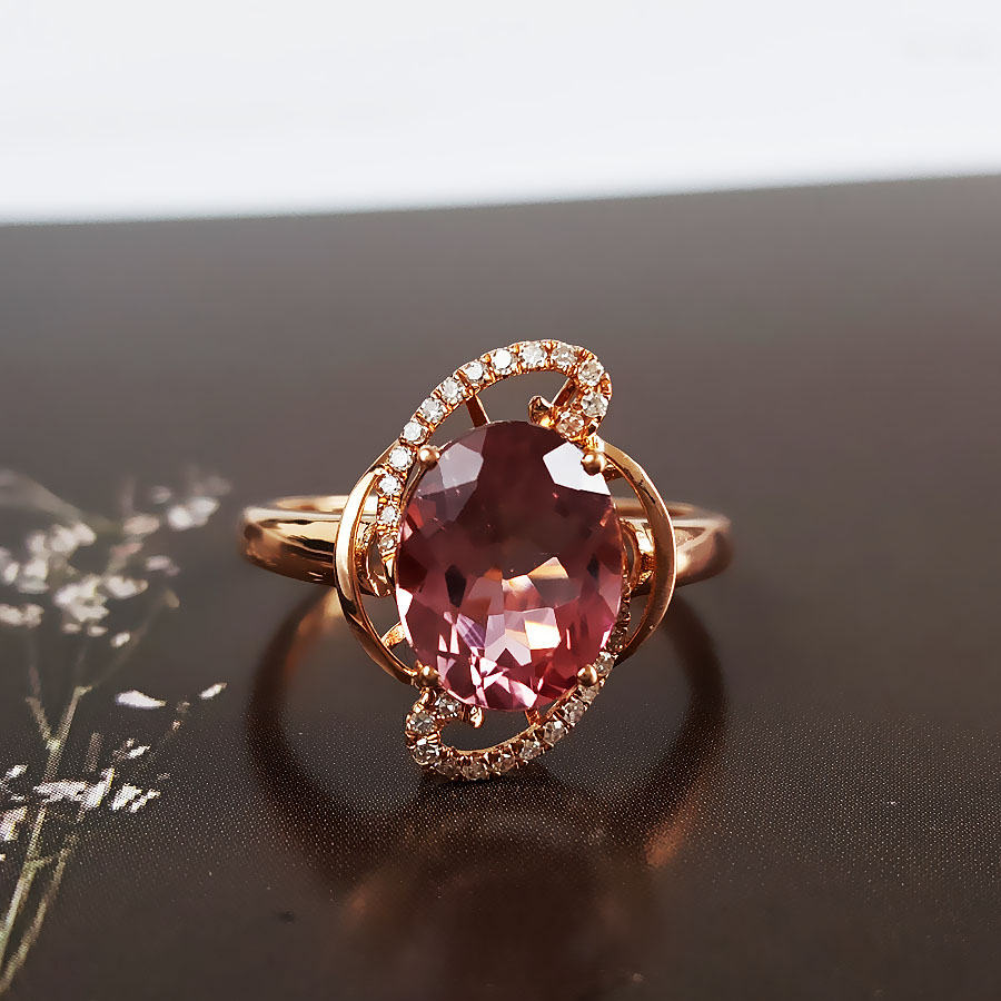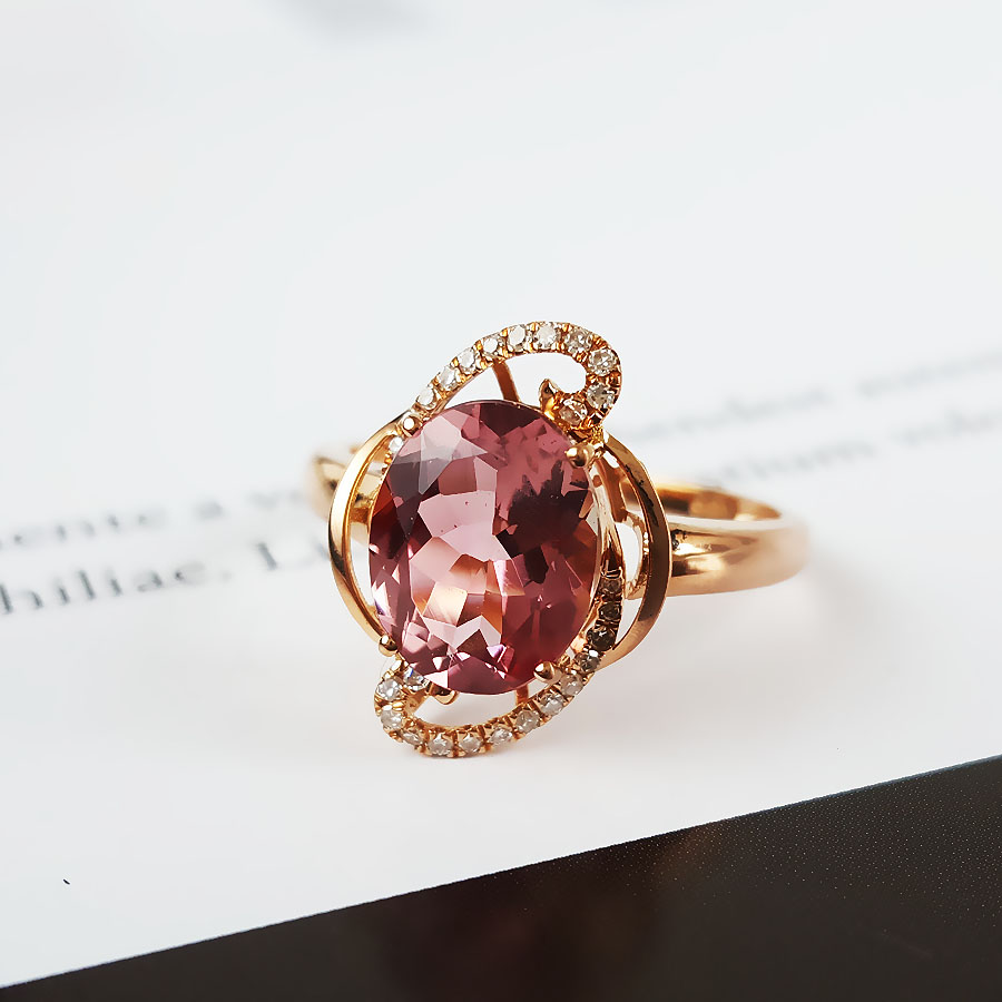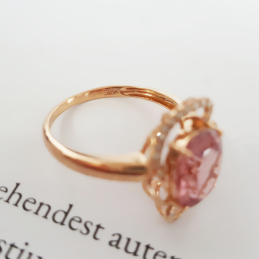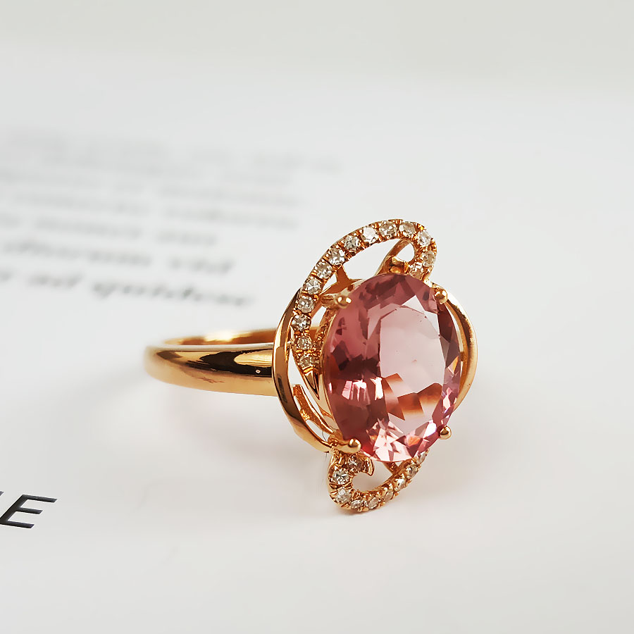 名称 | AU750玫瑰金镶钻镶天然近全净体粉色近2克拉碧玺戒指 |