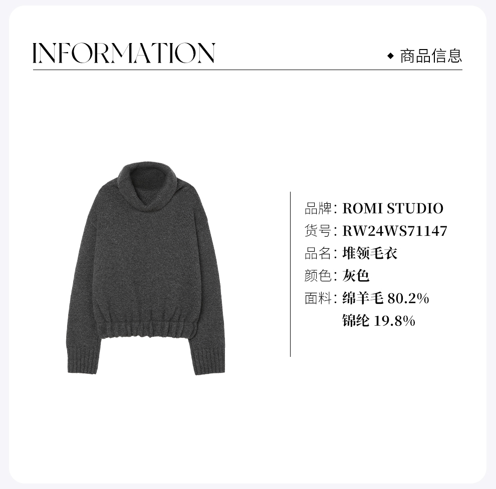 ROMI STUDIO“格雷高知”美丽奴绵羊毛混纺堆领套头毛衫RW24WS71147
