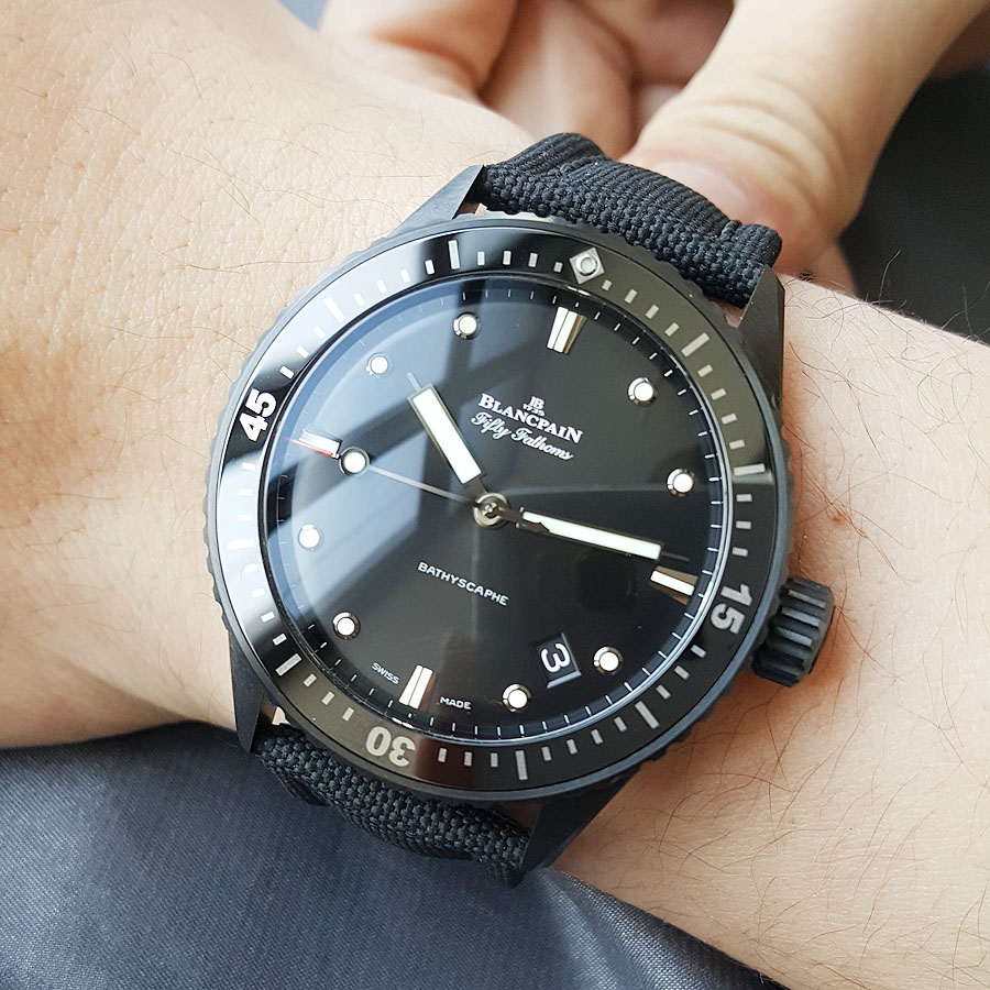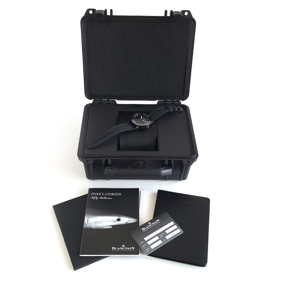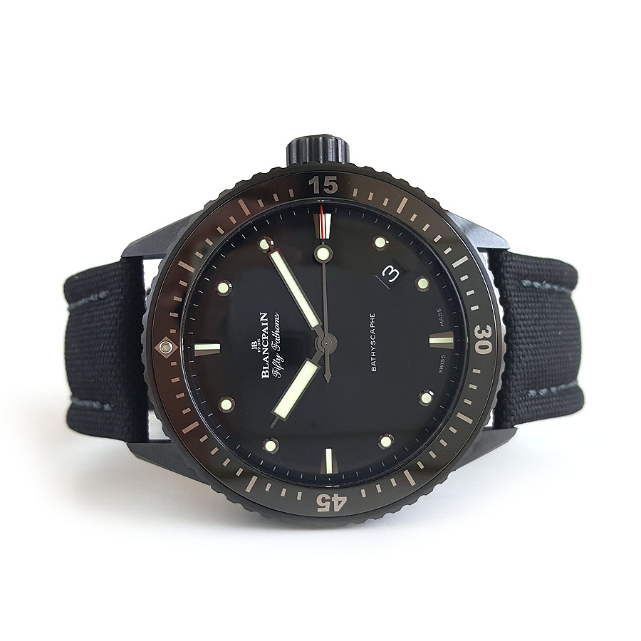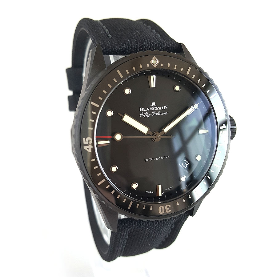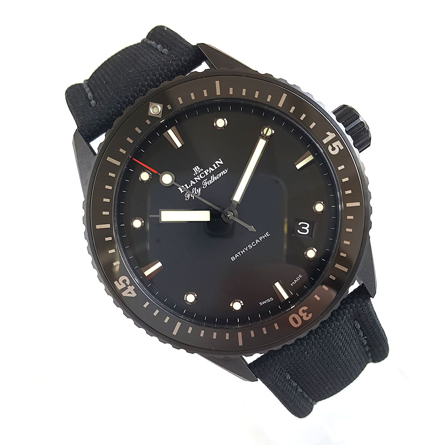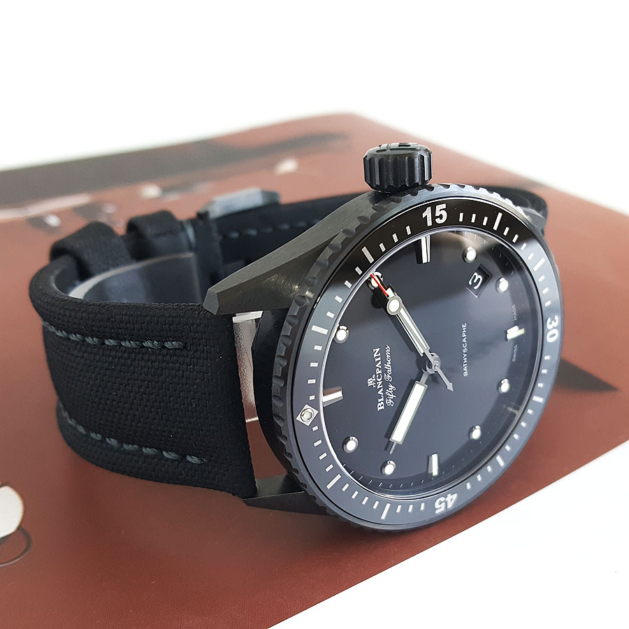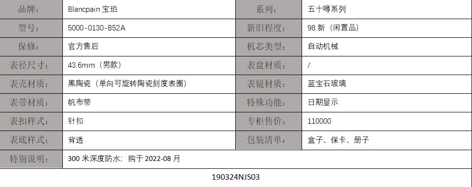 【98新闲置正品】Blancpain宝珀五十噚系列黑陶瓷(单向可旋转陶瓷刻度表圈)43.6mm日期显示自动机械男表5000-0130-B52A 190324NJS03