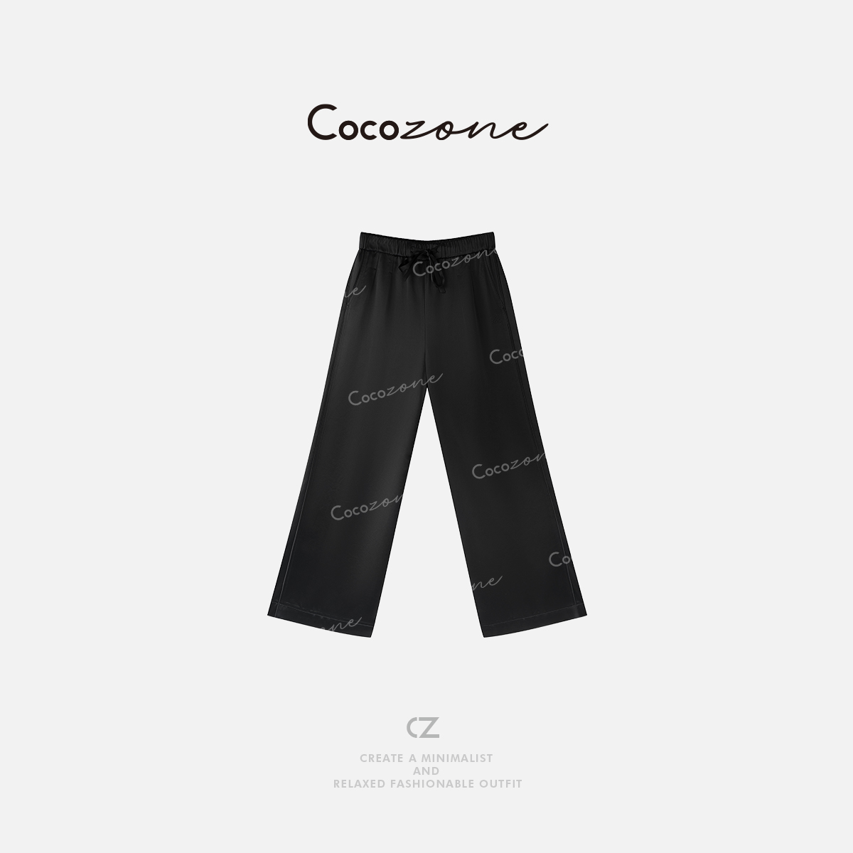 COCO ZONE 纯色松紧腰系带垂感直筒休闲裤CD1A0430