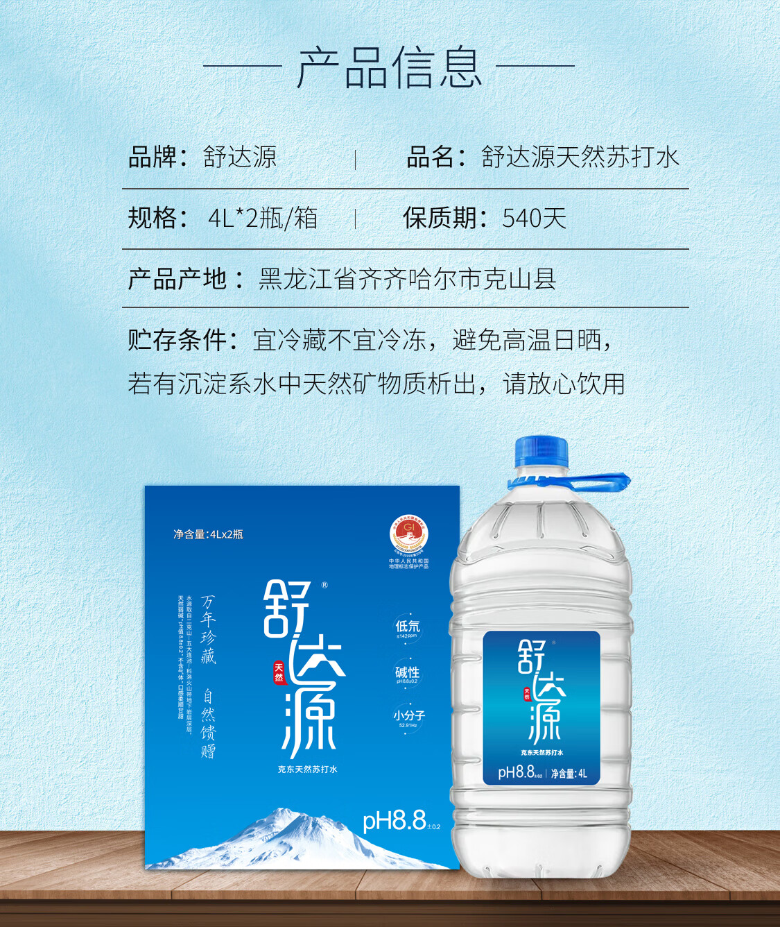 舒达源天然苏打水4L*2瓶/箱