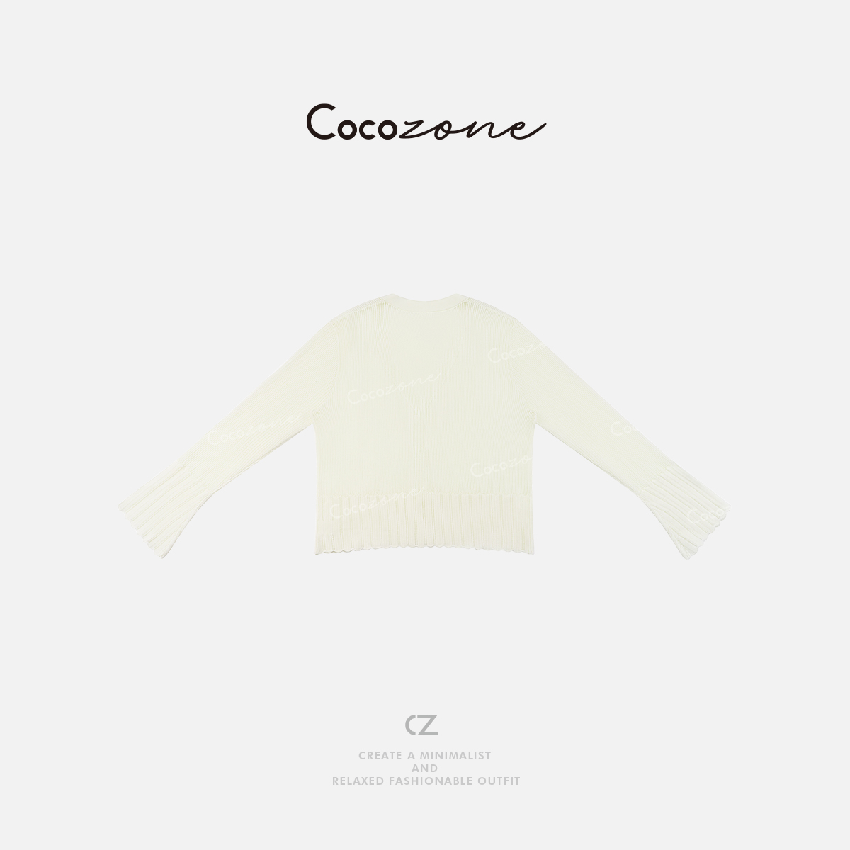 COCO ZONE 刘一一 米白色简约条纹下摆显瘦V领针织开衫CD2A0442