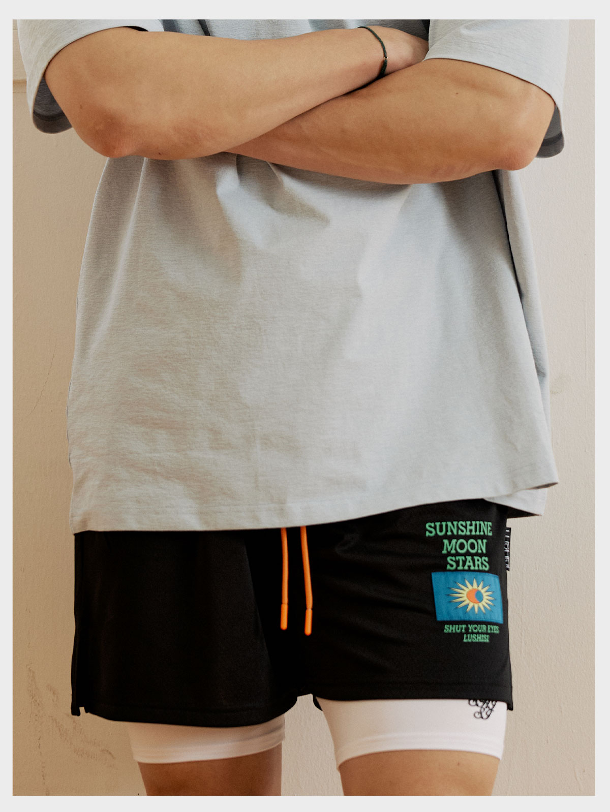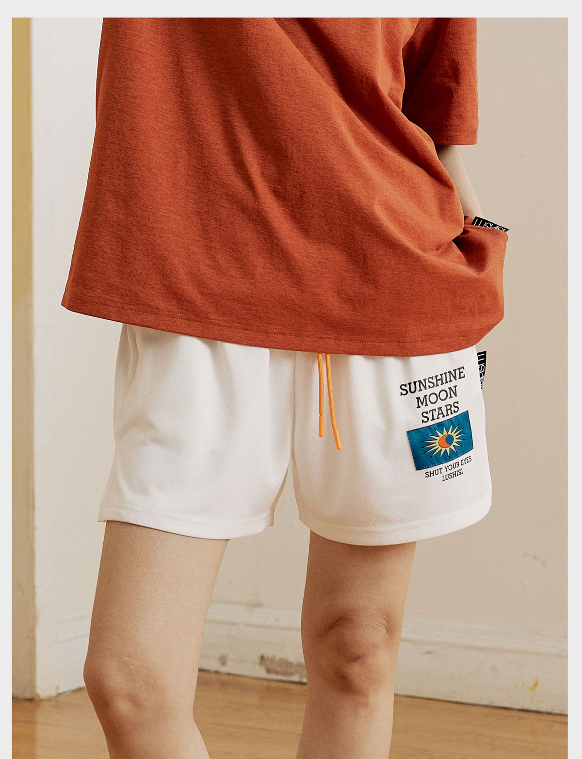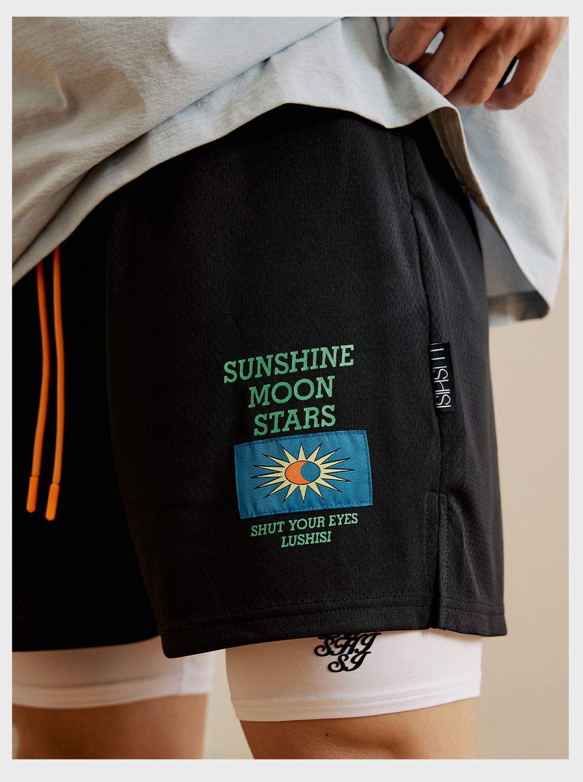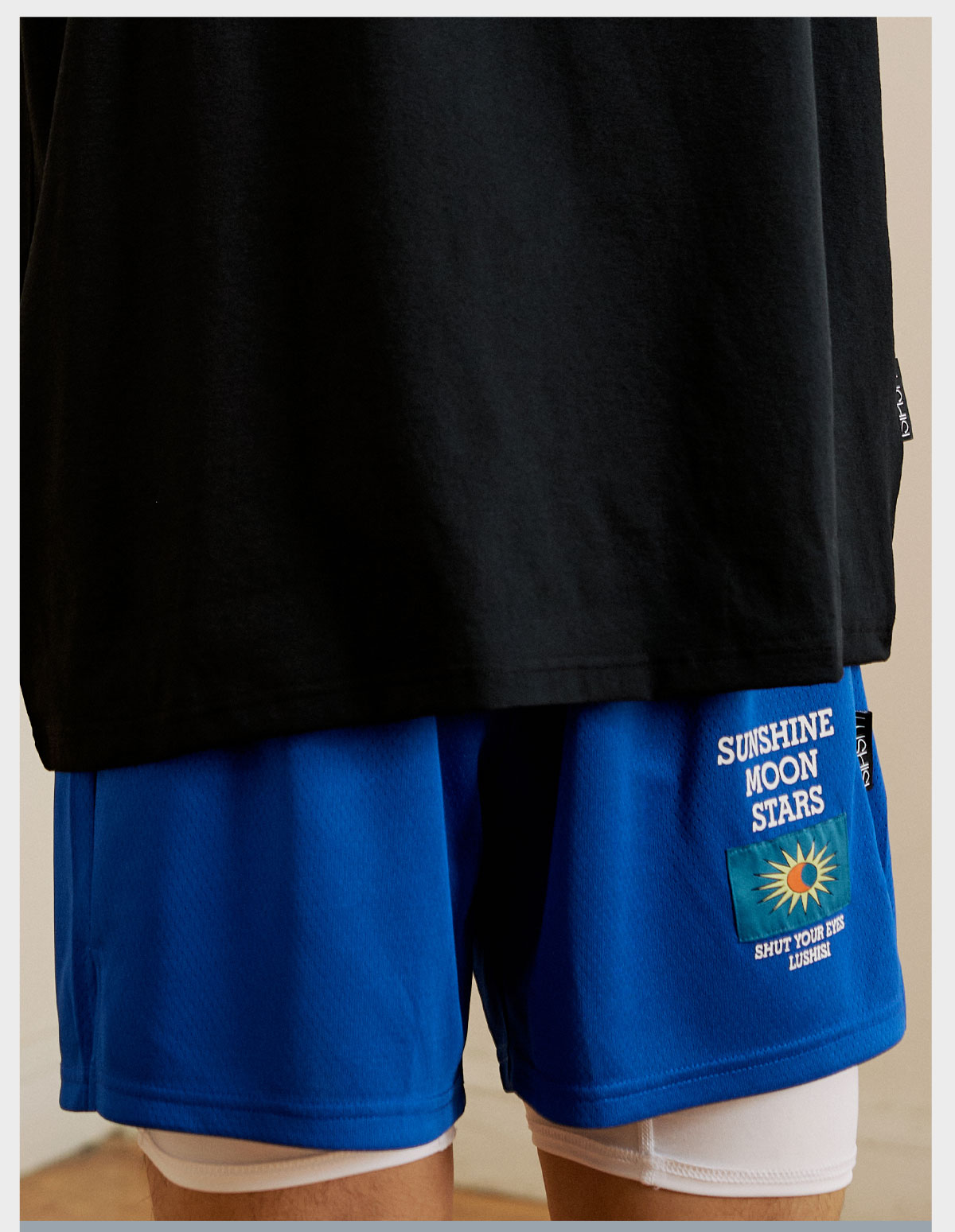 LUSHISI[日月星辰]美式刺绣运动速干篮球短裤训练不过膝四五分裤