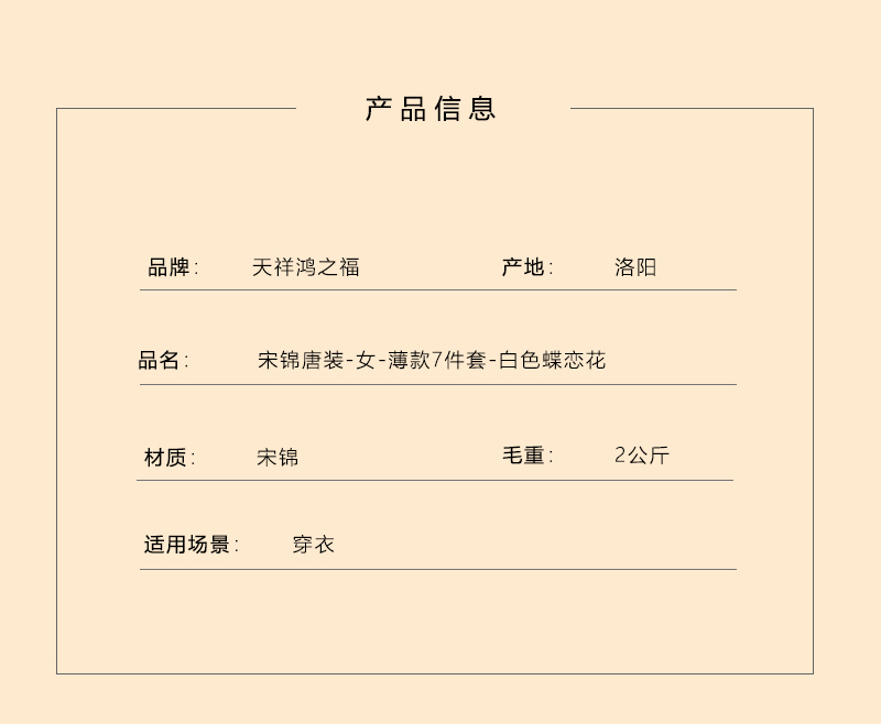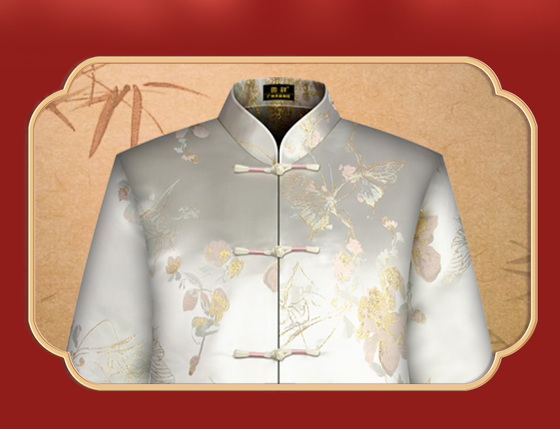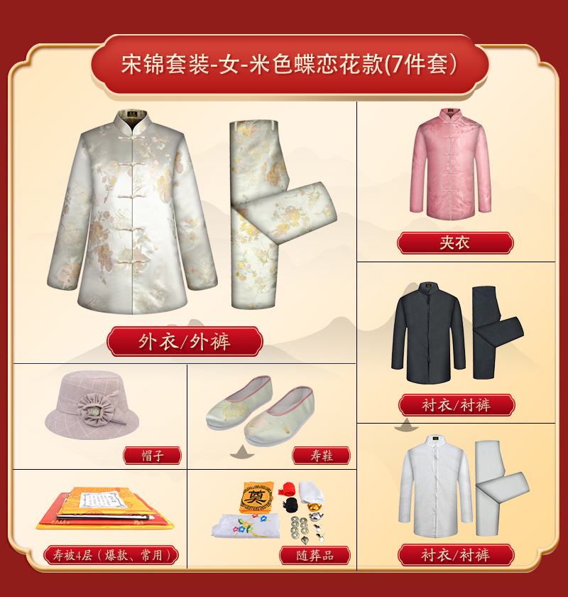女士寿衣宋锦唐装-白色蝶恋花薄款7件套寿衣寿服套装
